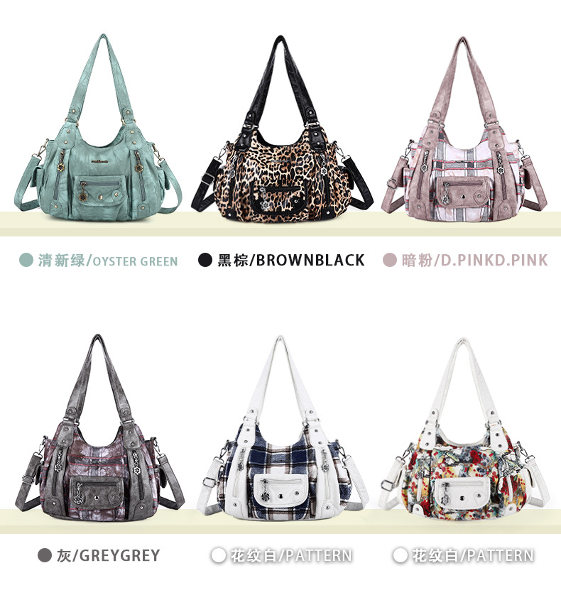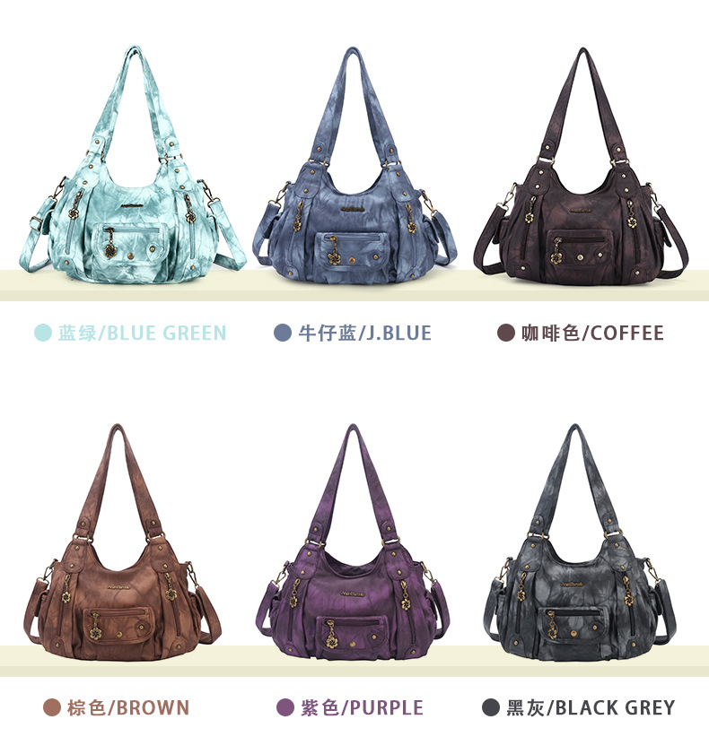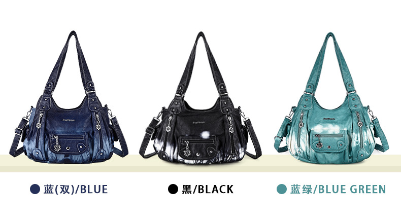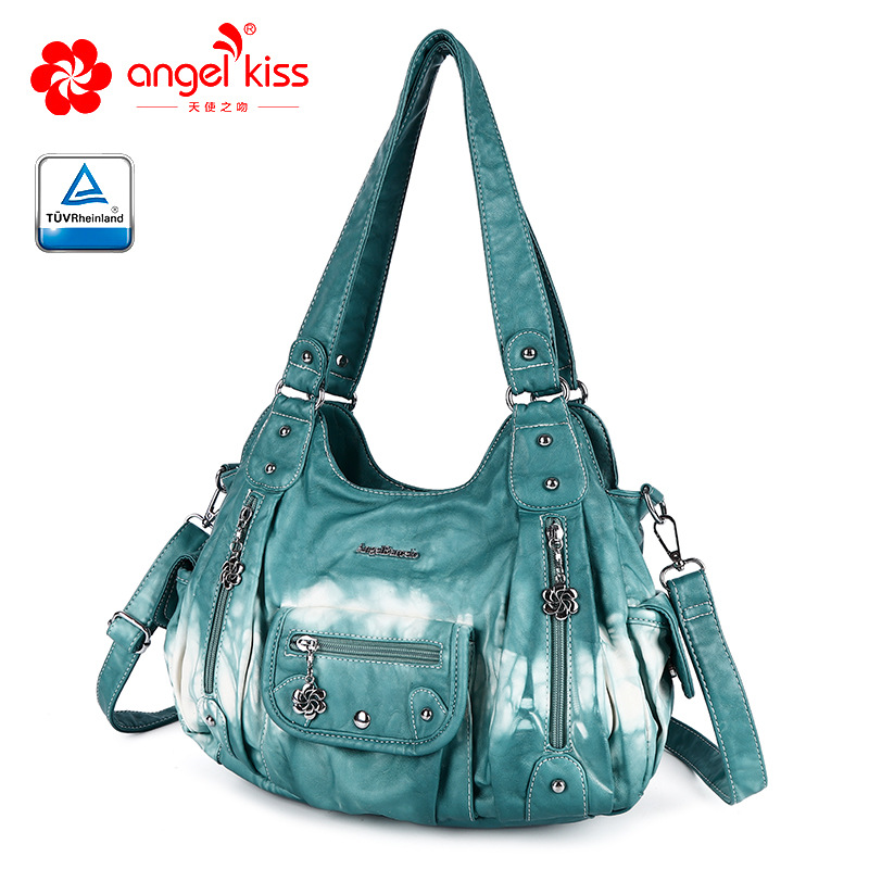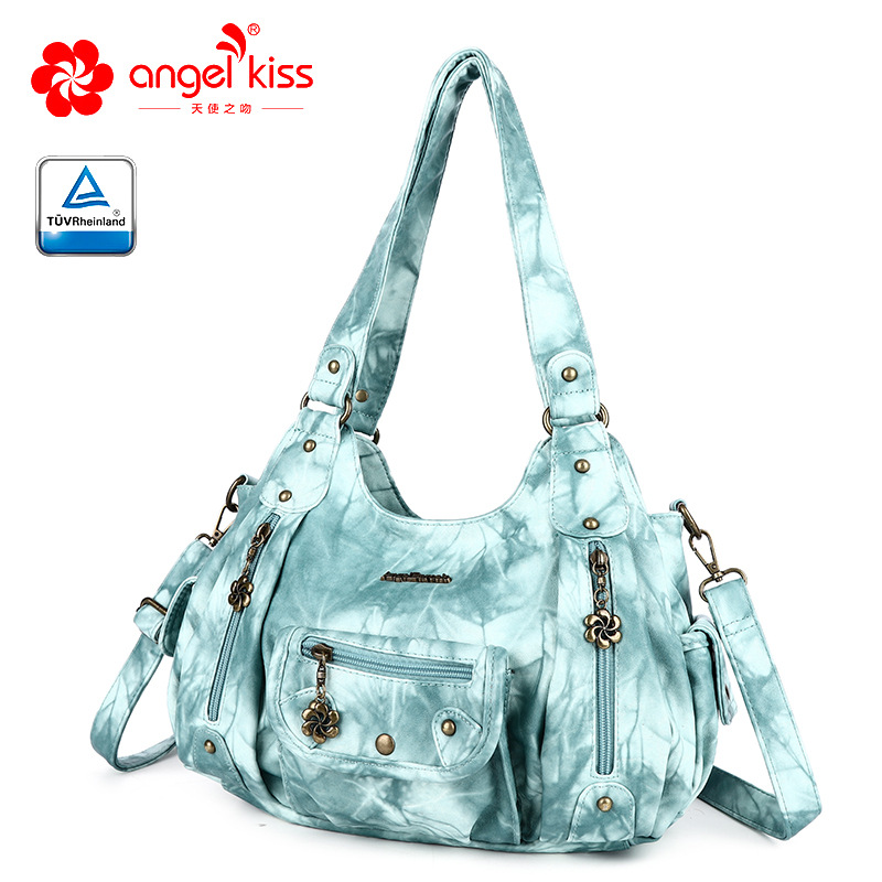 亚马逊新款多功能女士手提包多色扎染pu休闲单肩斜挎包批发