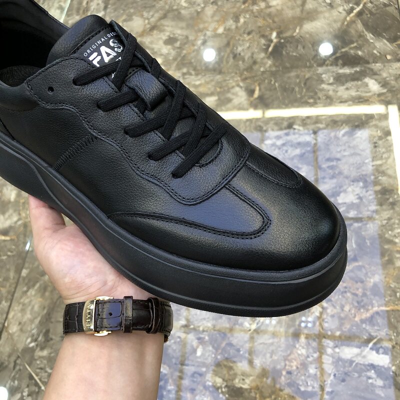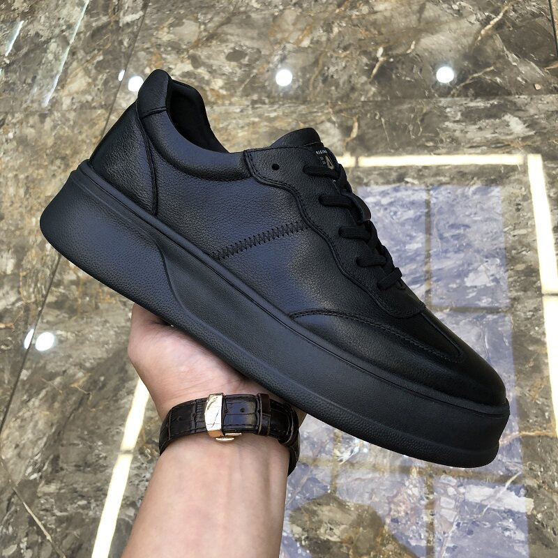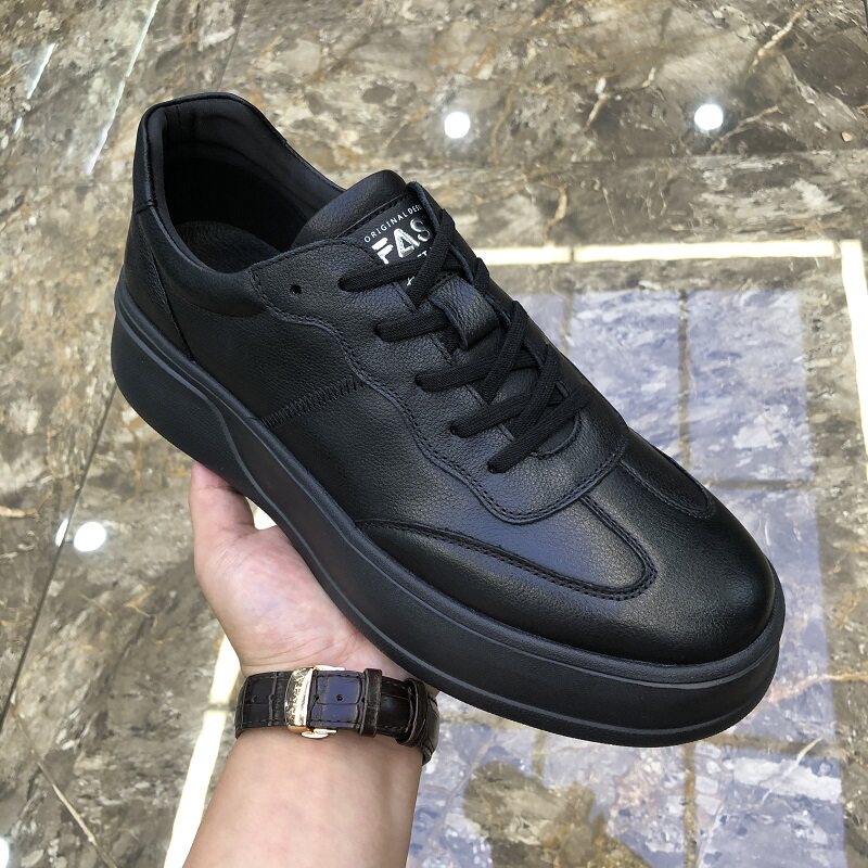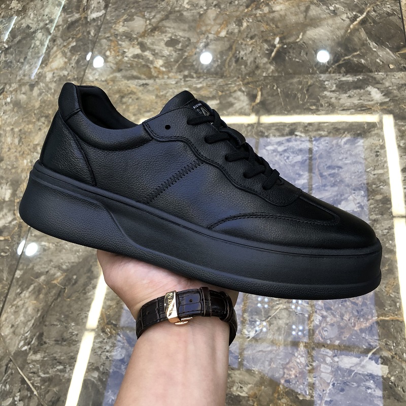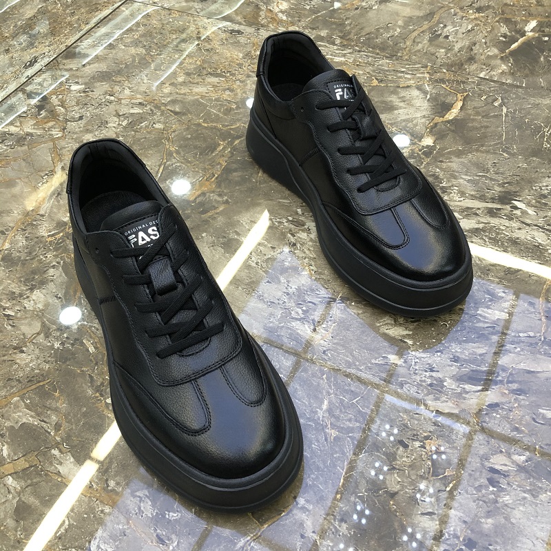 春夏新款真皮男鞋厚底休閒運動板鞋圓頭繫帶耐磨厚底增高百搭輕便