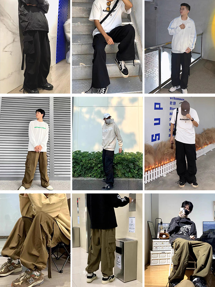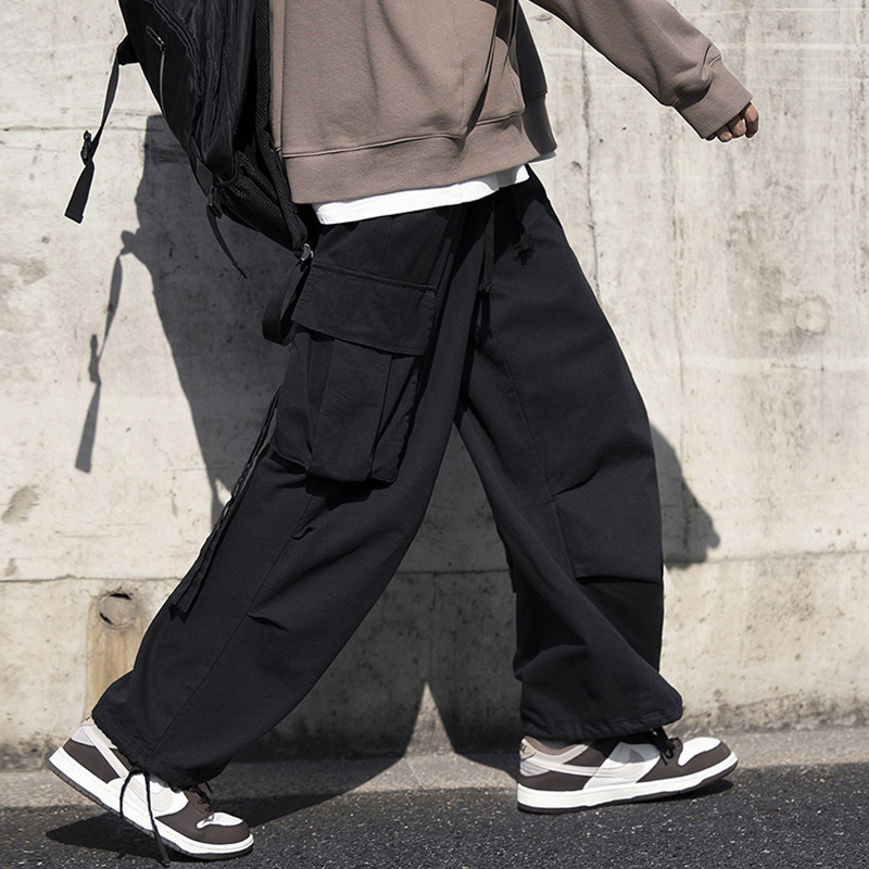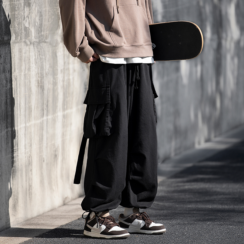日系復古機能工裝褲男士潮牌痞帥夏季oversize大尺碼束口褲子hiphop
