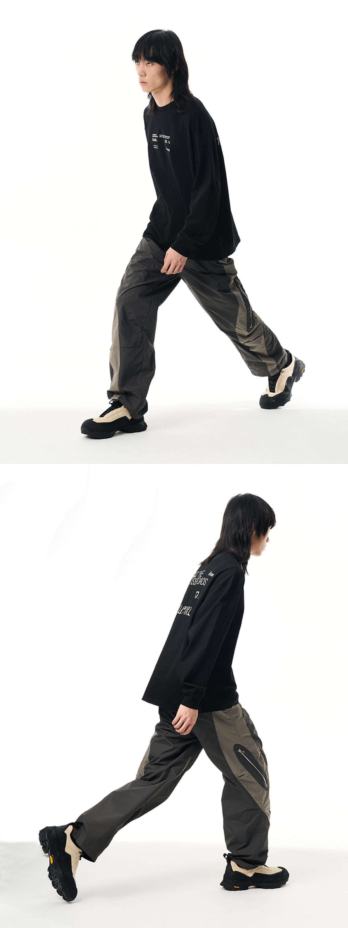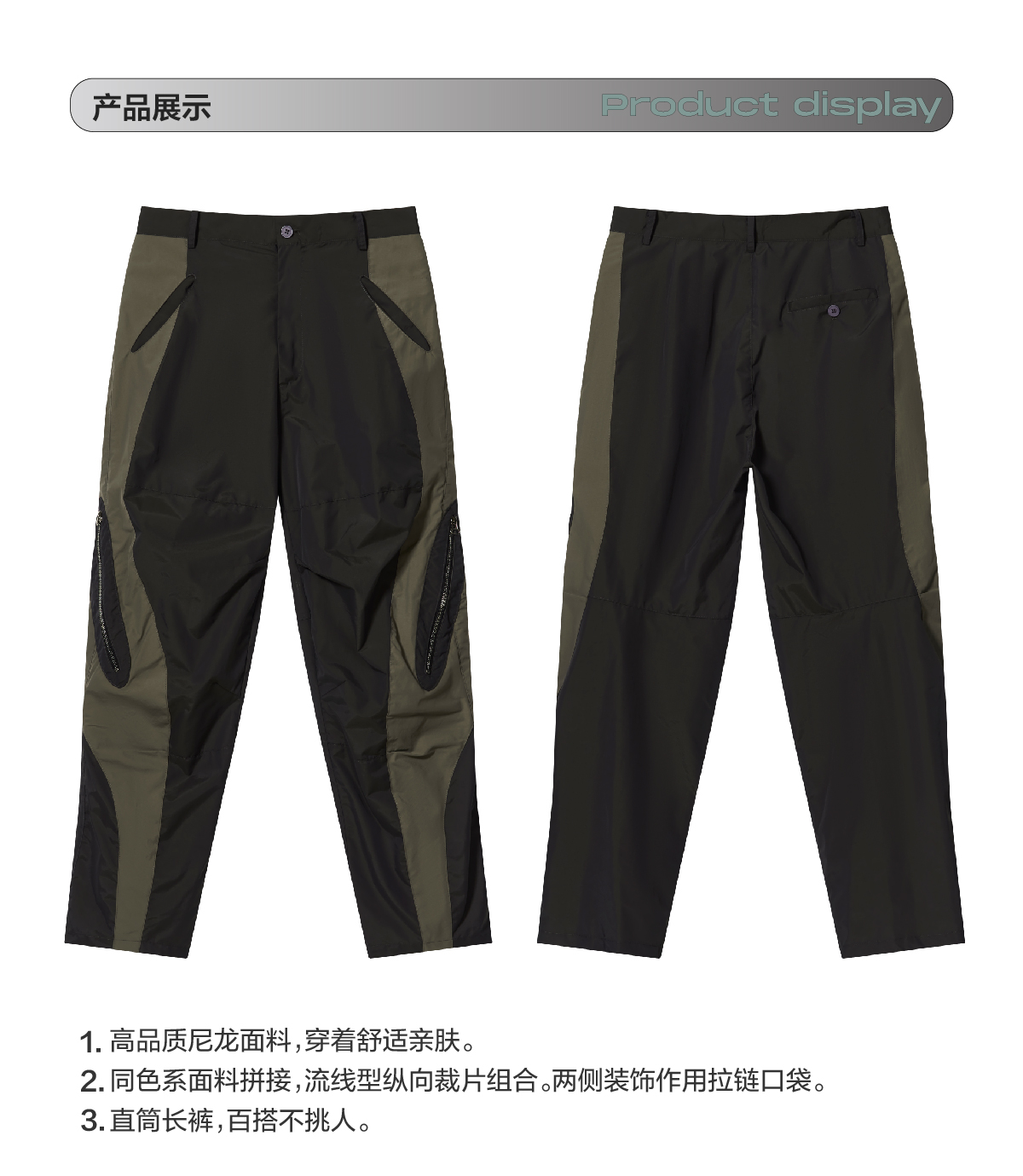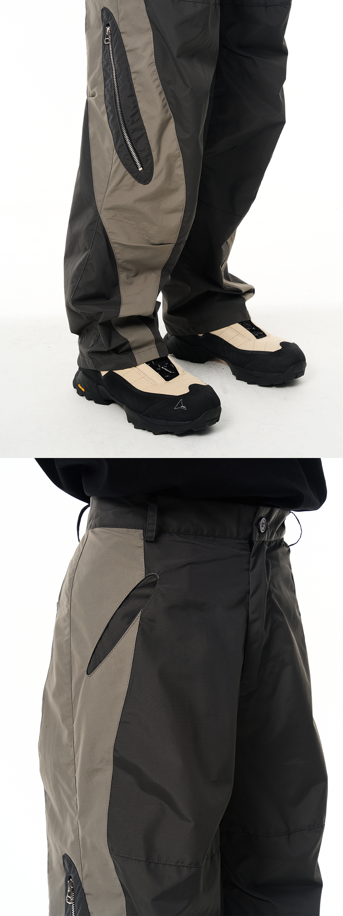 7440 37 1 AW22 尼龍拼色拉鍊工裝直筒長褲