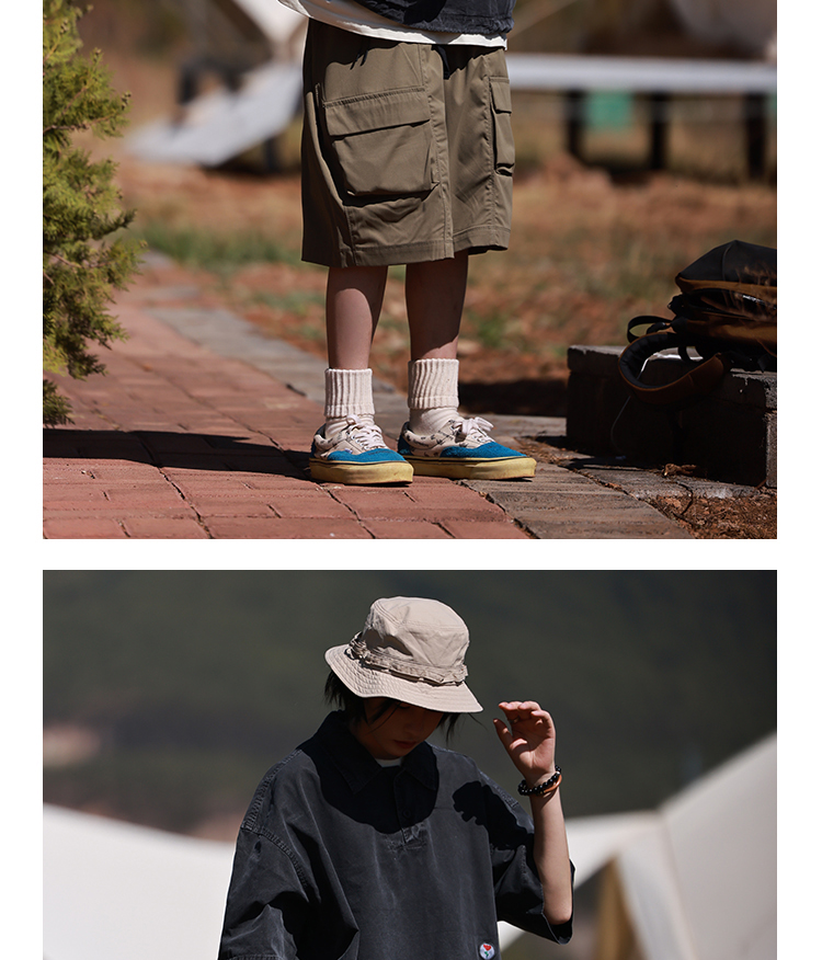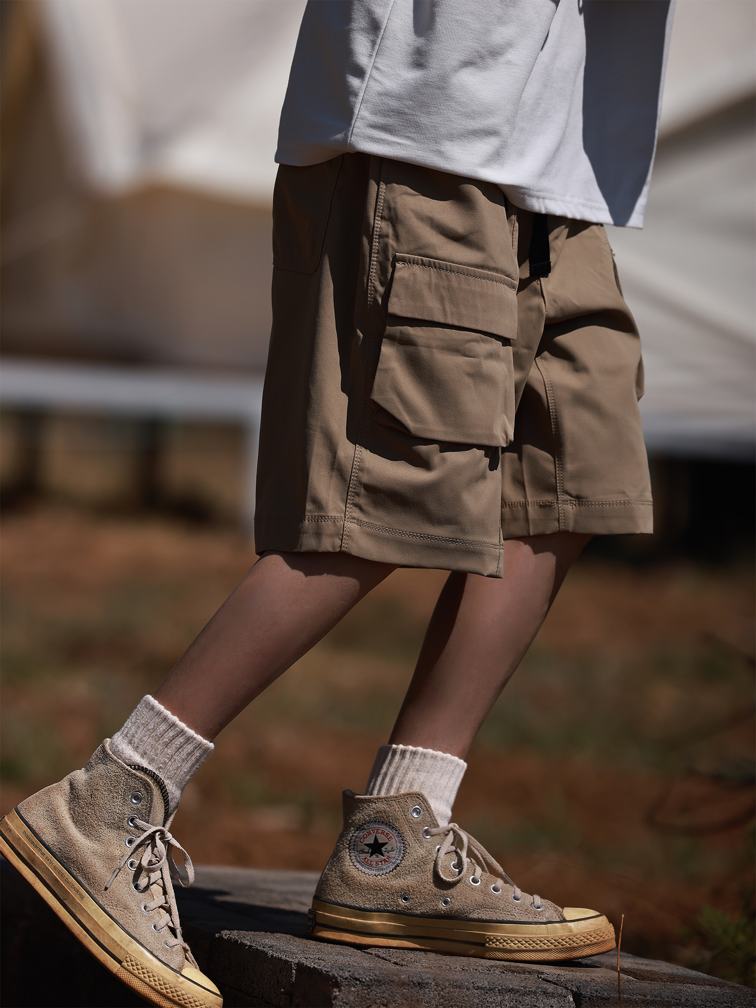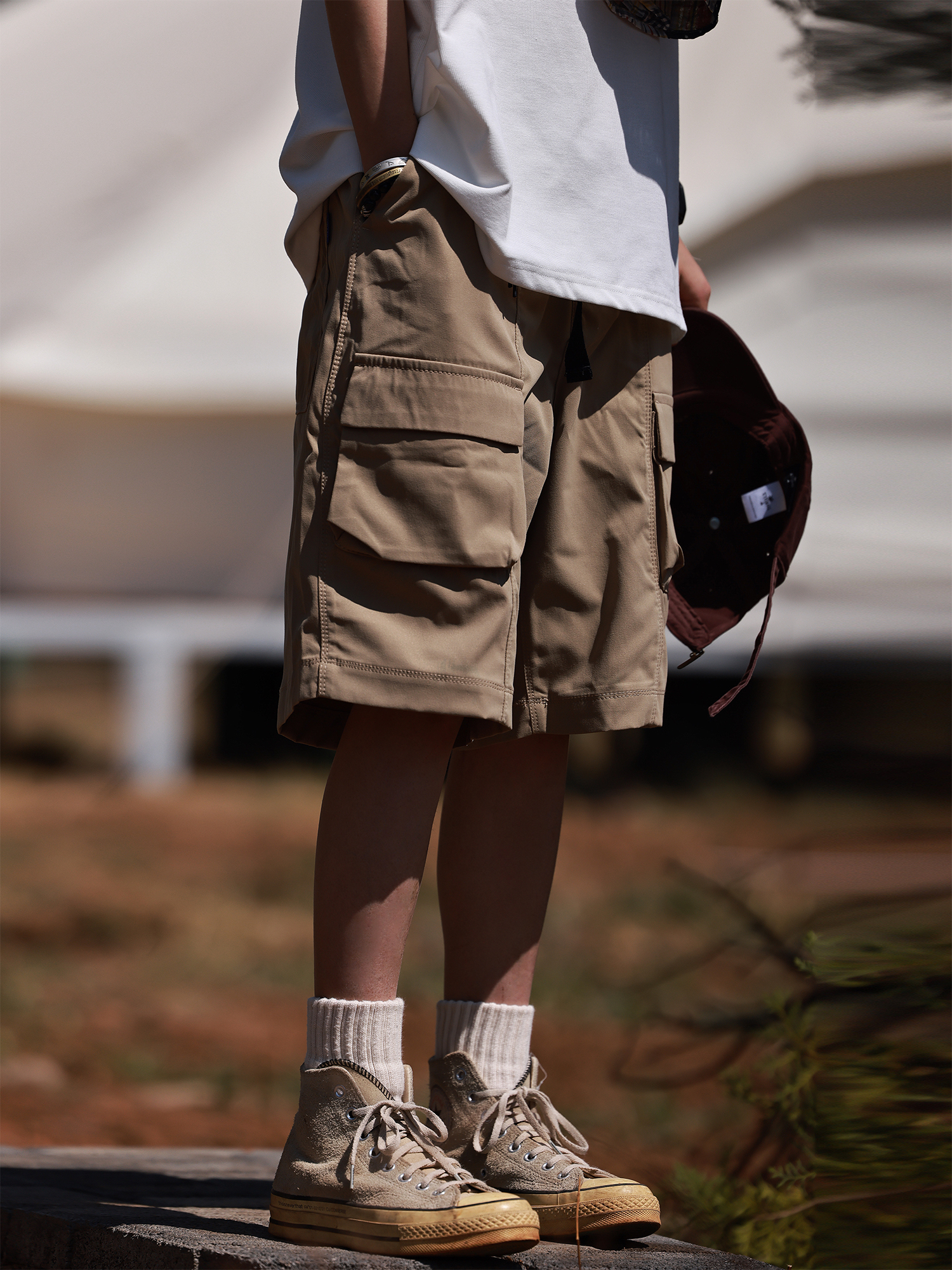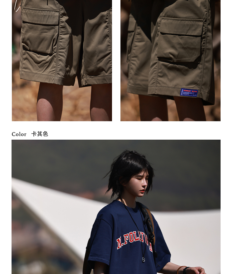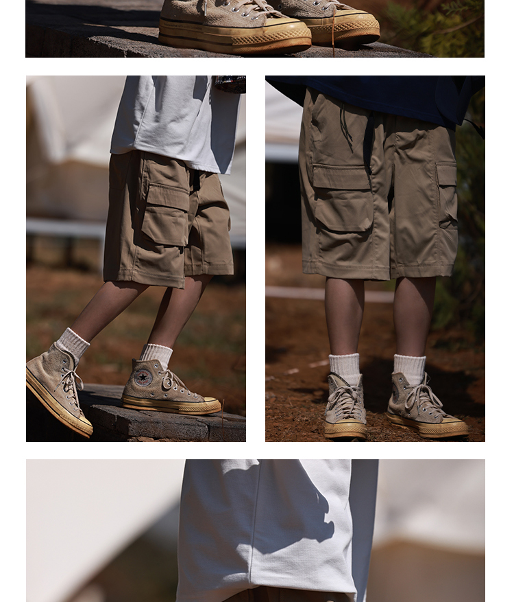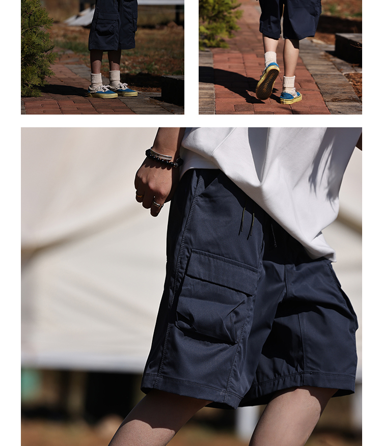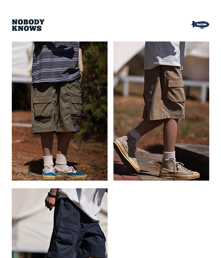 Nobodyknows日系新款工裝多口袋基礎多色休閒五分褲男女夏季短褲