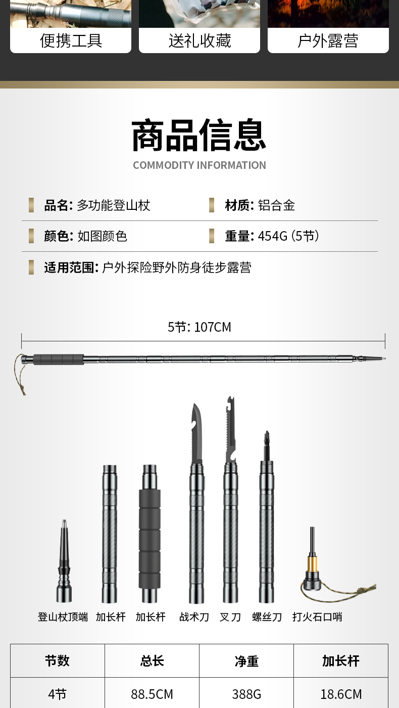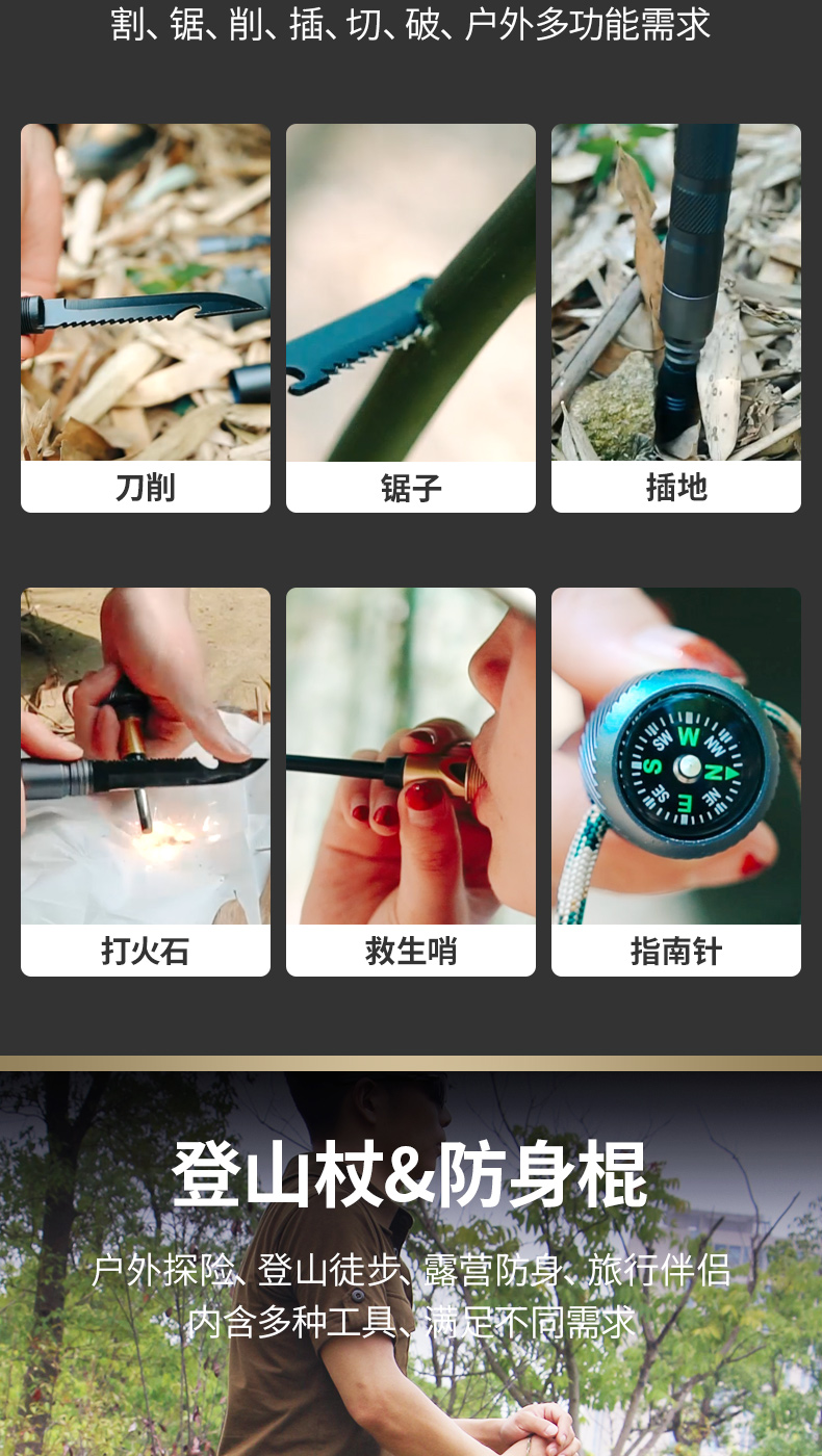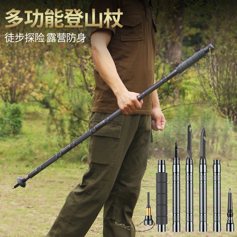 登山杖摺疊多功能戶外徒步遠足防身棍山地野營用品套裝柺棍爬山杖