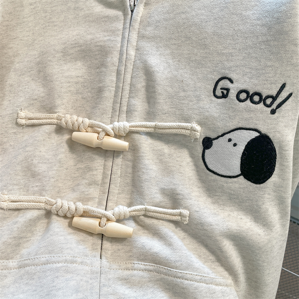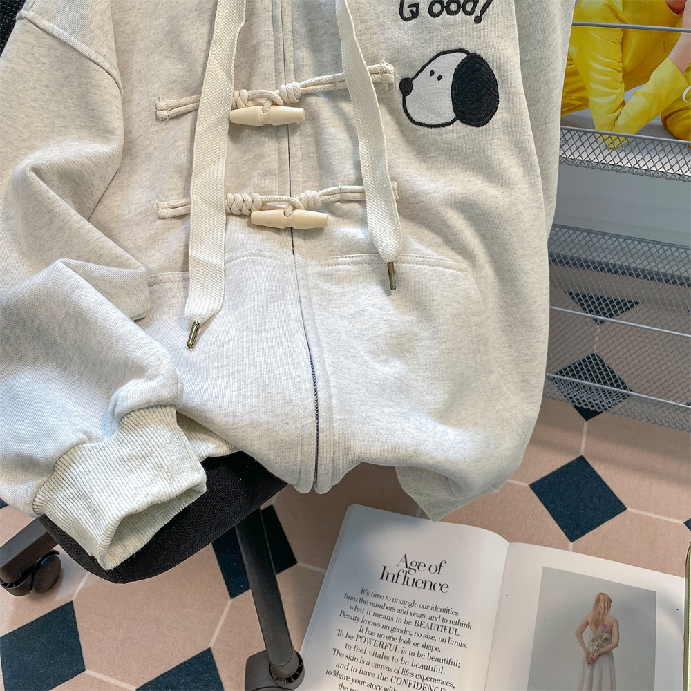 日系藝術感cityboy牛角扣小狗衛衣女秋冬季加厚加絨連帽外套開衫