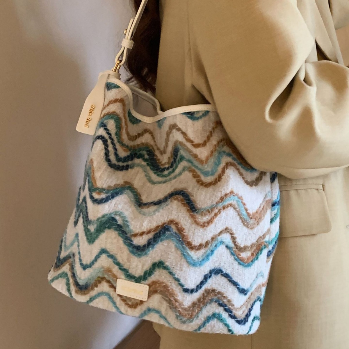 南风Chio2nd 海盐浪花水桶包包女2024新款编织包大容量休闲单肩包