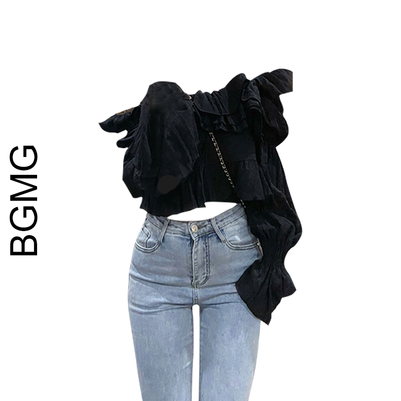 特價清倉女裝品牌荷葉邊襯衫女早春設計感小眾喇叭袖甜辣長袖上衣