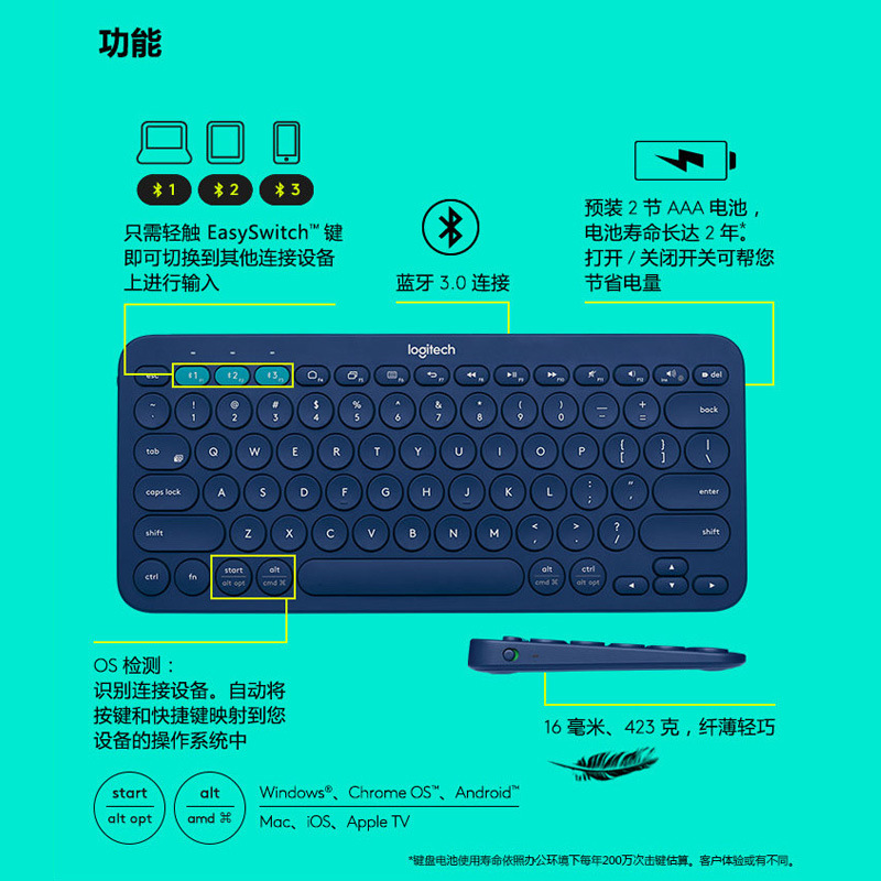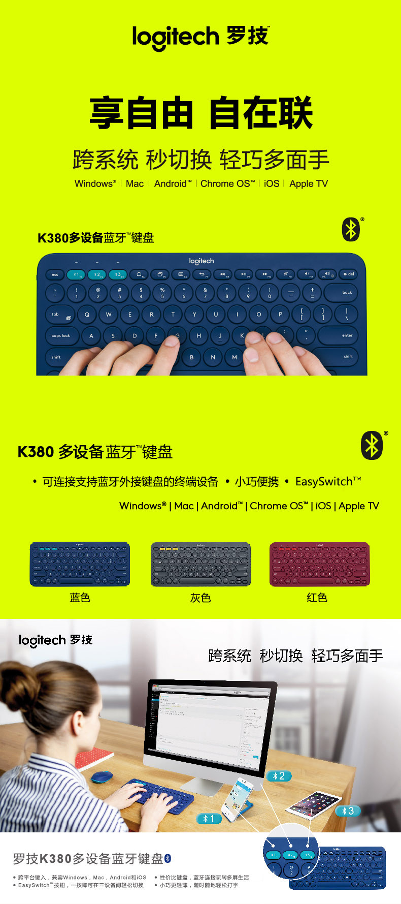 原装正品罗技K380蓝牙无线键盘手机平板安卓超薄键盘官方旗舰店