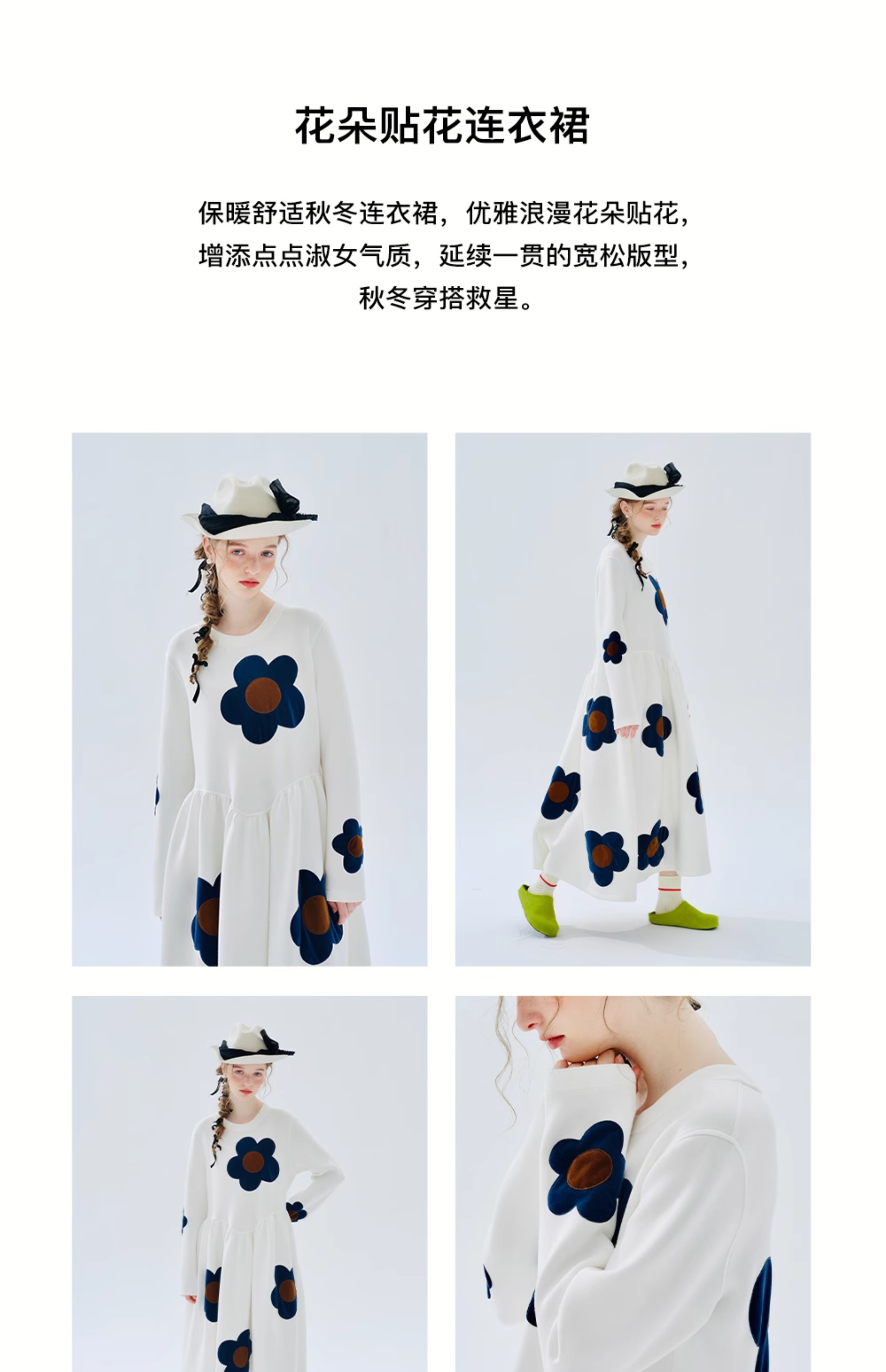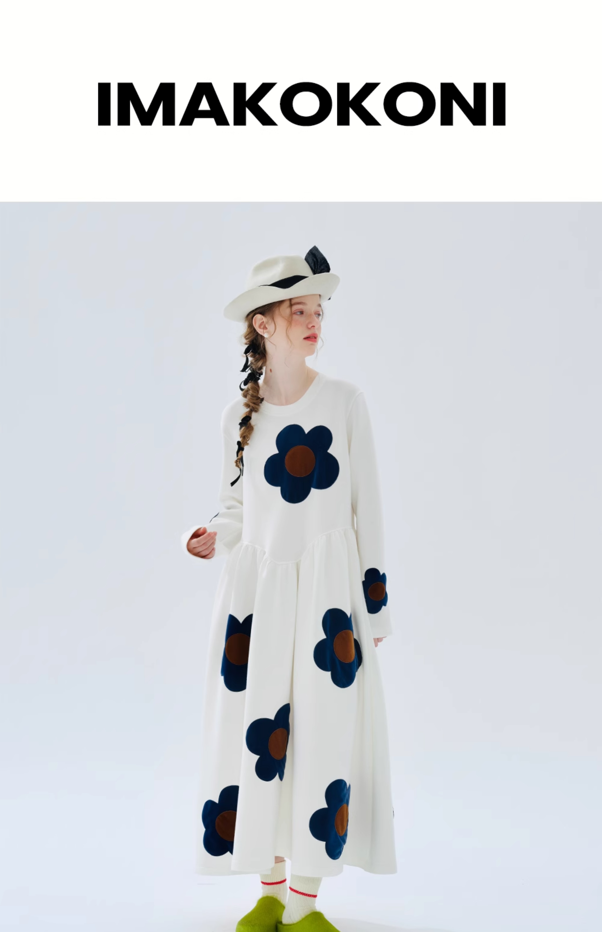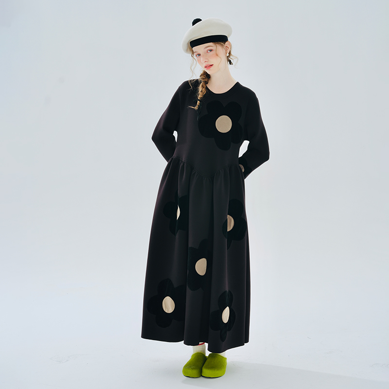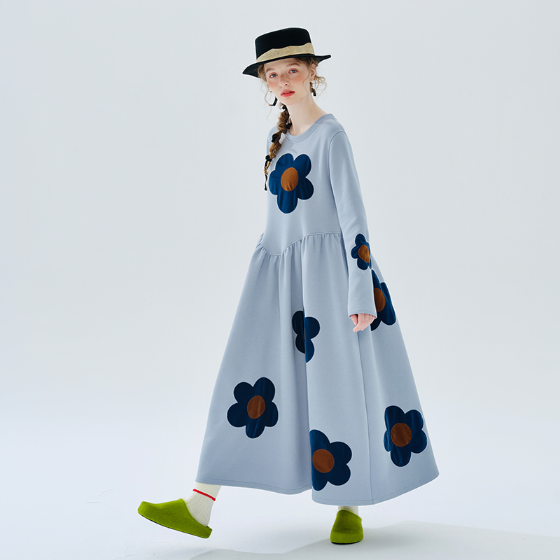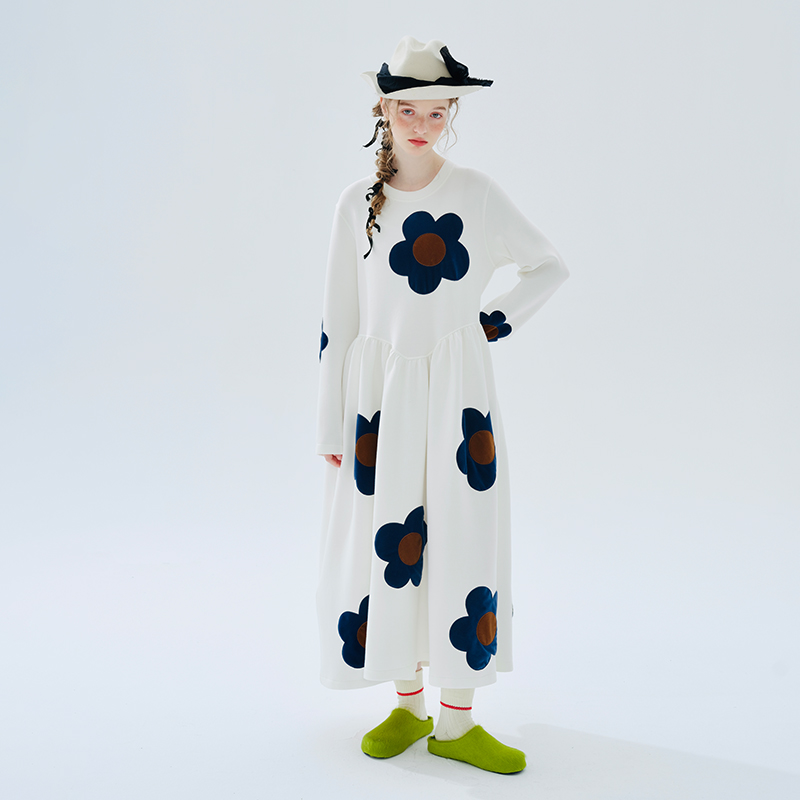 imakokoni 2023秋冬季新款原創印花圓領女洋裝234300