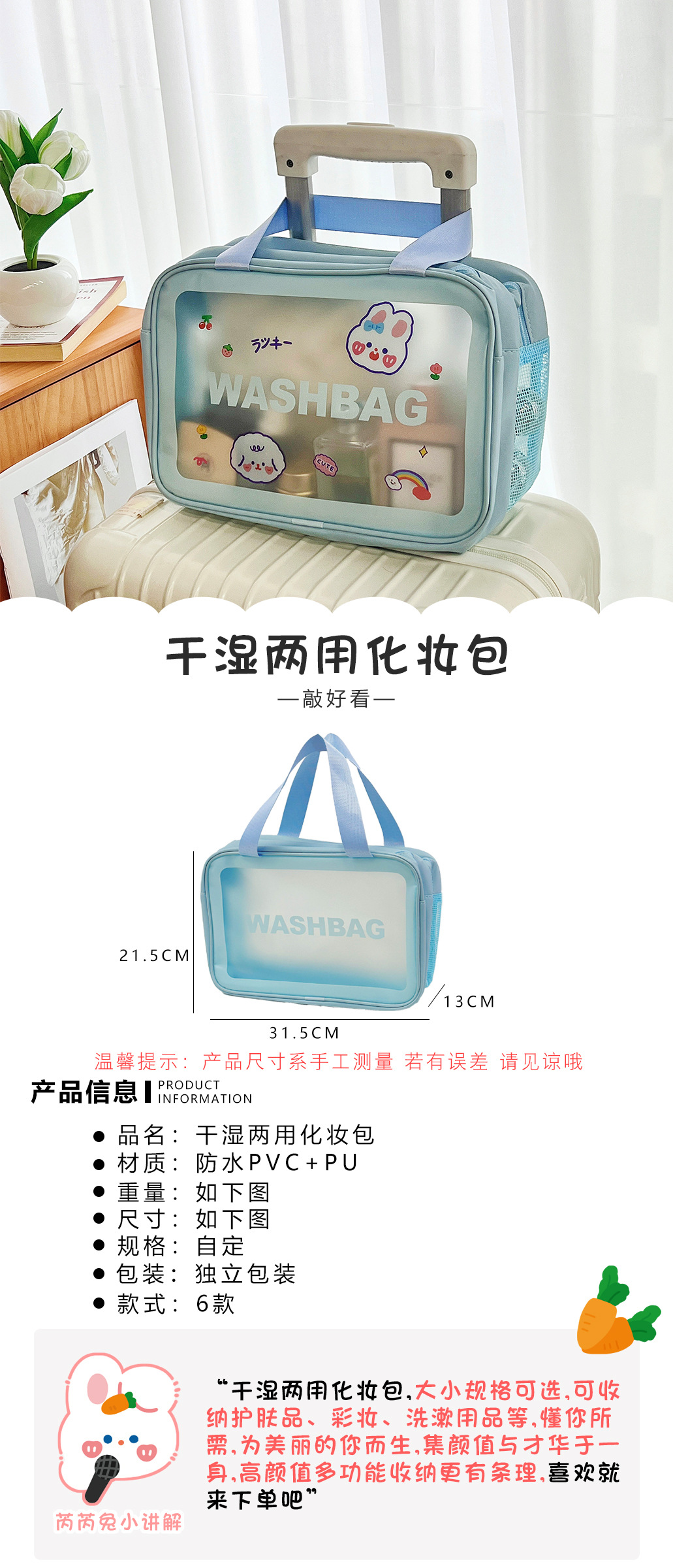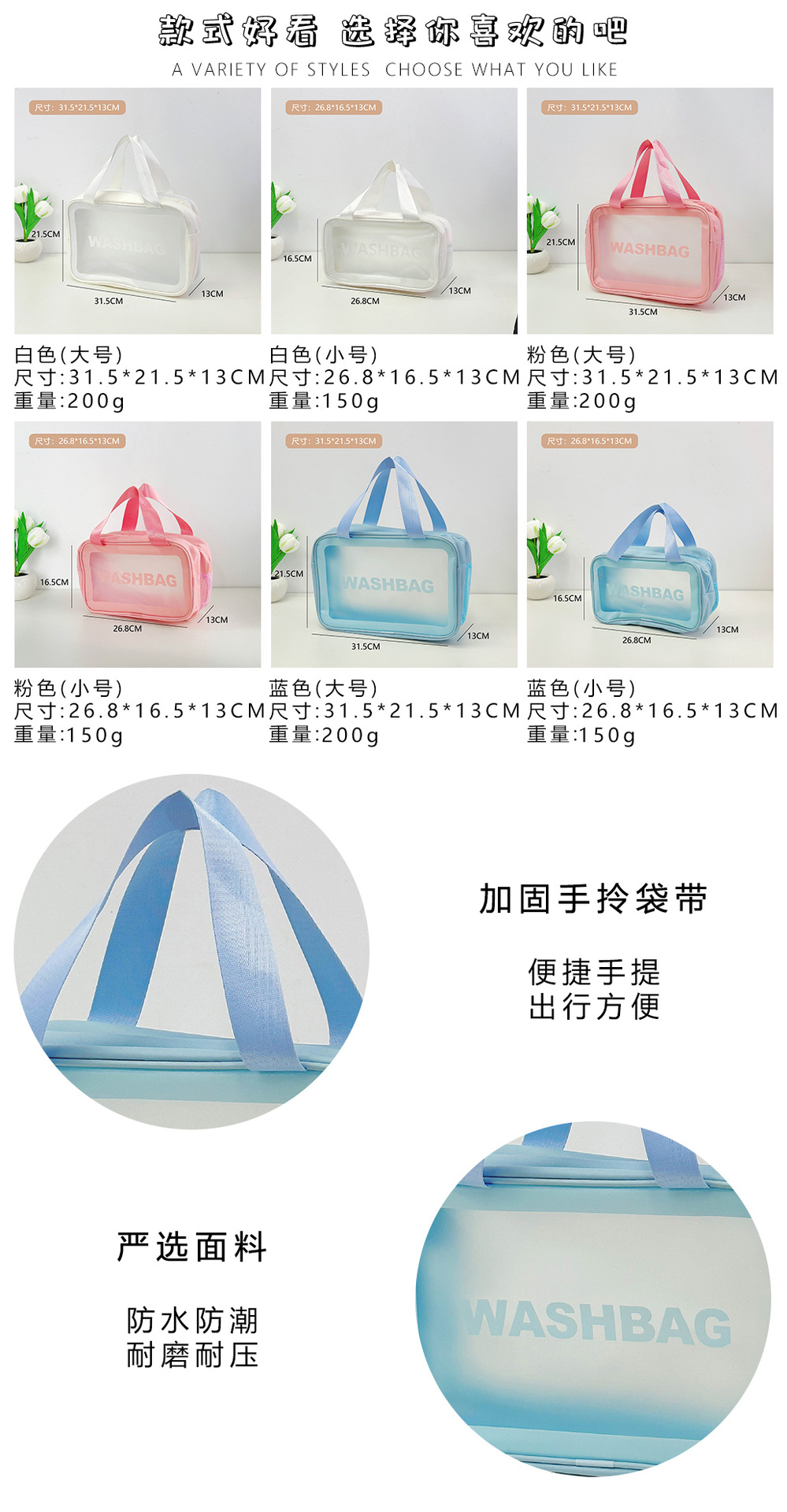 颜色 1#白色(小号干湿分离),2#粉色(小号干湿分离),3#蓝色(小号干湿分离),4#白色(大号干湿分离),5#粉色(大号干湿分离),6#蓝色(大号干湿分离),7#白色(小号送贴纸),8#粉色(小号送贴纸),9#蓝色(小号送贴纸),10#白色(大号送贴纸),11#蓝色(大号送贴纸),12#粉色(大号送贴纸),1#透明果冻包(小号),2#透明果冻包(大号)
