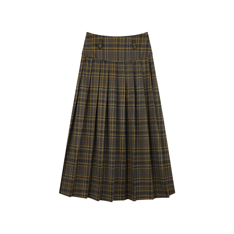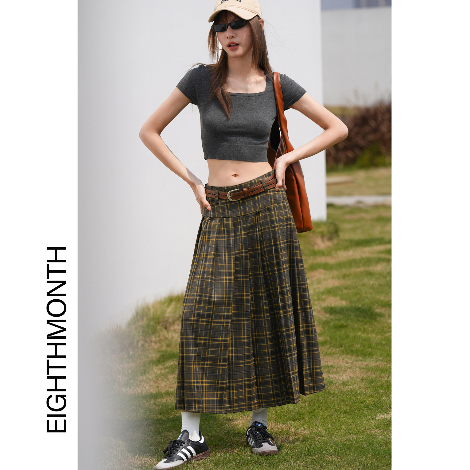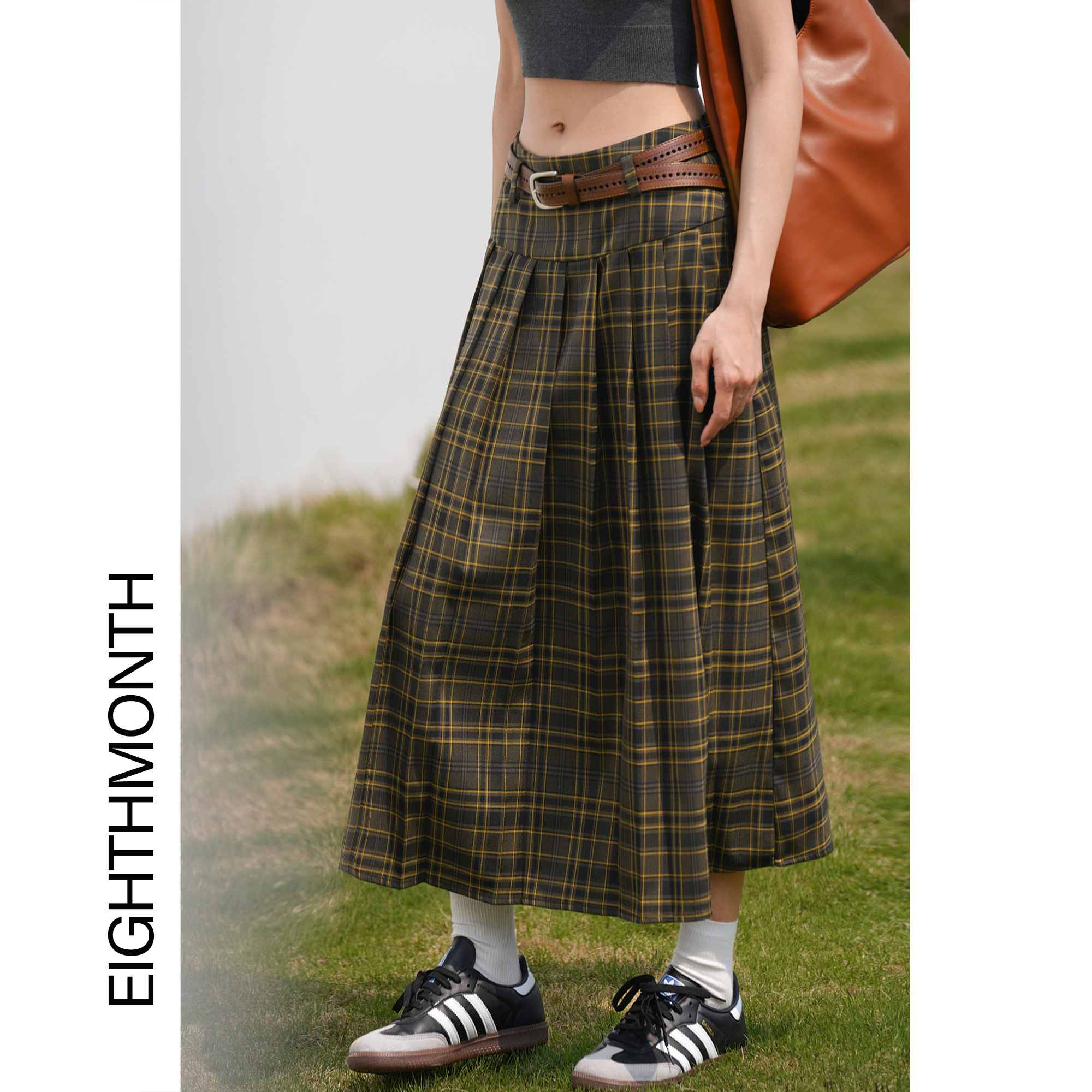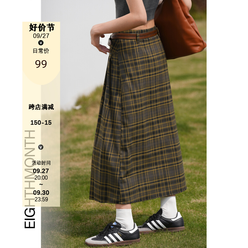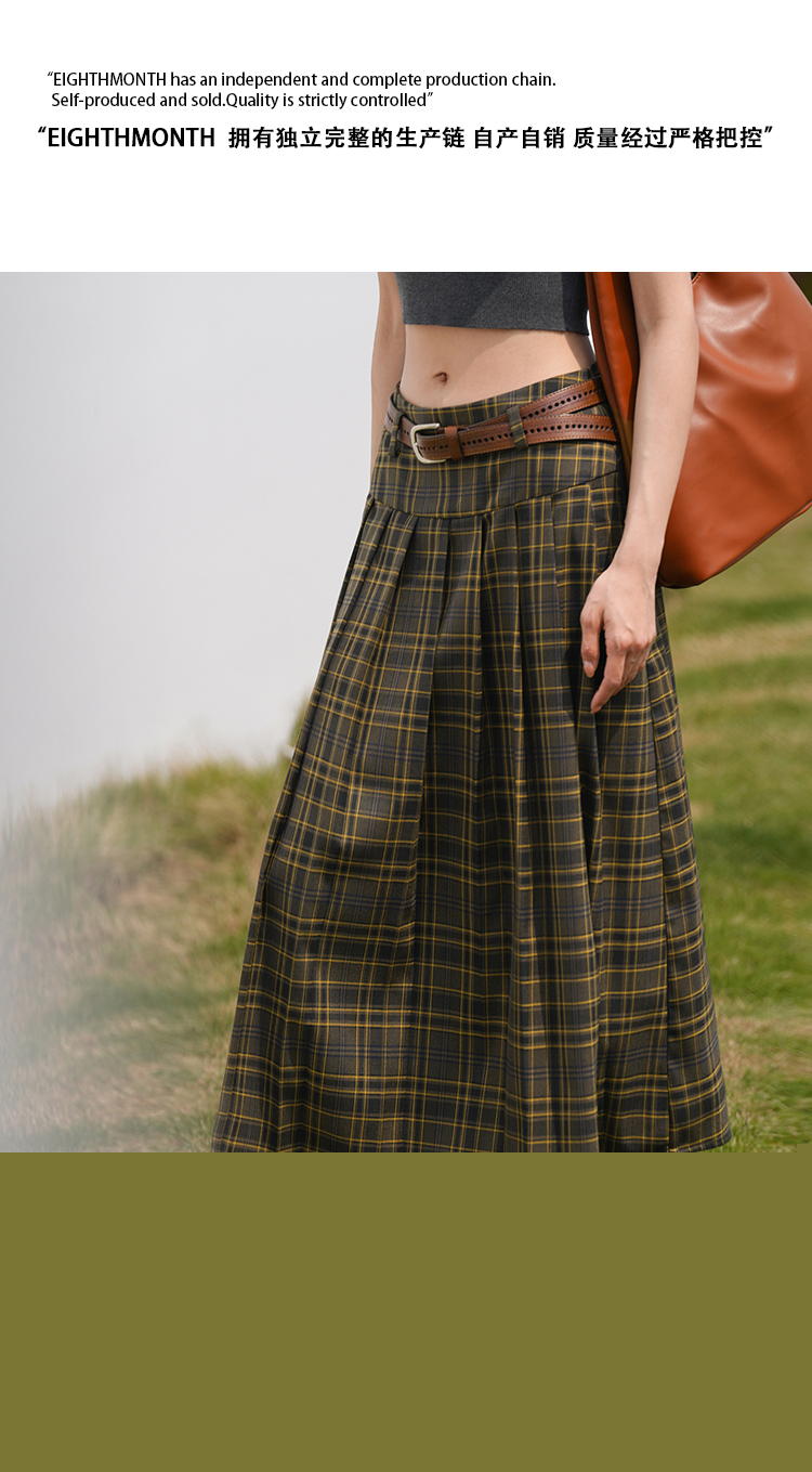 EIGHTHMONTH八月 格子百褶半身裙2023夏季新款小眾復古高腰裙子