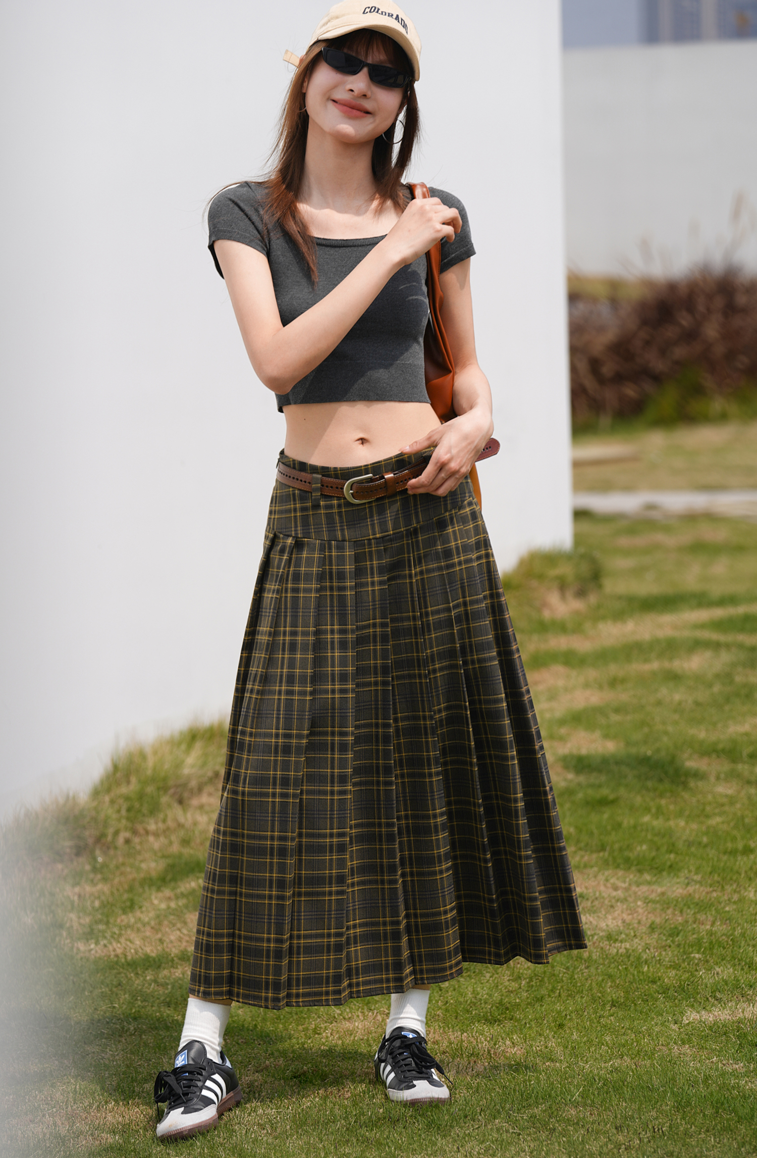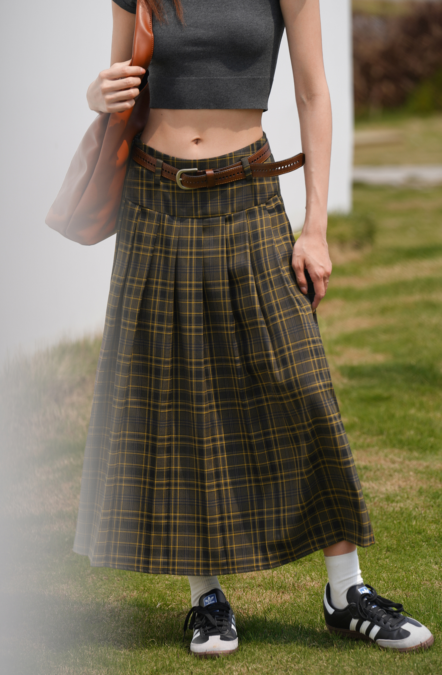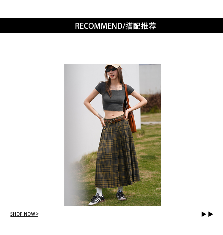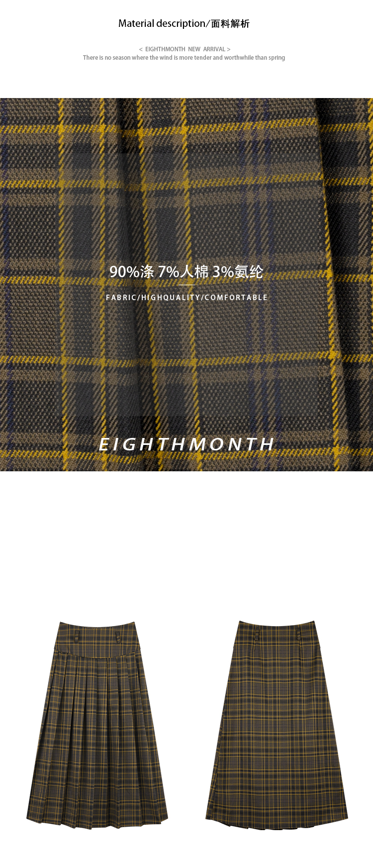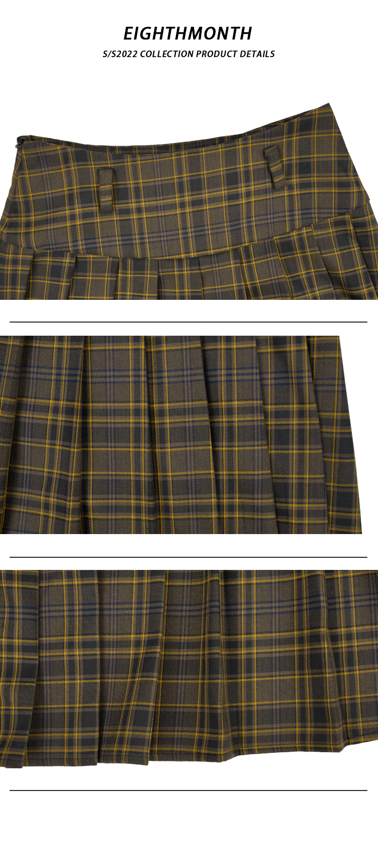 EIGHTHMONTH八月 格子百褶半身裙2023夏季新款小眾復古高腰裙子