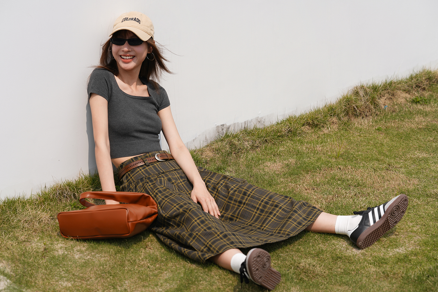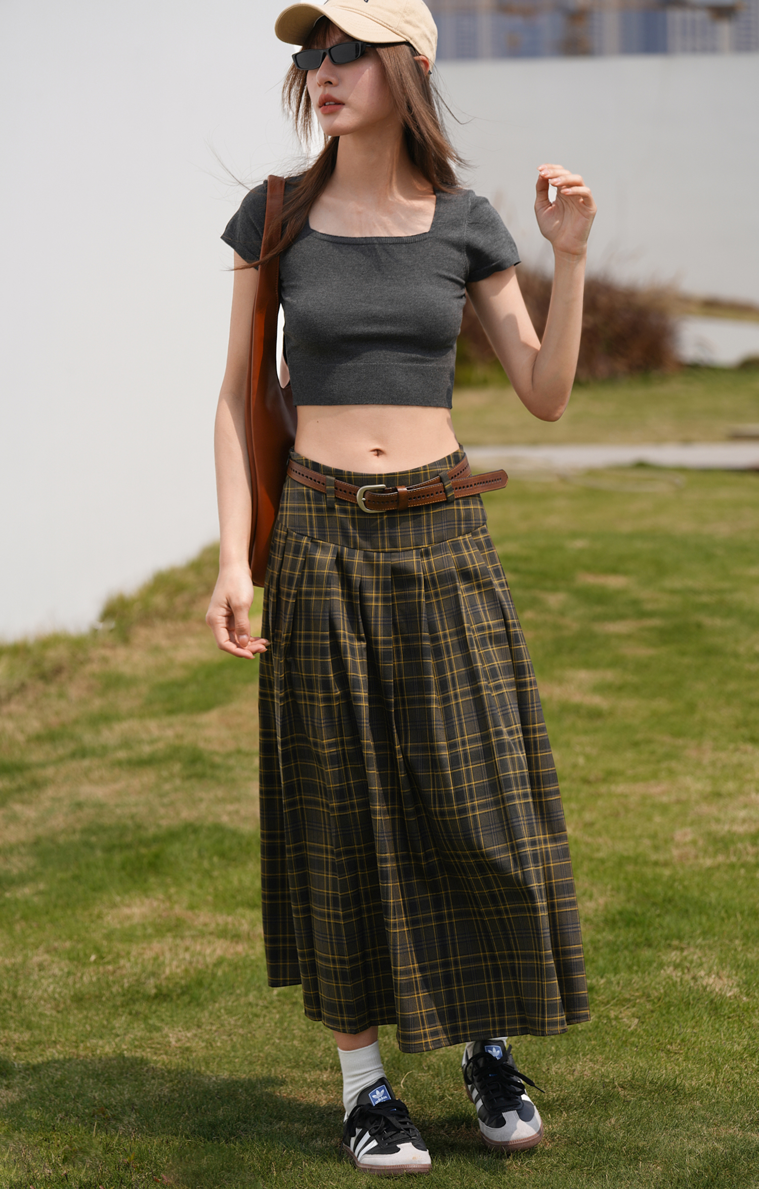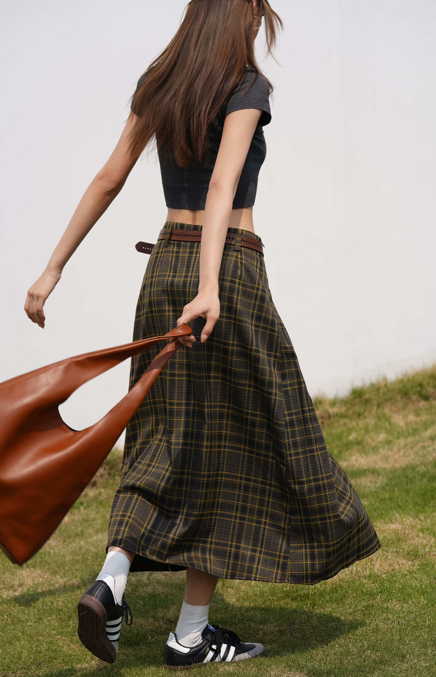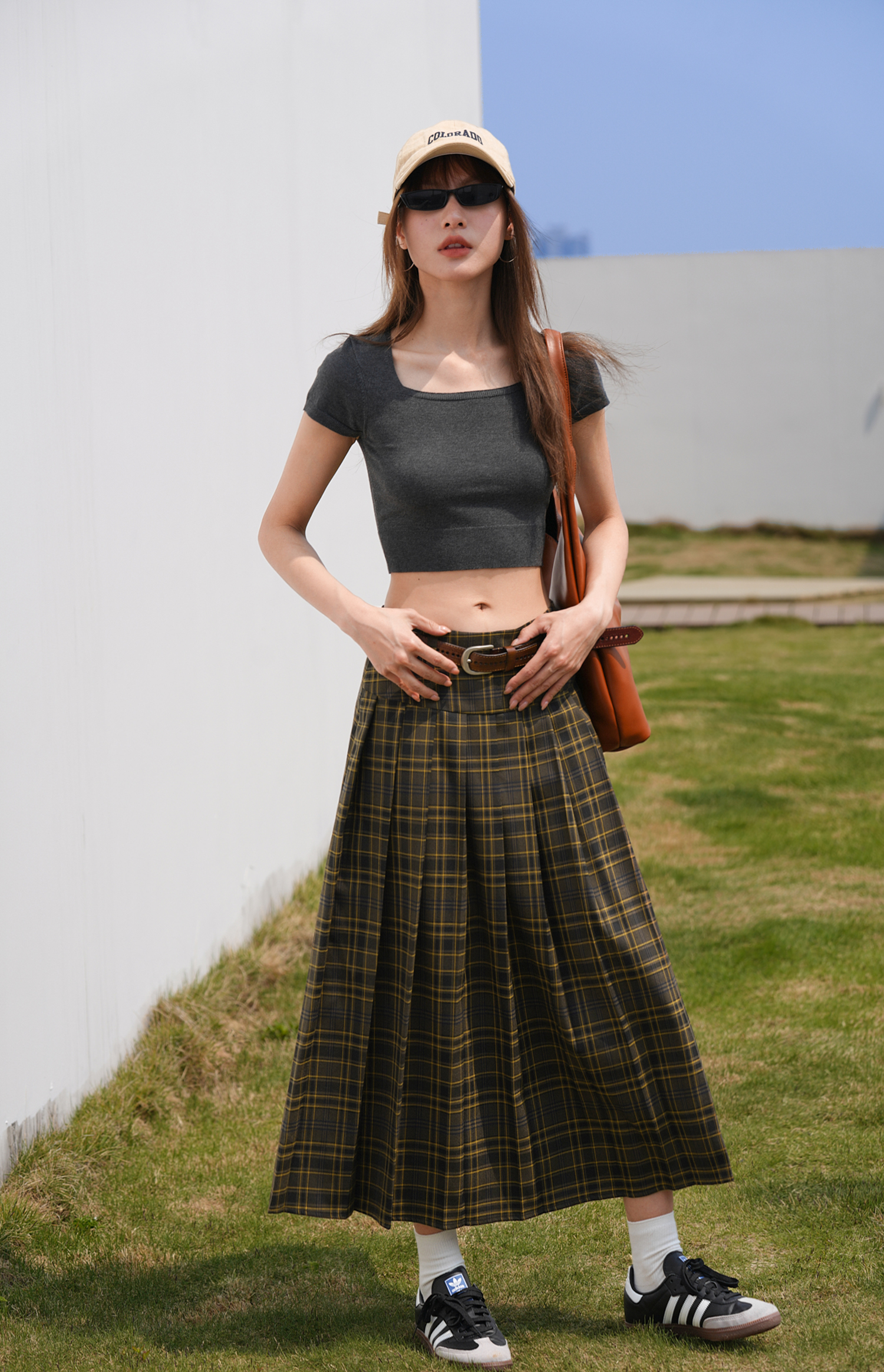 EIGHTHMONTH八月 格子百褶半身裙2023夏季新款小眾復古高腰裙子