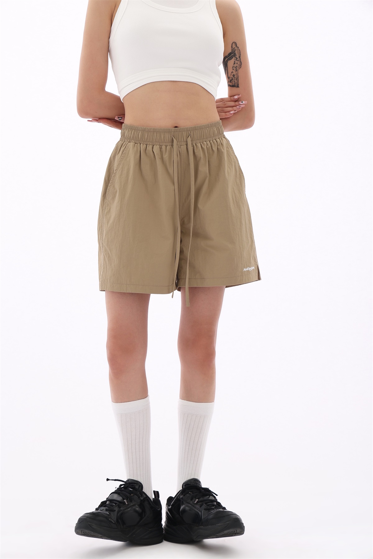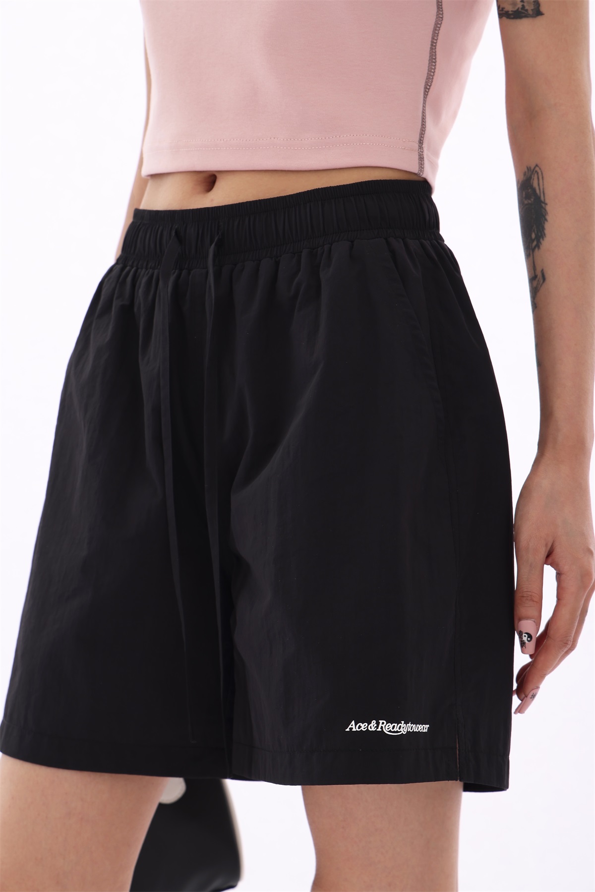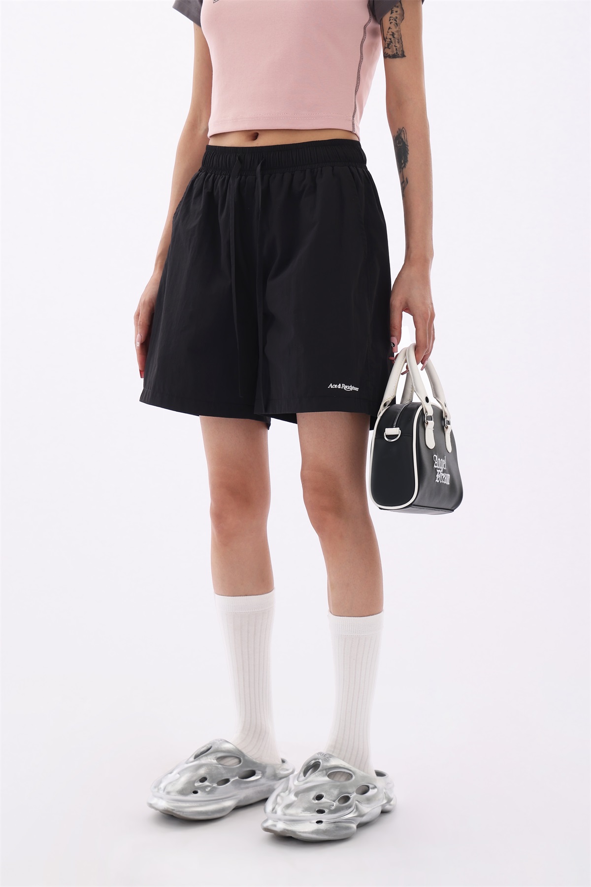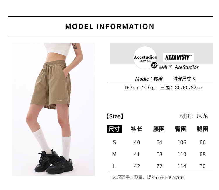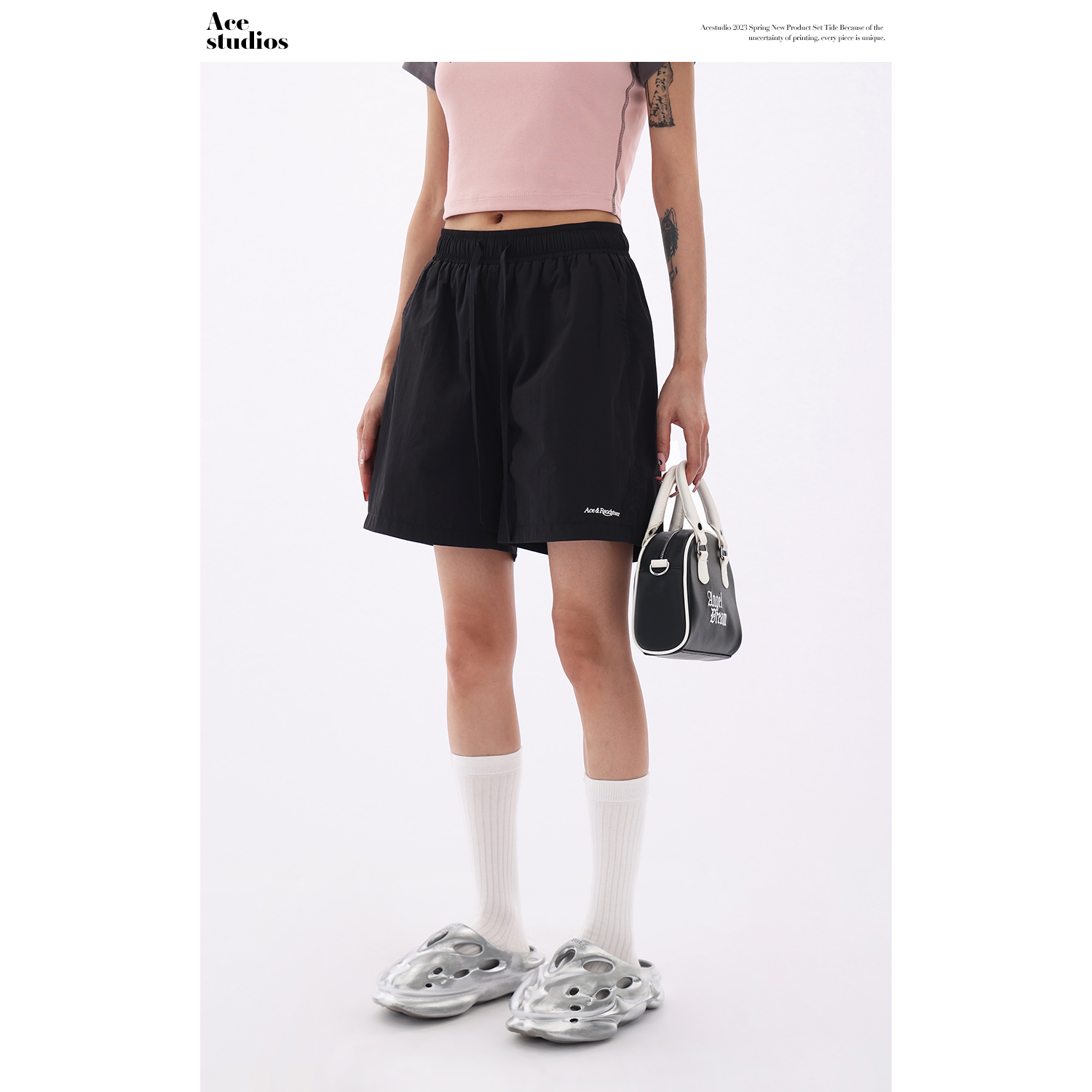 Acestudios 寬鬆衝鋒衣防水短褲女2023夏新款休閒百搭黑色五分褲