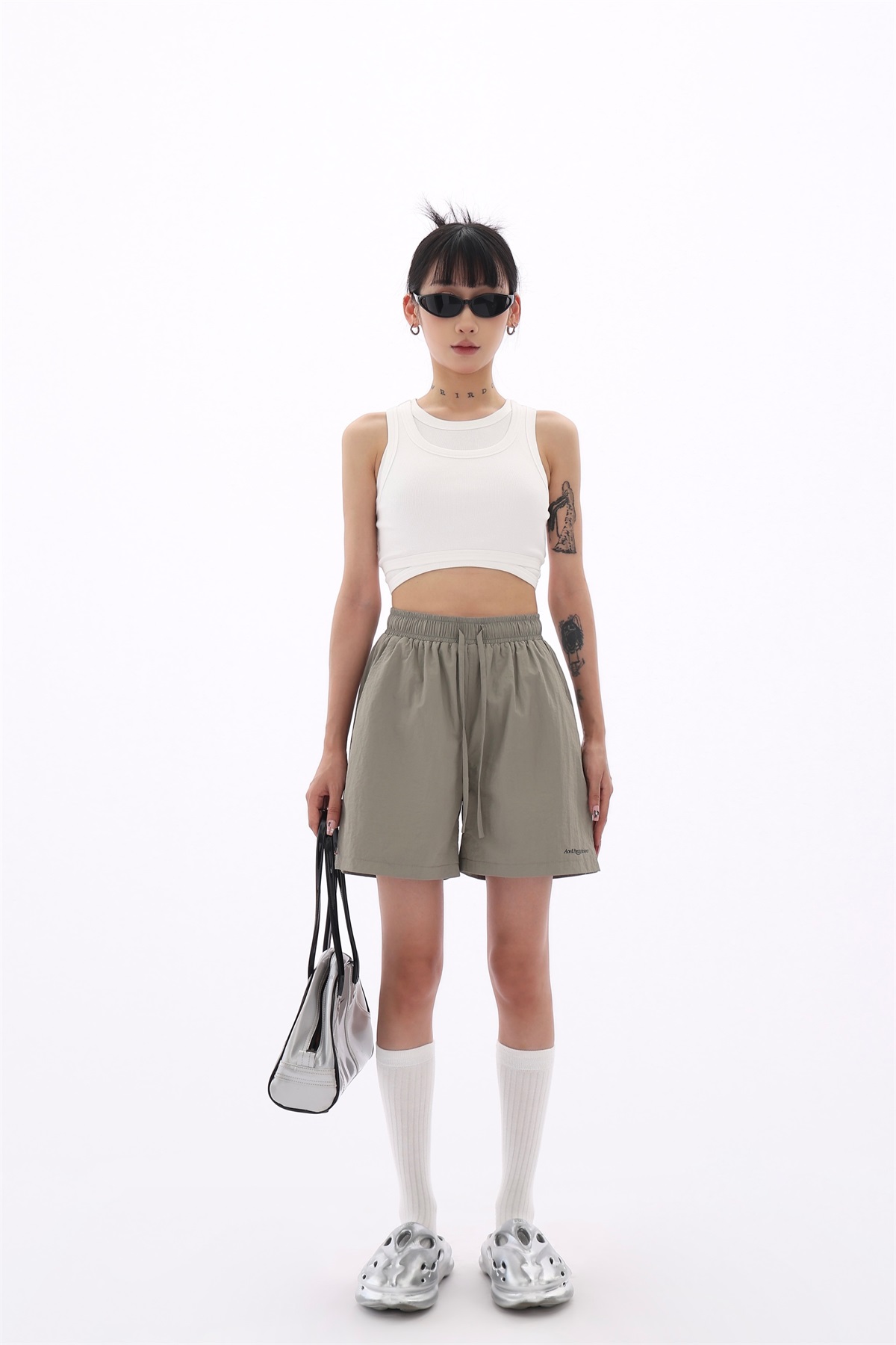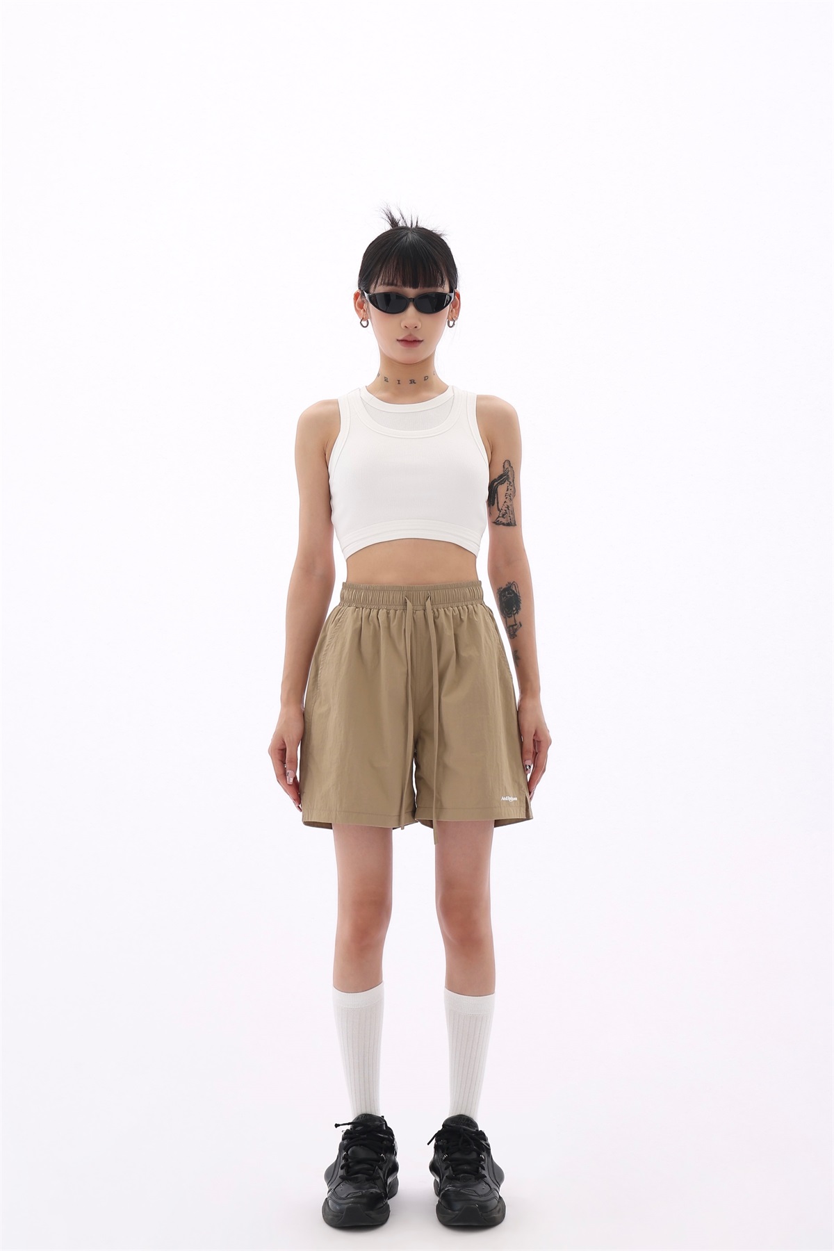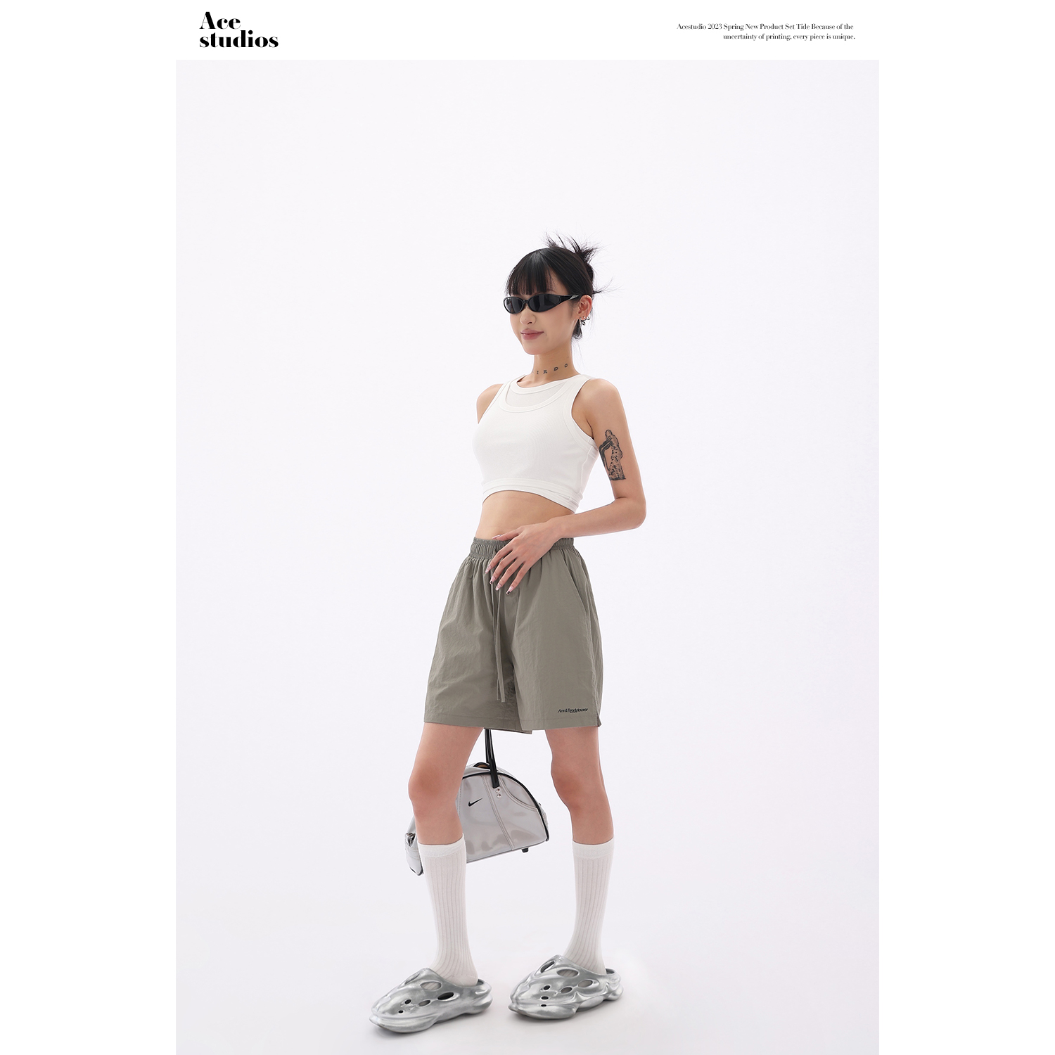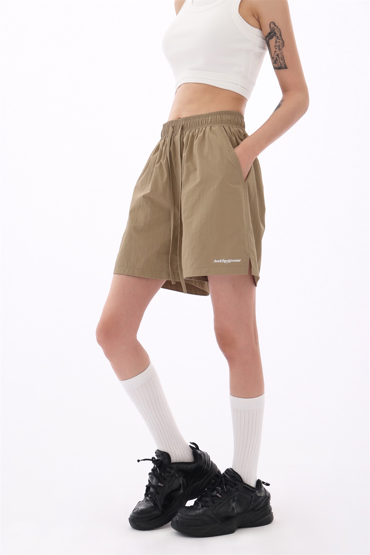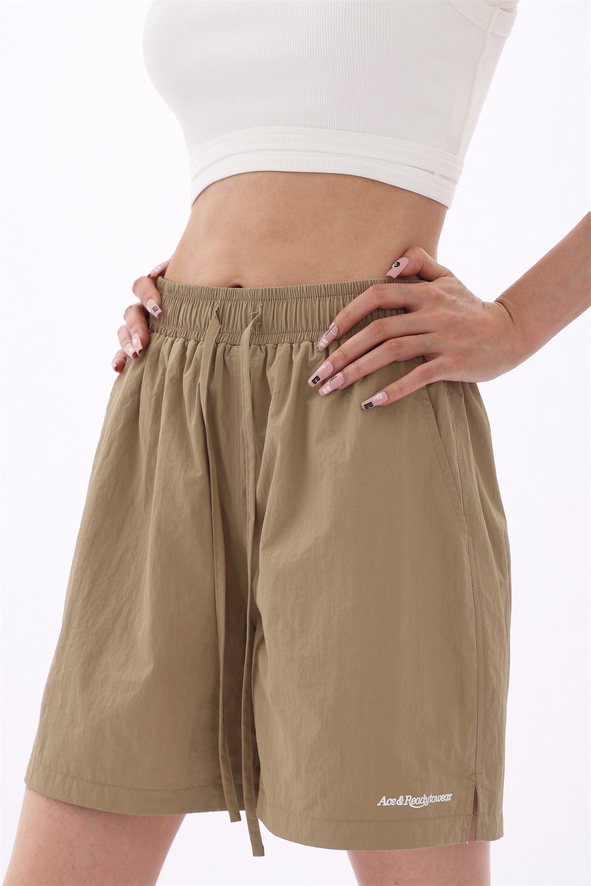 Acestudios 寬鬆衝鋒衣防水短褲女2023夏新款休閒百搭黑色五分褲