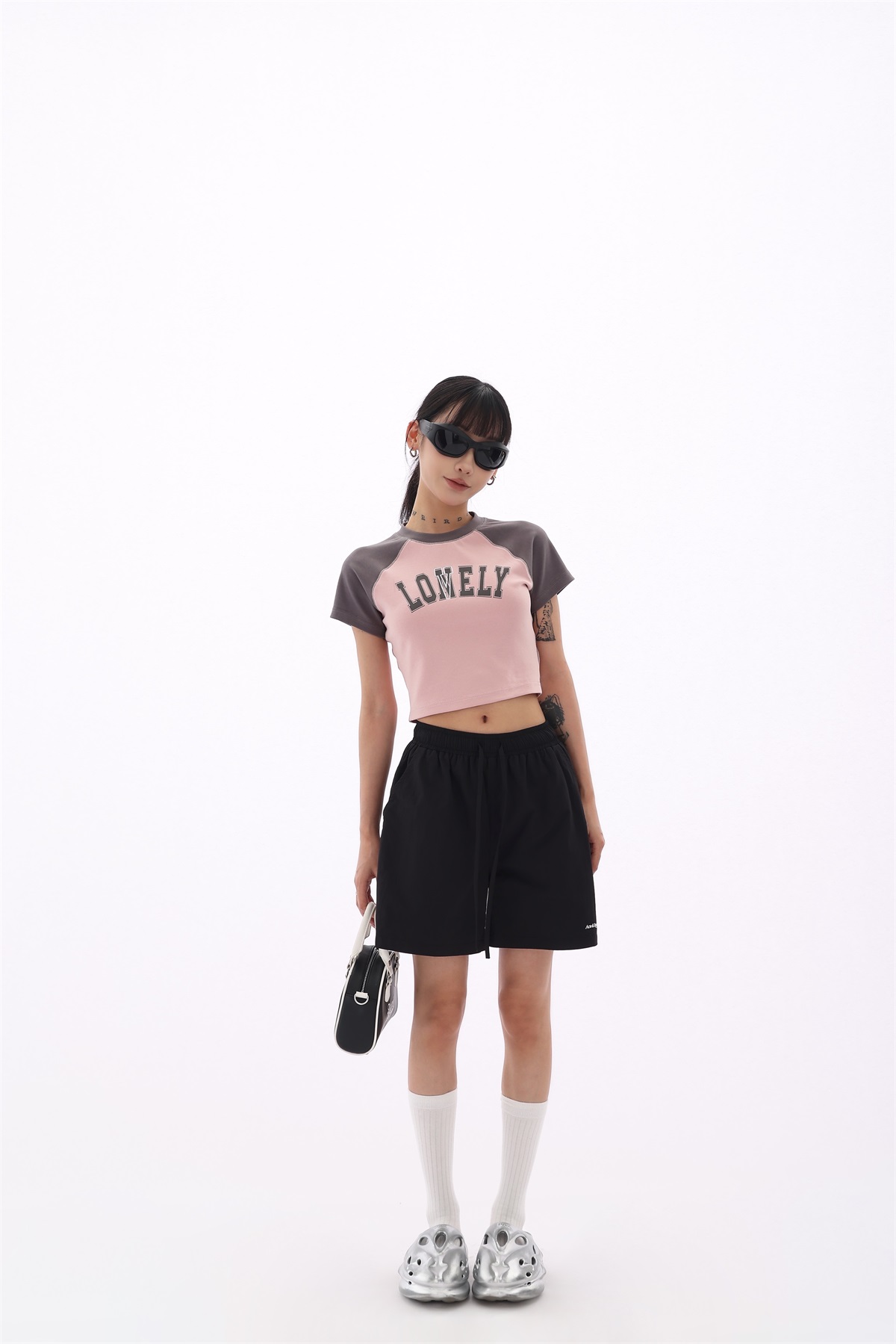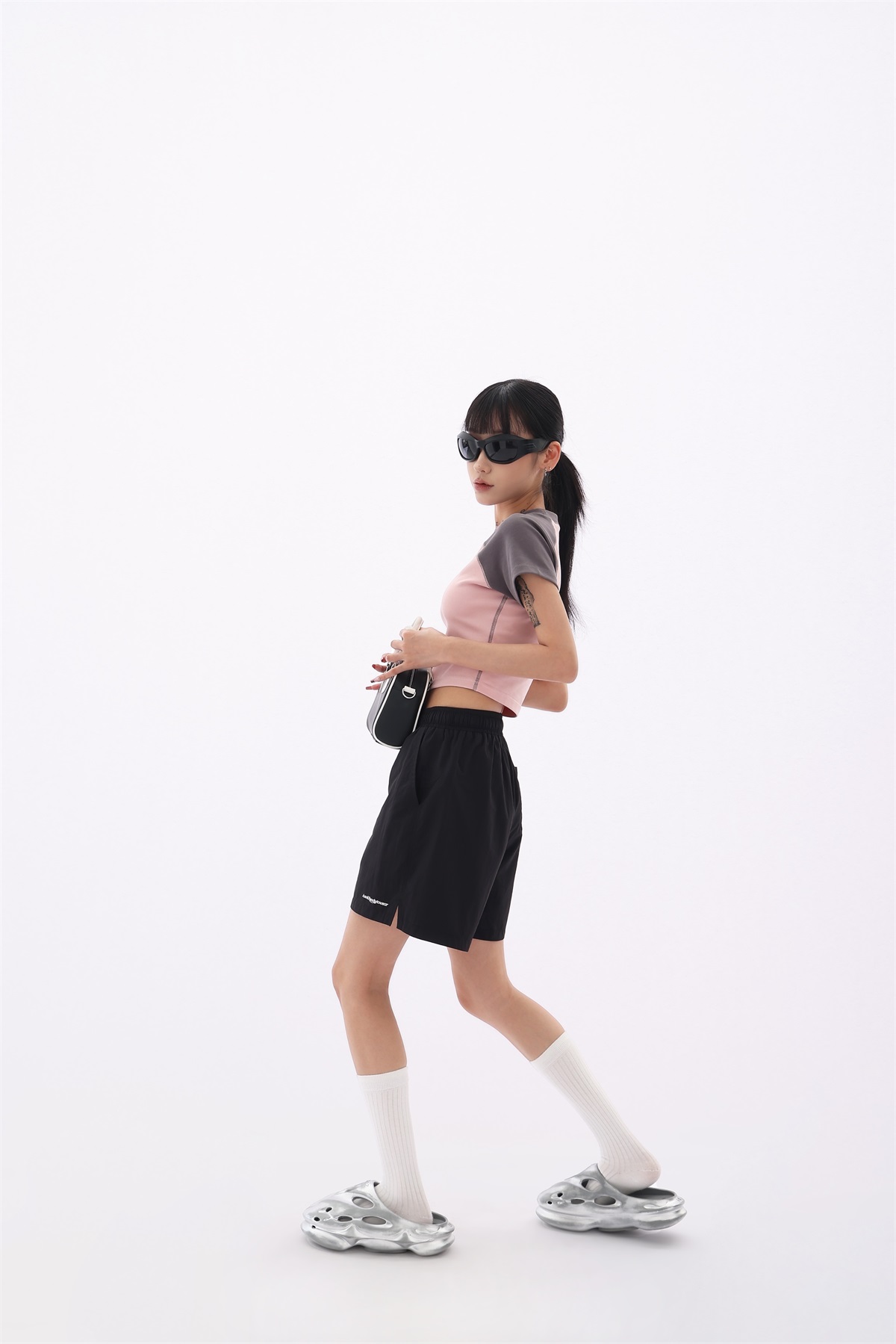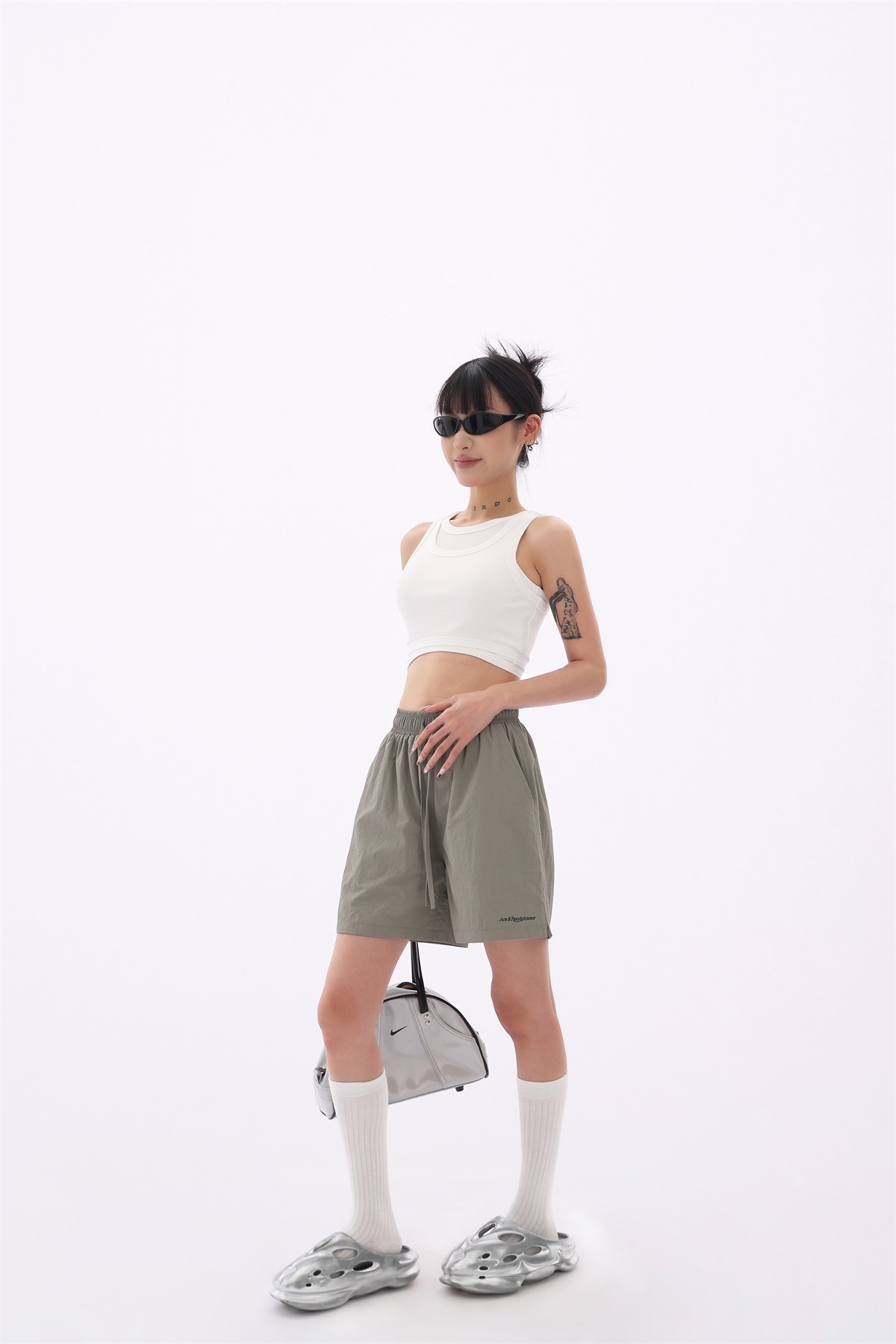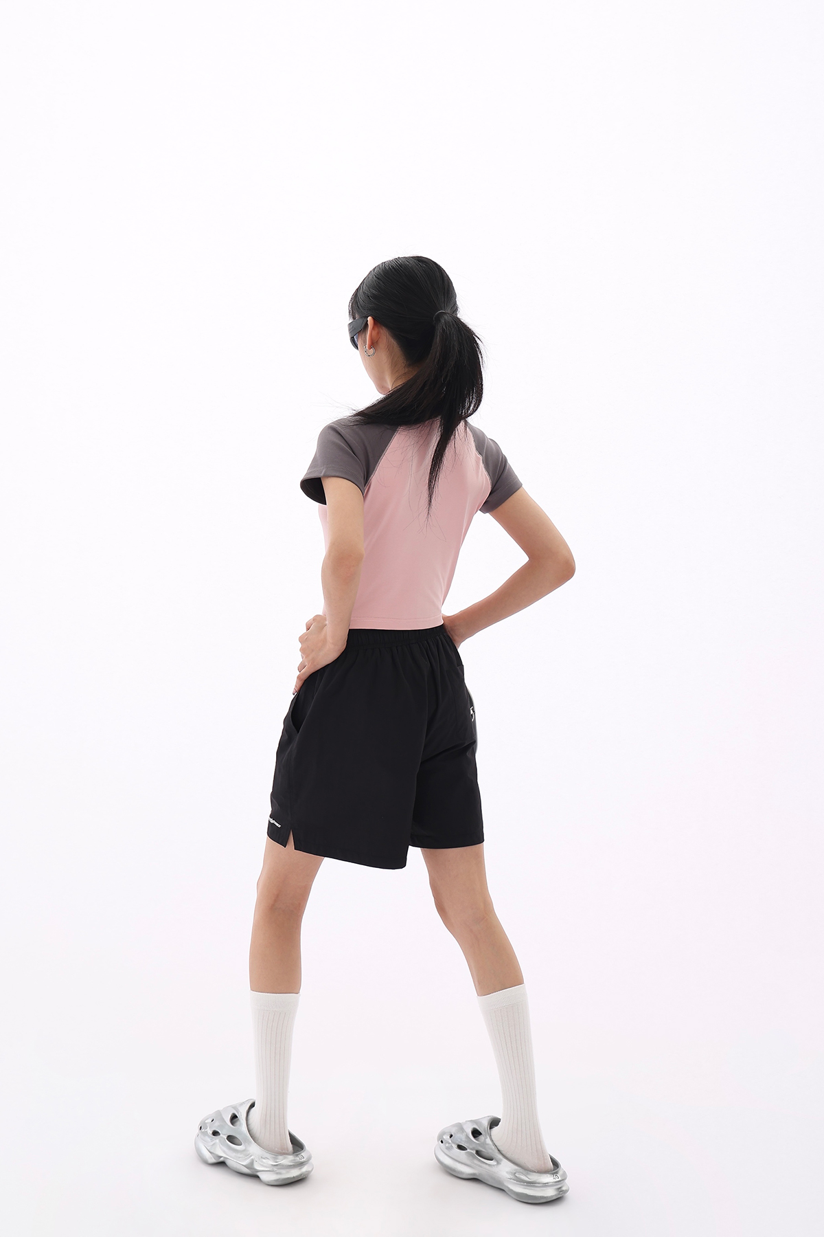 Acestudios 寬鬆衝鋒衣防水短褲女2023夏新款休閒百搭黑色五分褲