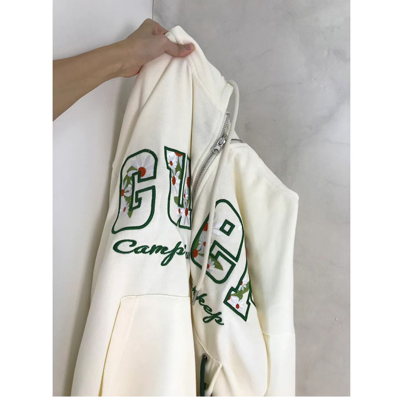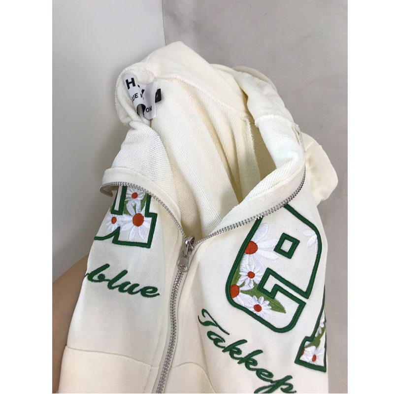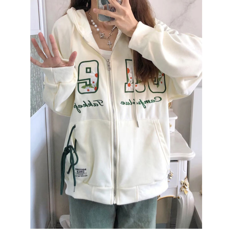 美式復古設計感連帽開杉衛衣女外套寬鬆拉鍊抽繩字母刺繡春秋上衣
