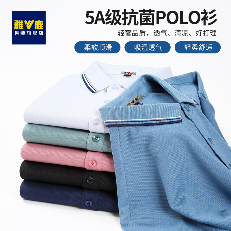 【5A抗菌】雅鹿短袖polo衫男士夏季薄款T恤純色棉質休閒T恤上衣