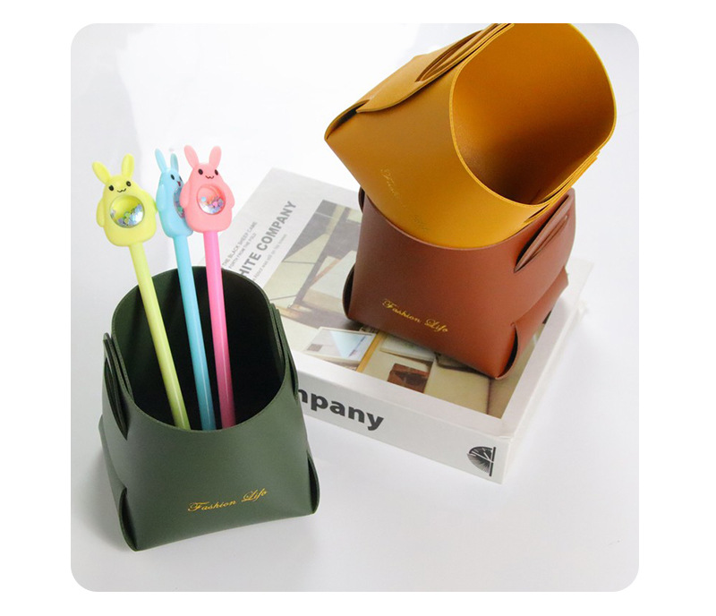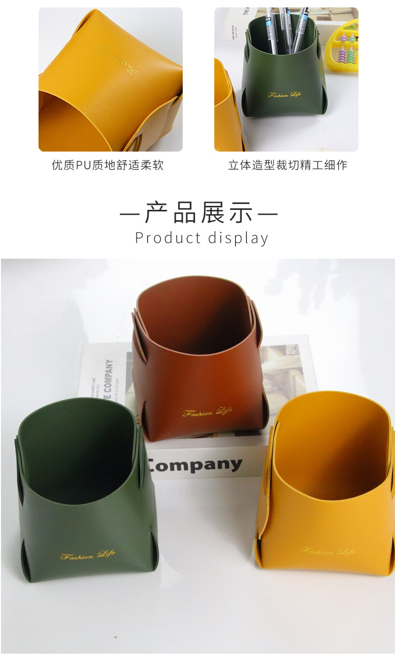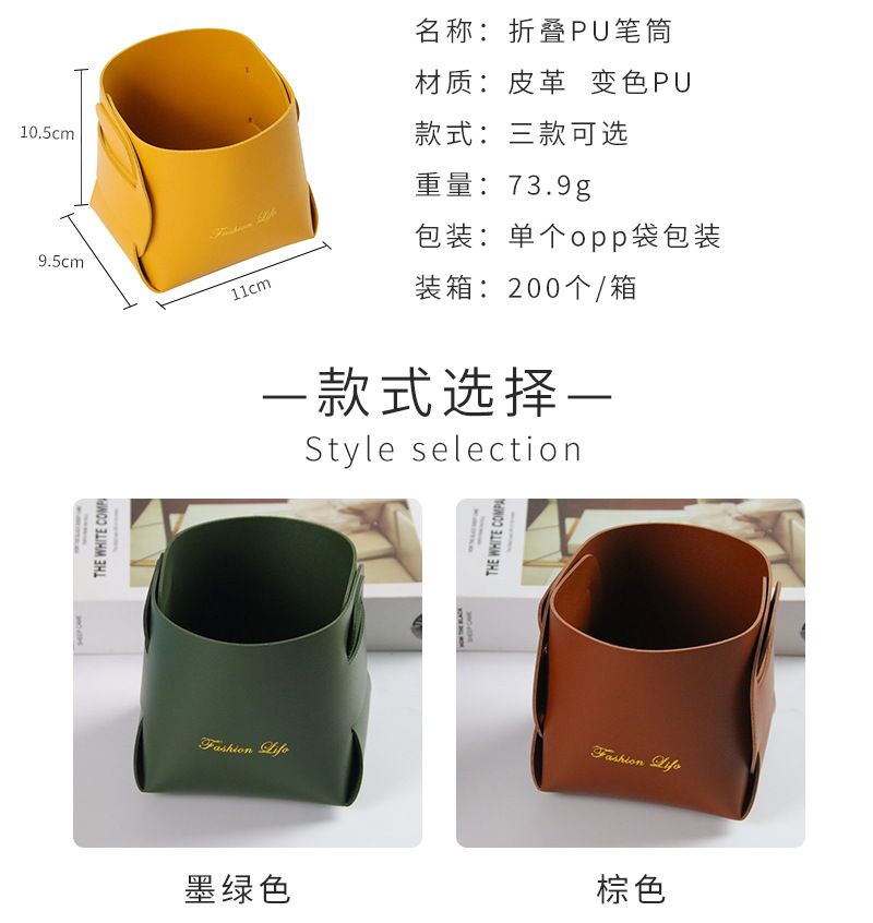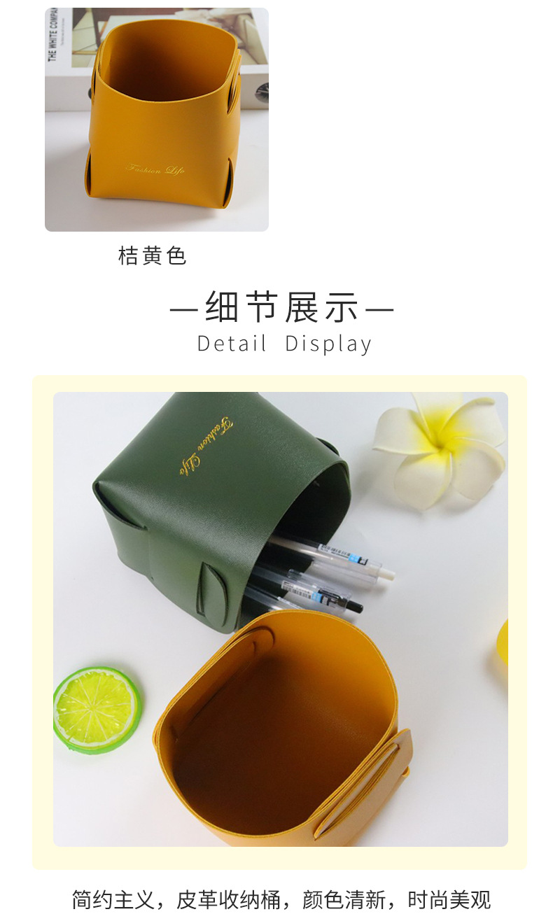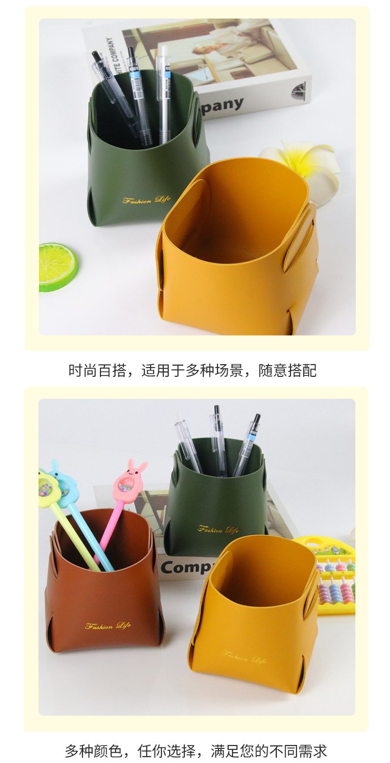高颜值折叠PU皮笔筒创意可拆卸学生文具收纳盒桌面摆件办公收纳桶