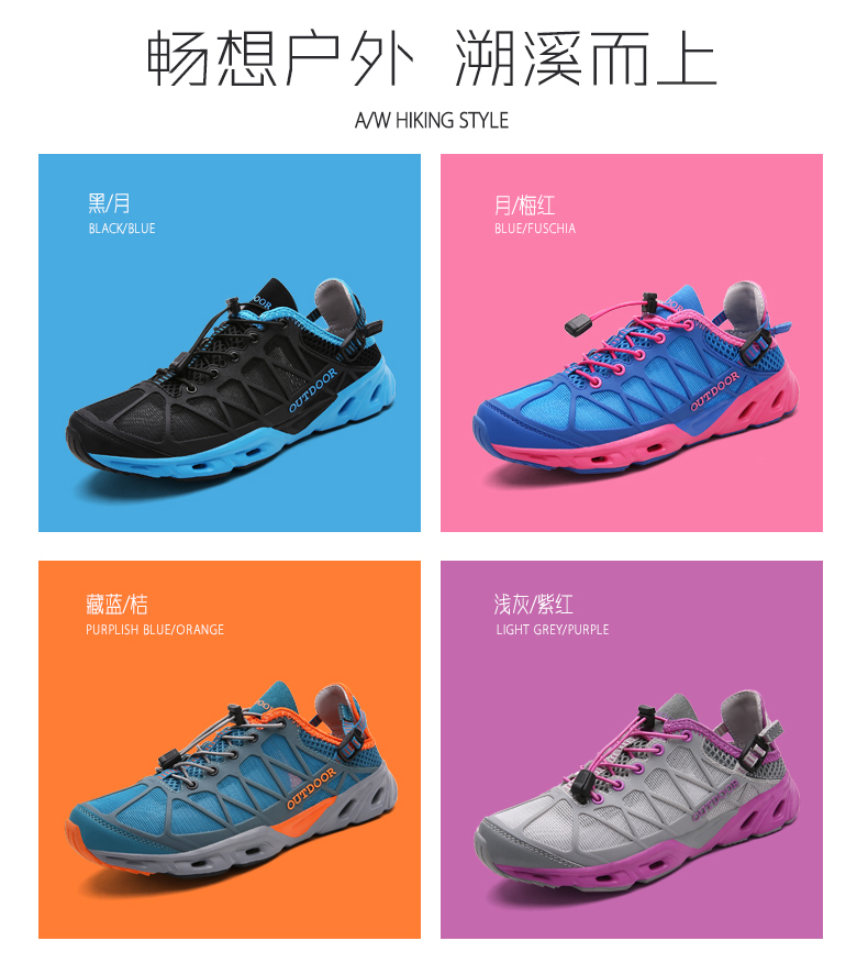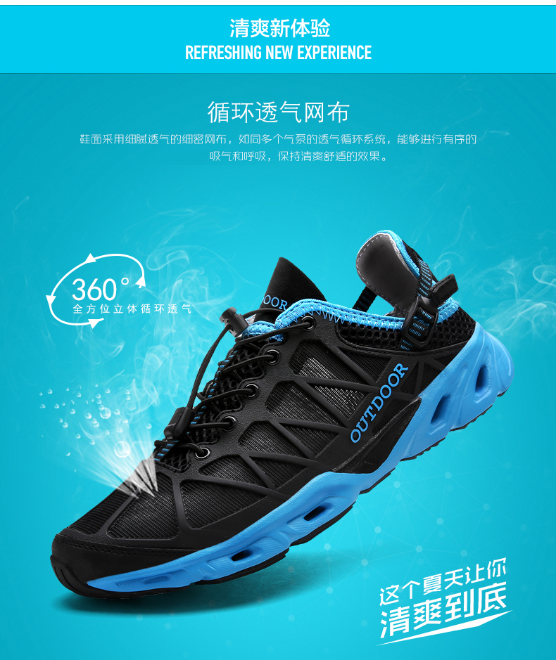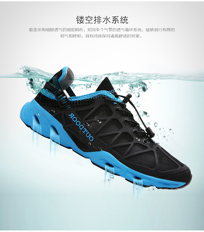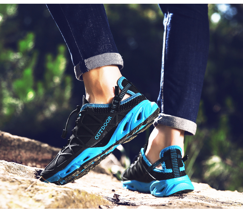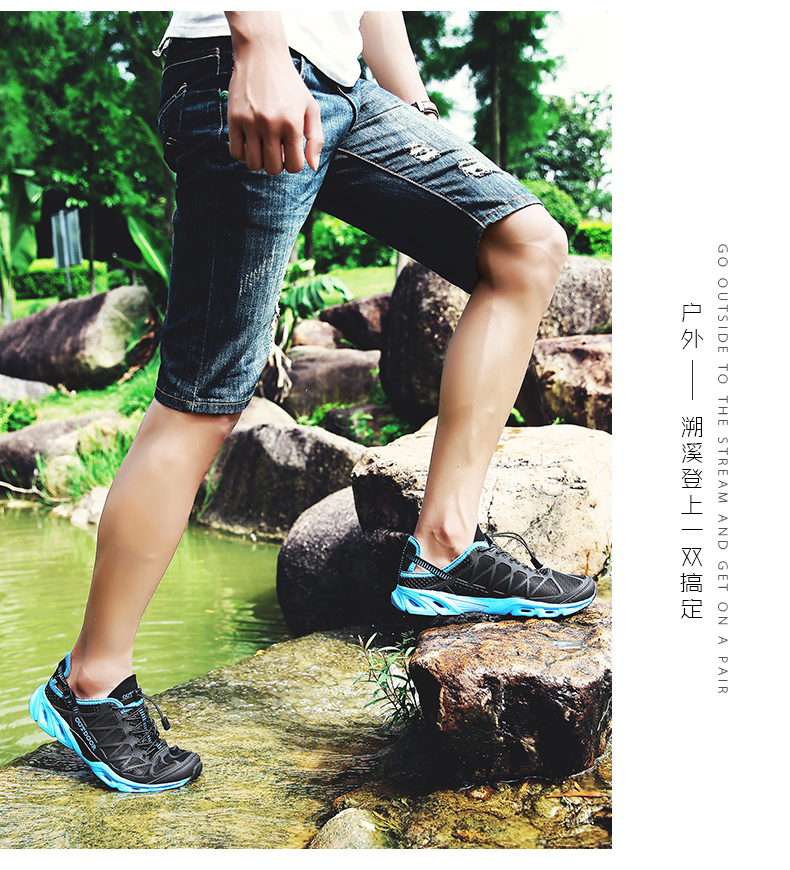 美國外貿 夏季速乾戶外男溯溪鞋洞洞透氣運動登山網面徒步鞋防滑