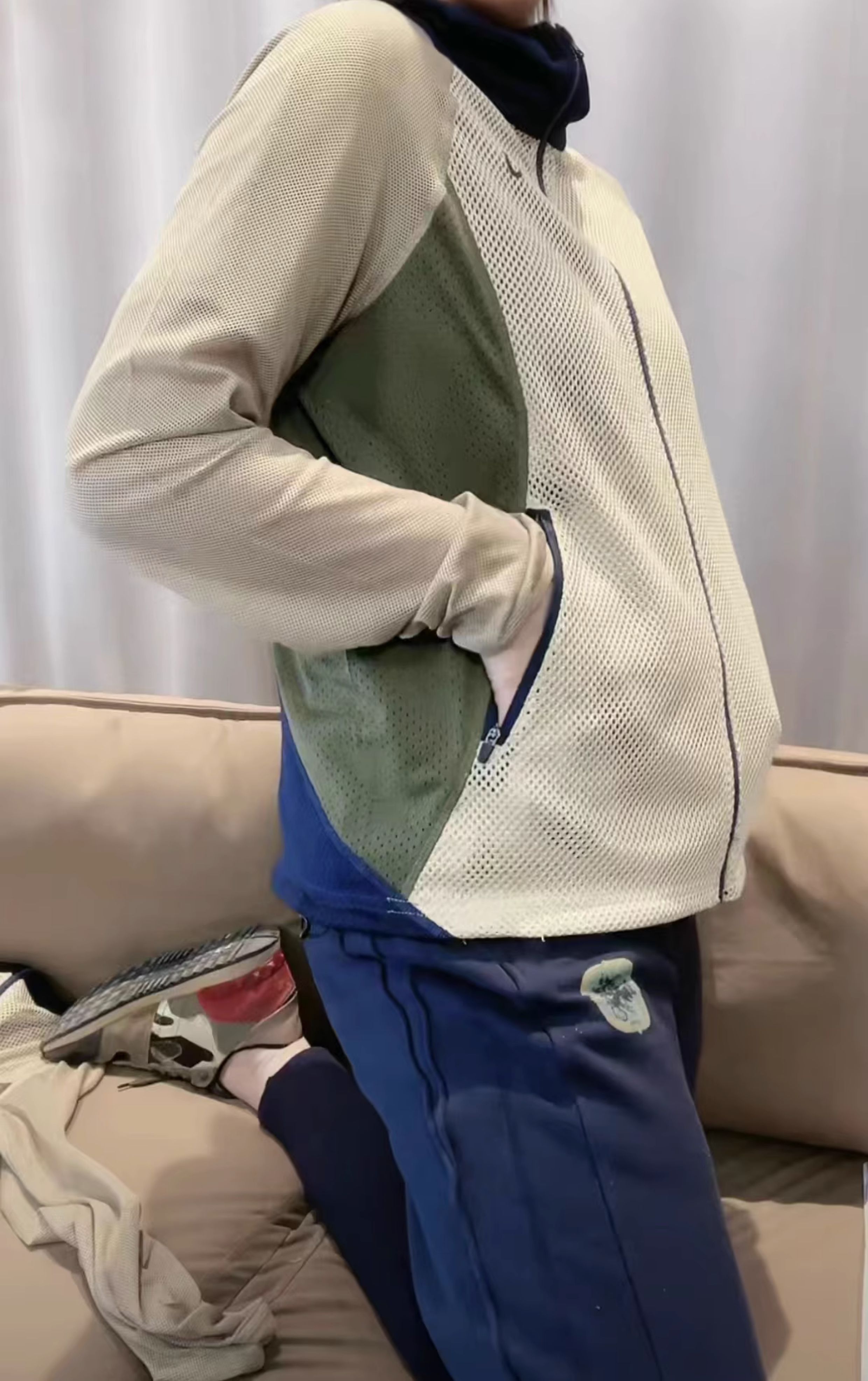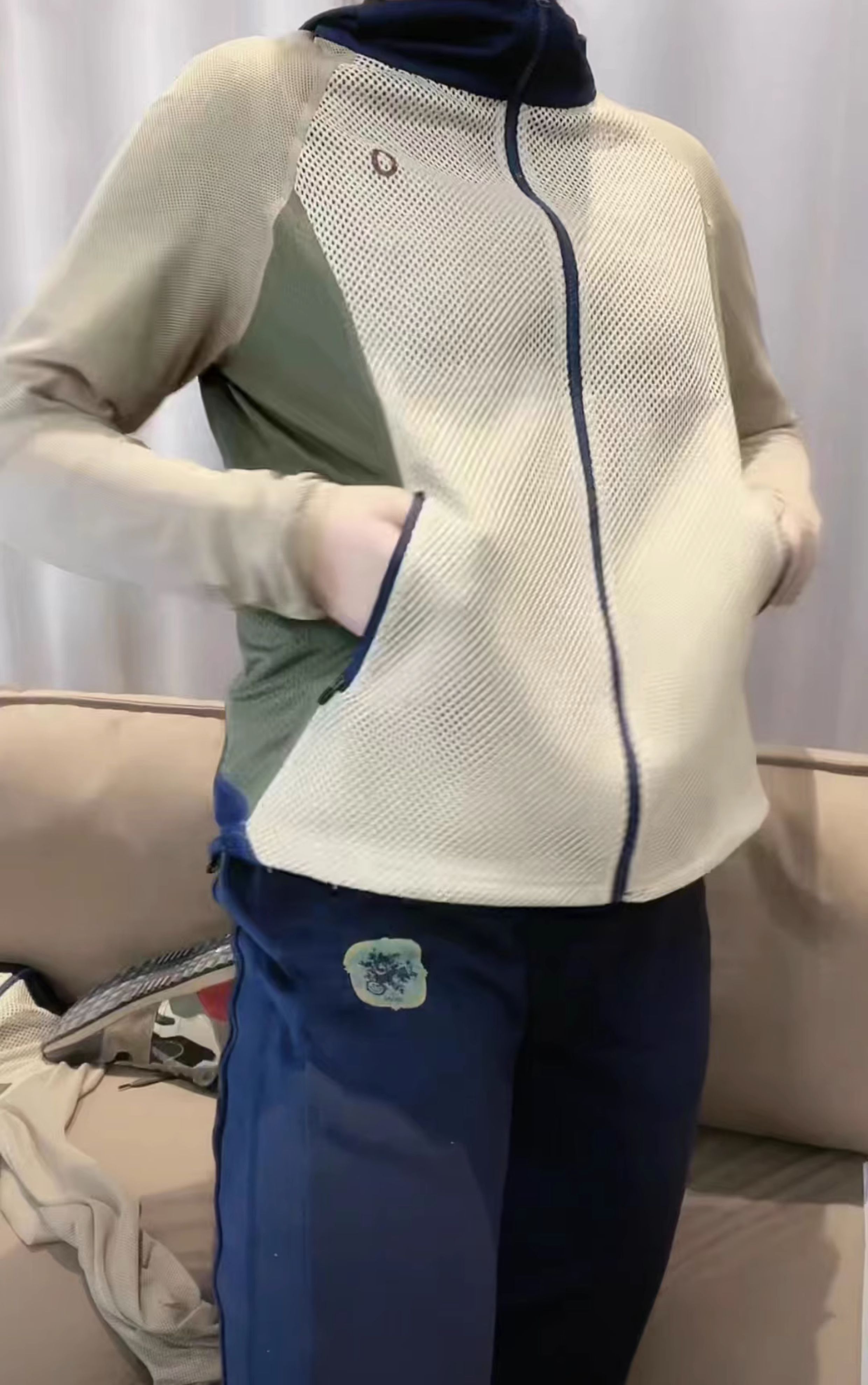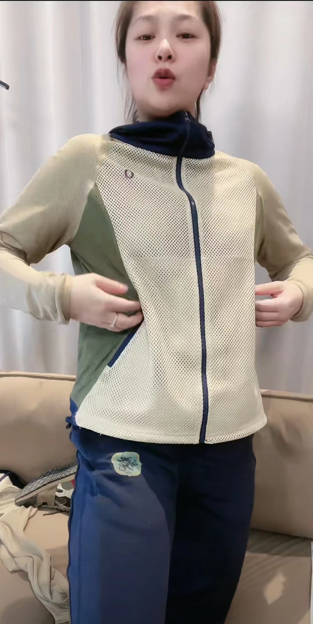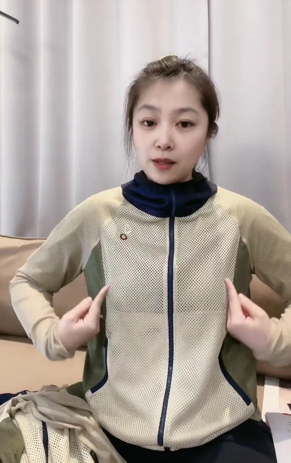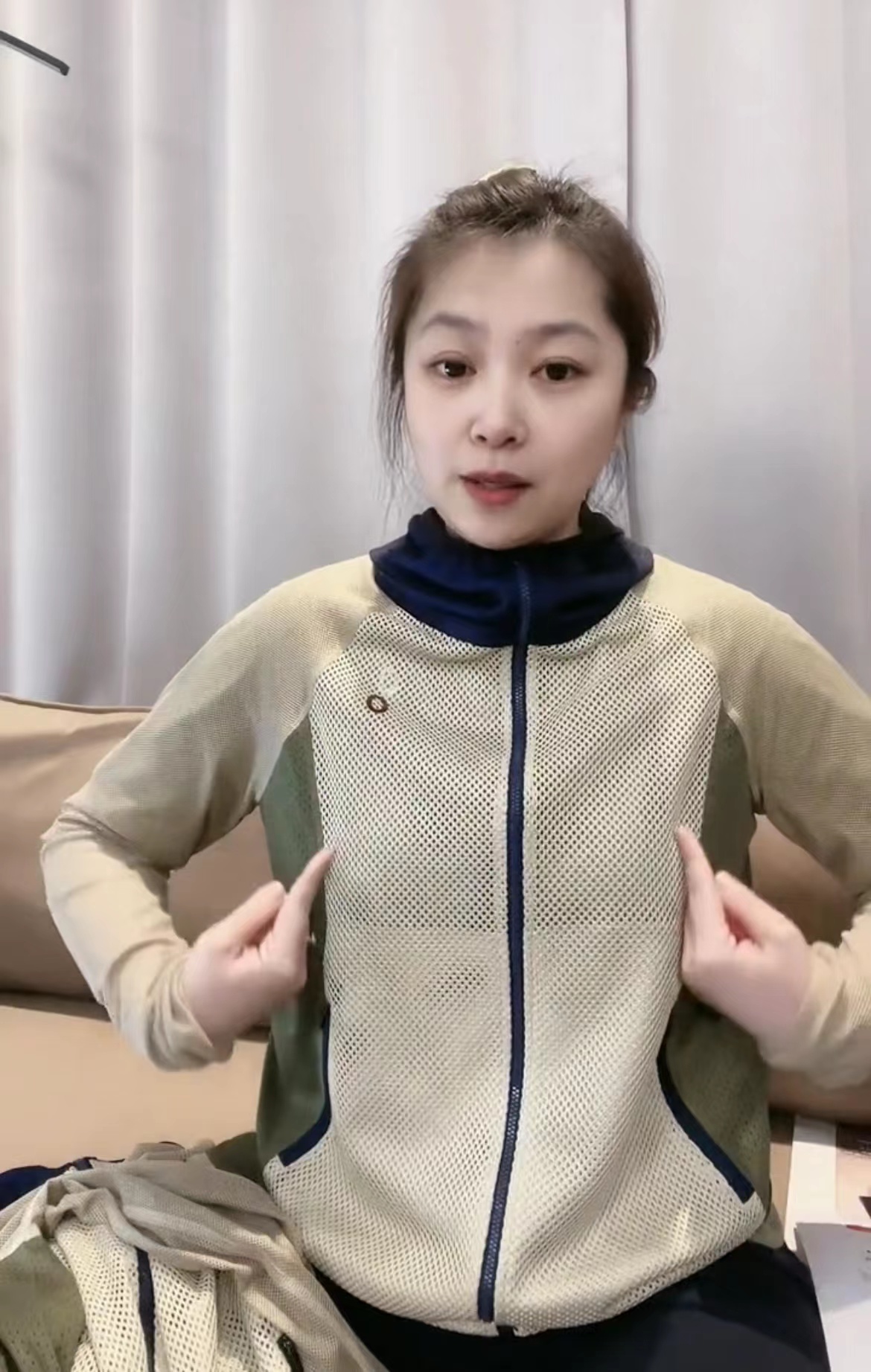 歐貨撞色連帽網格防曬服外套女2023春夏寬鬆百搭抽繩輕薄拉鍊開衫