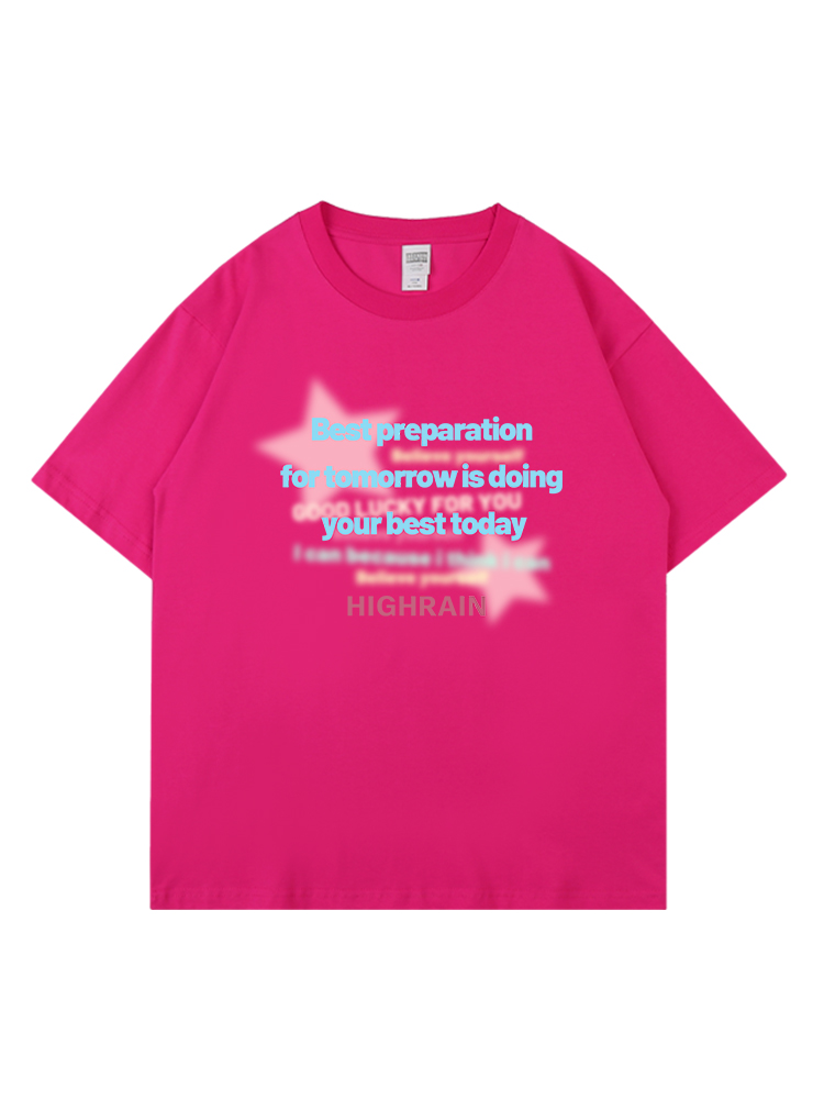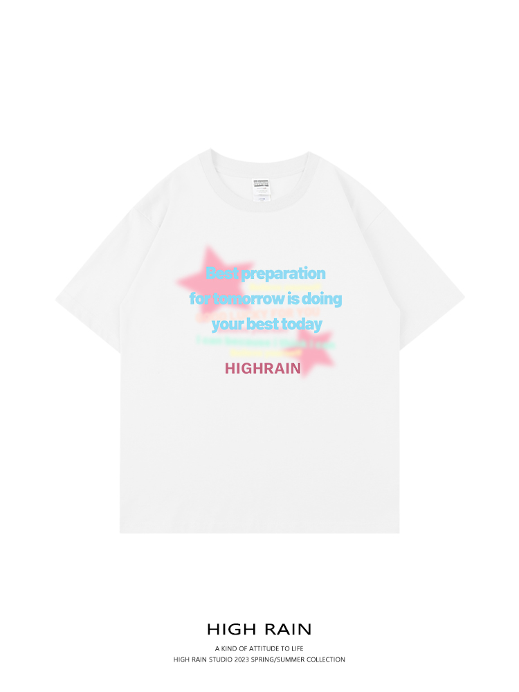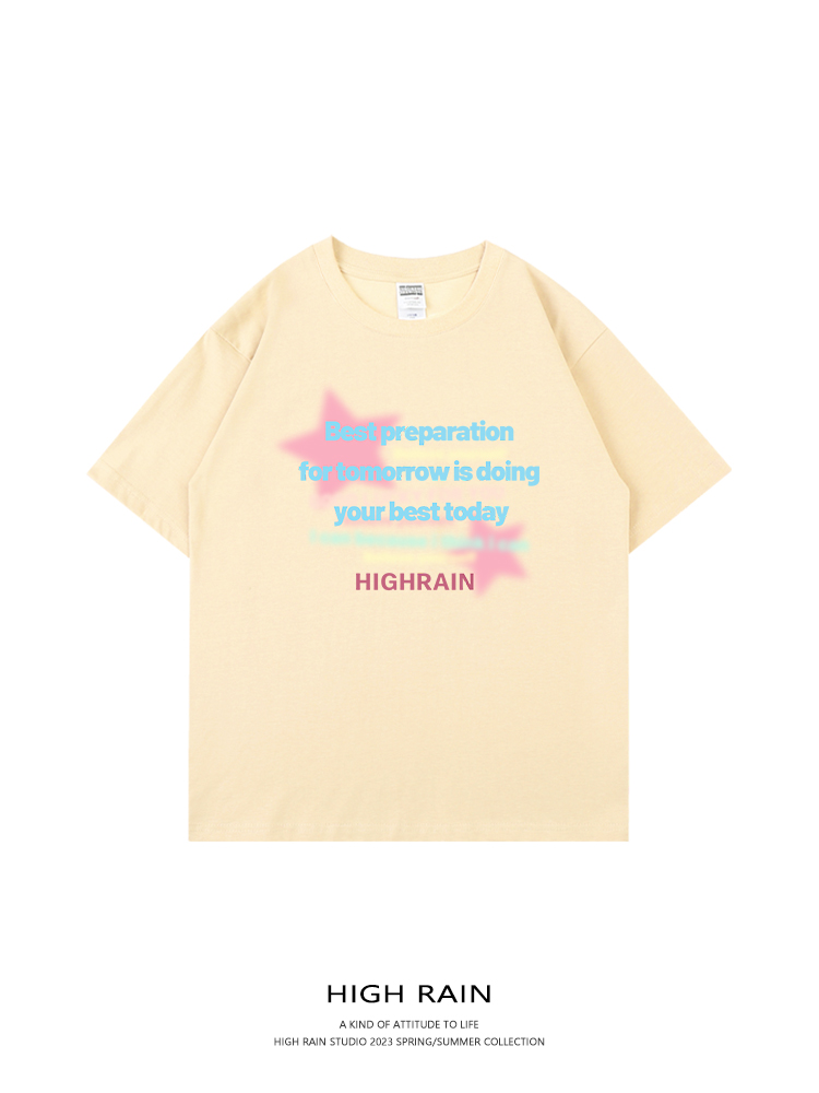high rain 2023星星直噴落肩短袖男女潮牌休閒bf風純棉情侶上衣