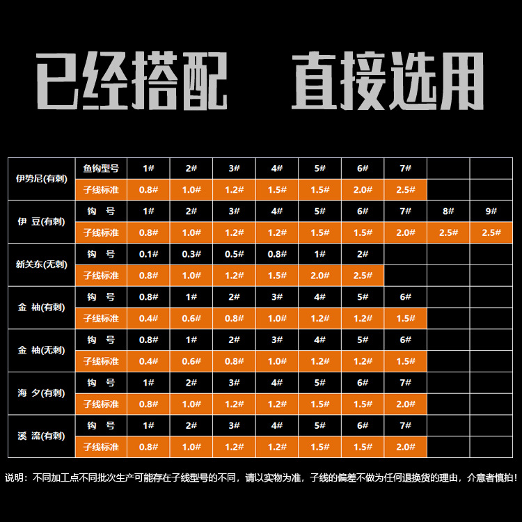 说明:不同加工点不同批次生产可能存在子线线号的不同,请依收到的实物为准.子线的偏差不作为任何退换货的理由,介意者慎拍!