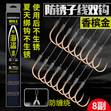 海盗防缠成品手工绑好子线双钩伊势尼伊豆海夕金袖有无倒刺鱼钩