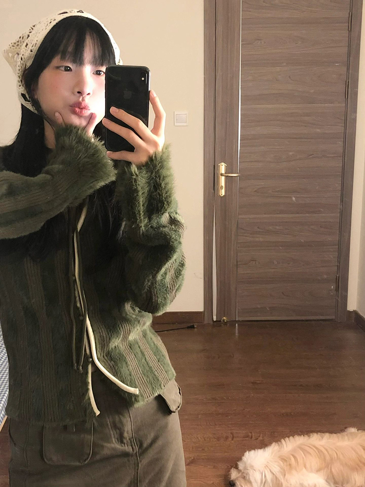 港風復古綁帶毛衣女秋季寬鬆顯瘦長袖開衫上衣小眾設計感休閒外套