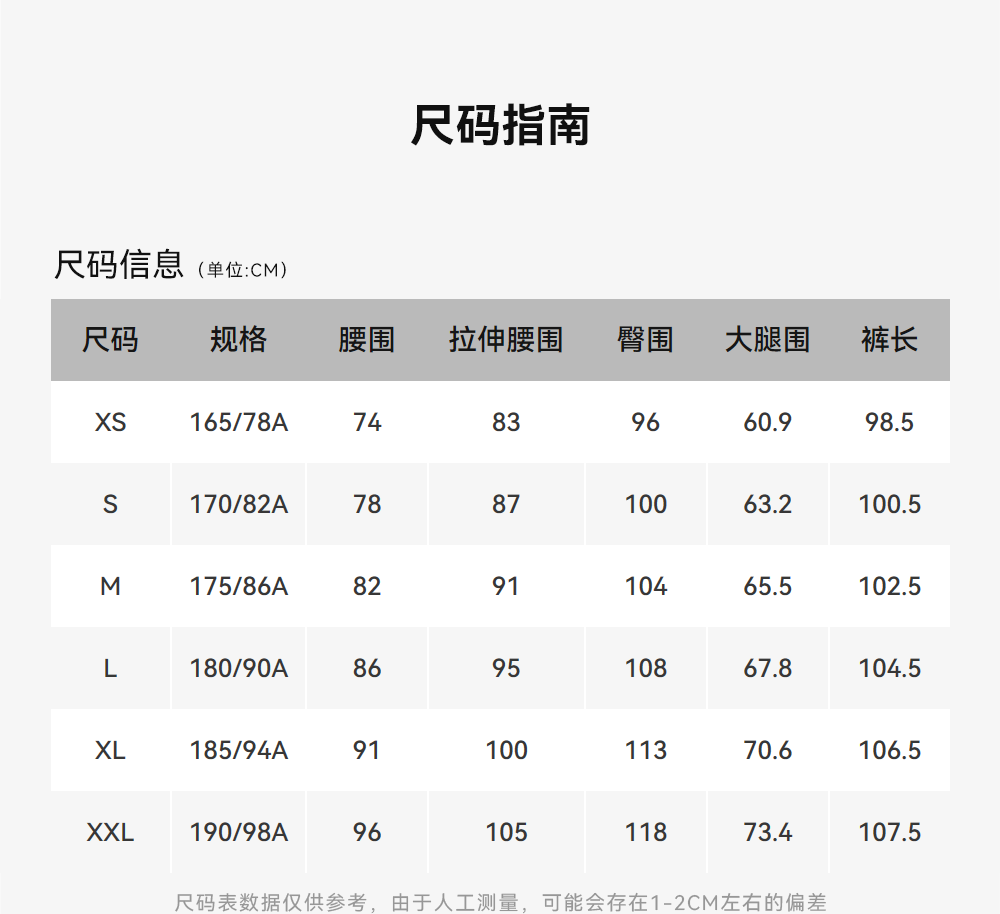 尺碼 XS S M L XL XXL
