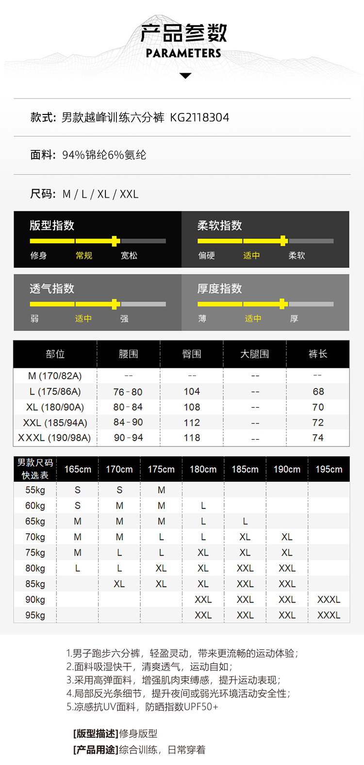 21夏凱樂石速乾五分褲男款越峯訓練六分褲跑步運動彈力透氣KG118304