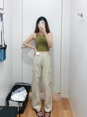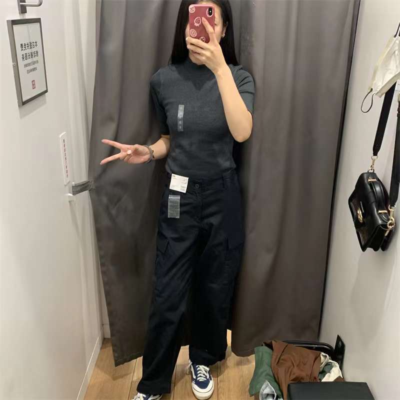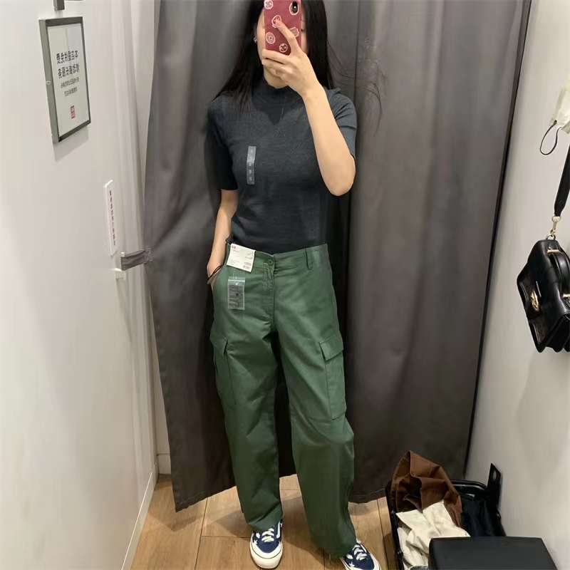 試衣間 2023秋季女裝寬腿直筒工裝褲寬鬆休閒褲長褲闊腿褲Y461643