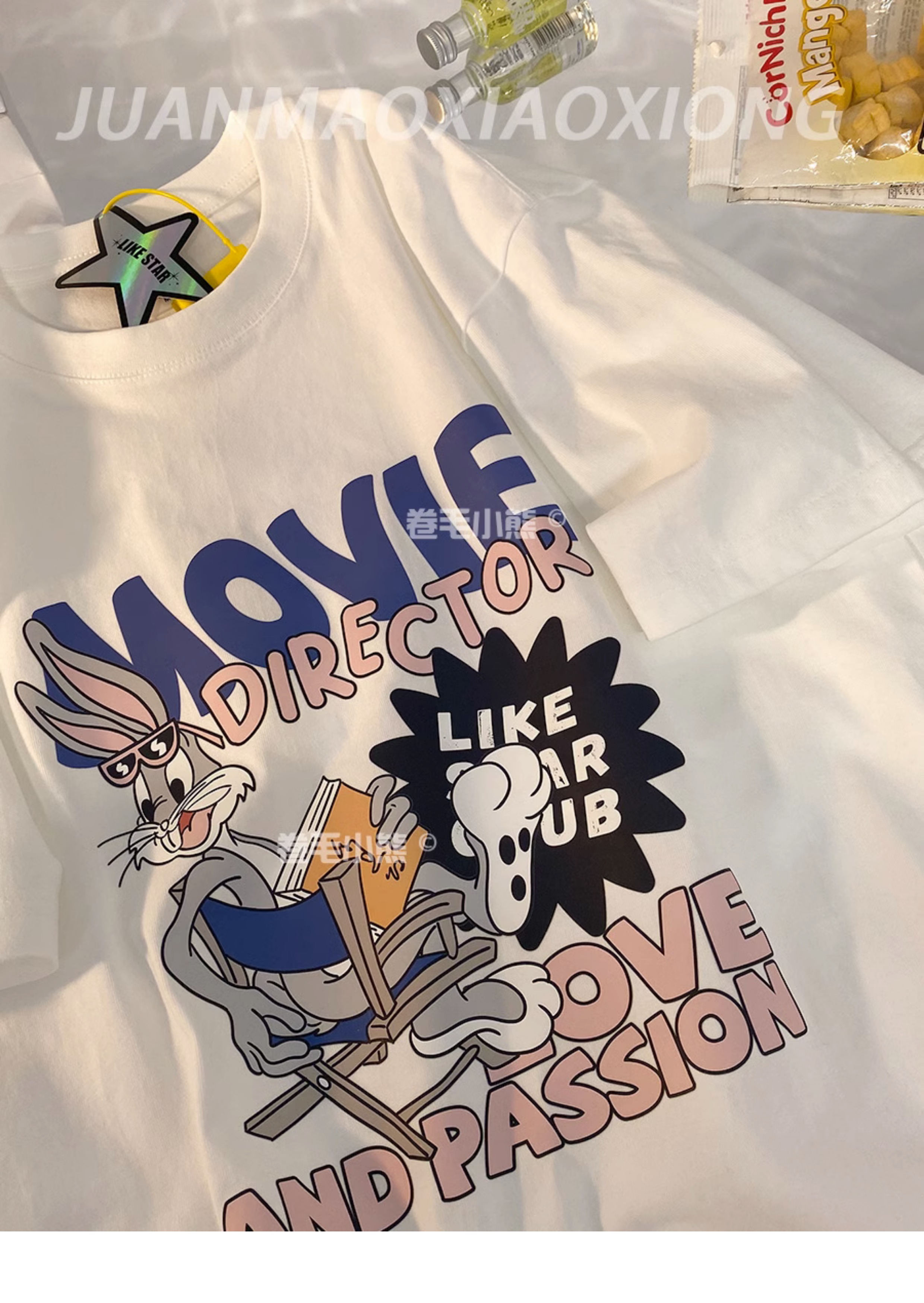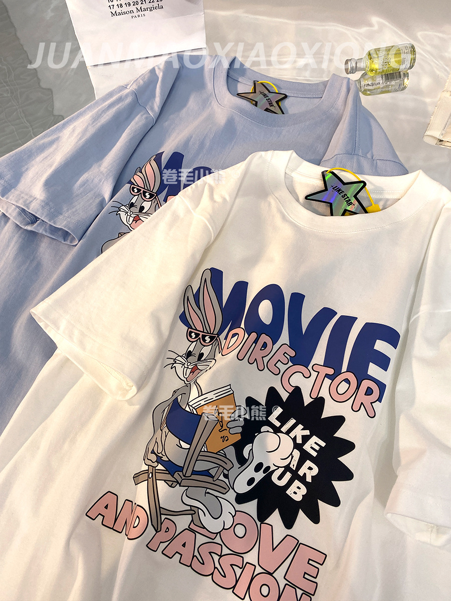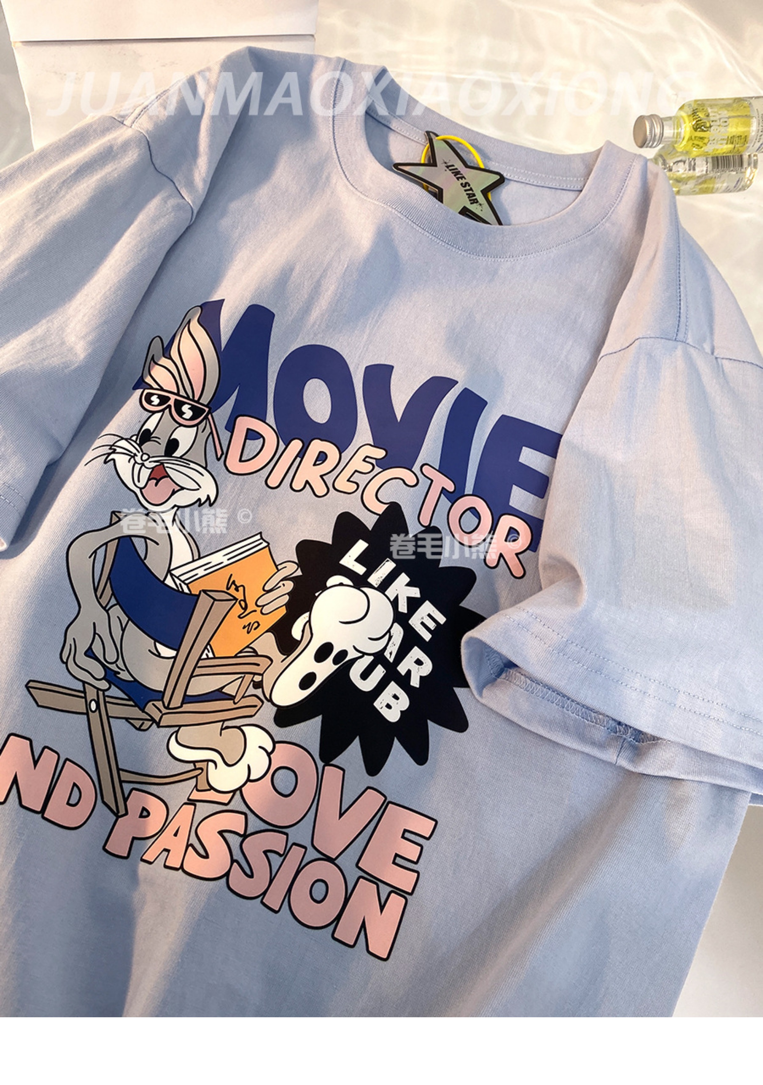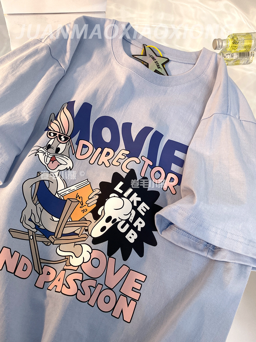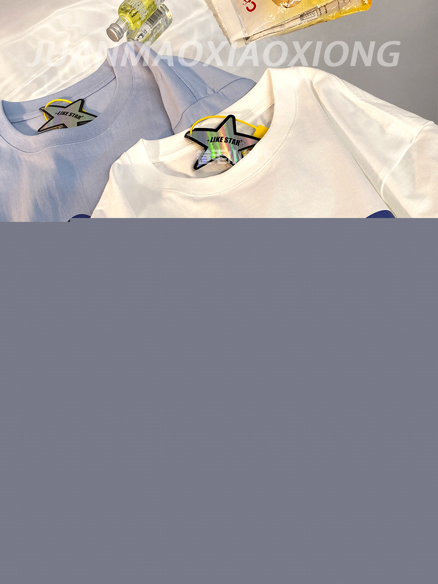 太陽眼鏡tu~捲毛小熊重磅純棉短袖t恤女2023年新款寬鬆韓版美式上衣