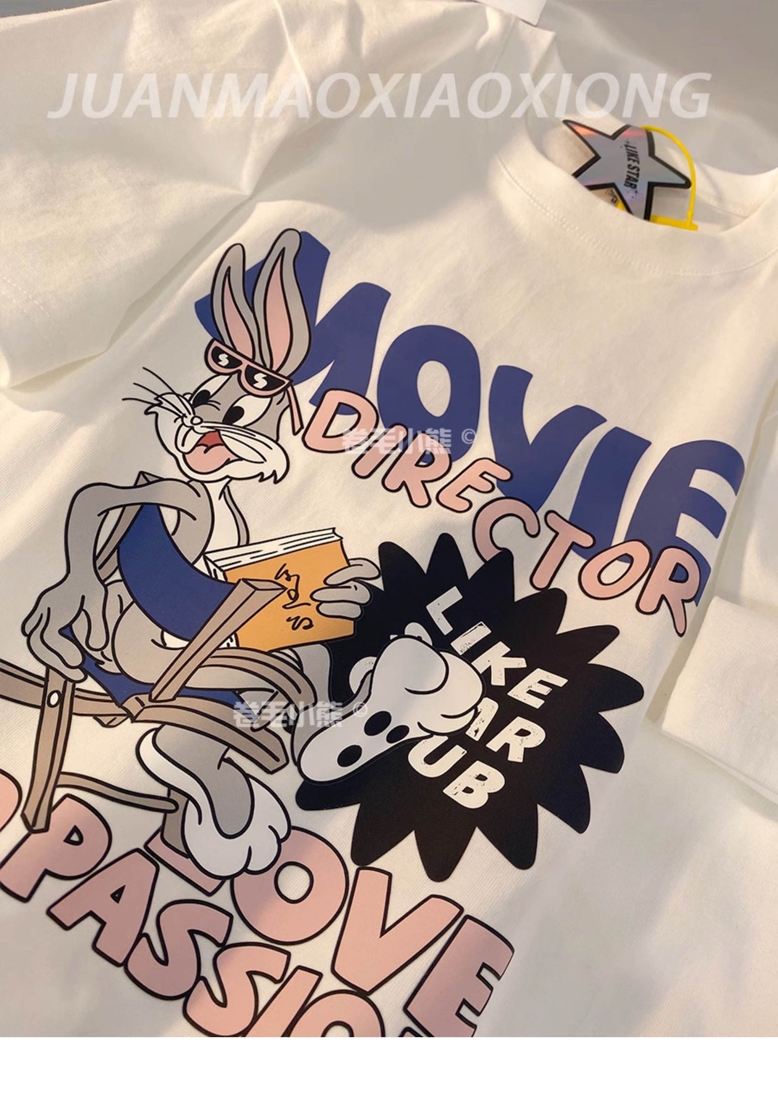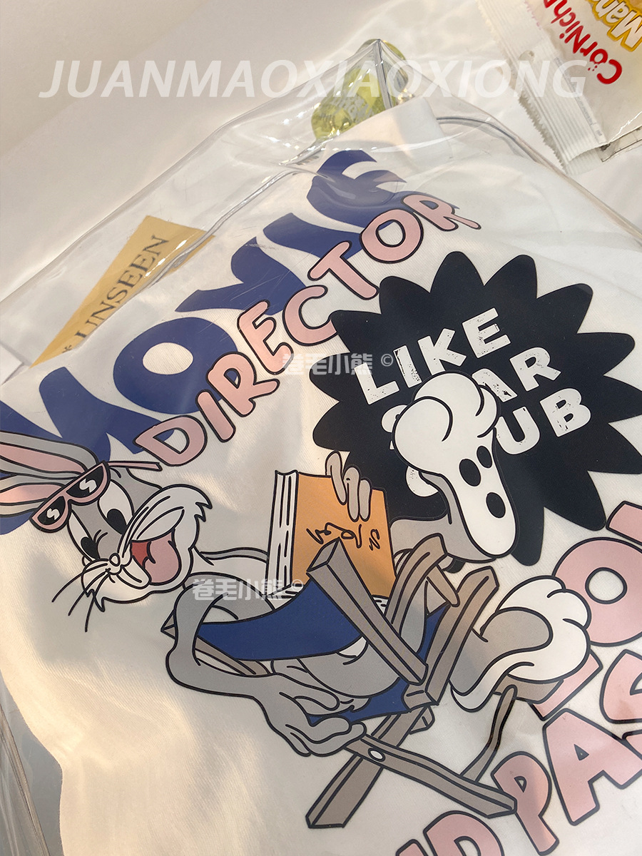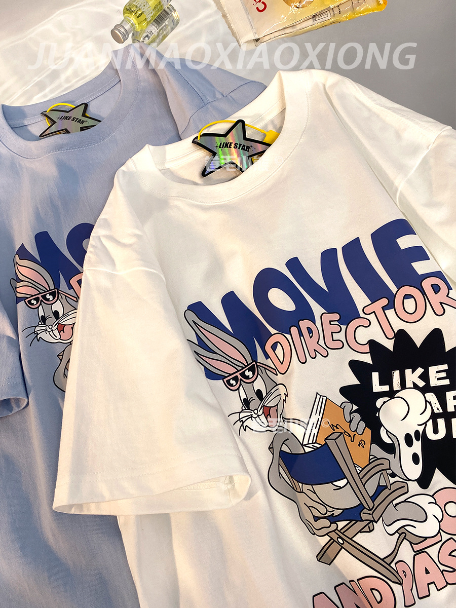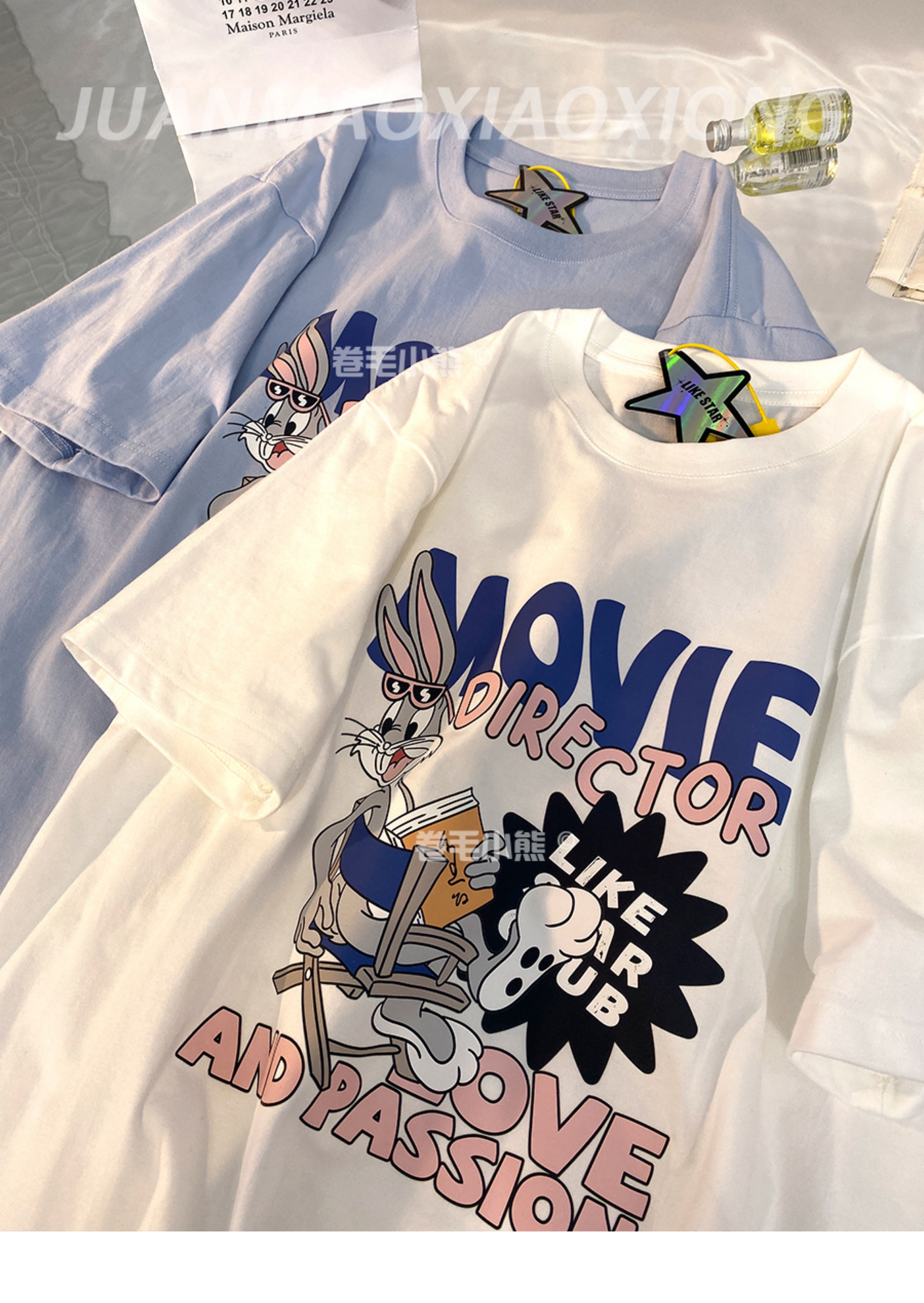 太陽眼鏡tu~捲毛小熊重磅純棉短袖t恤女2023年新款寬鬆韓版美式上衣