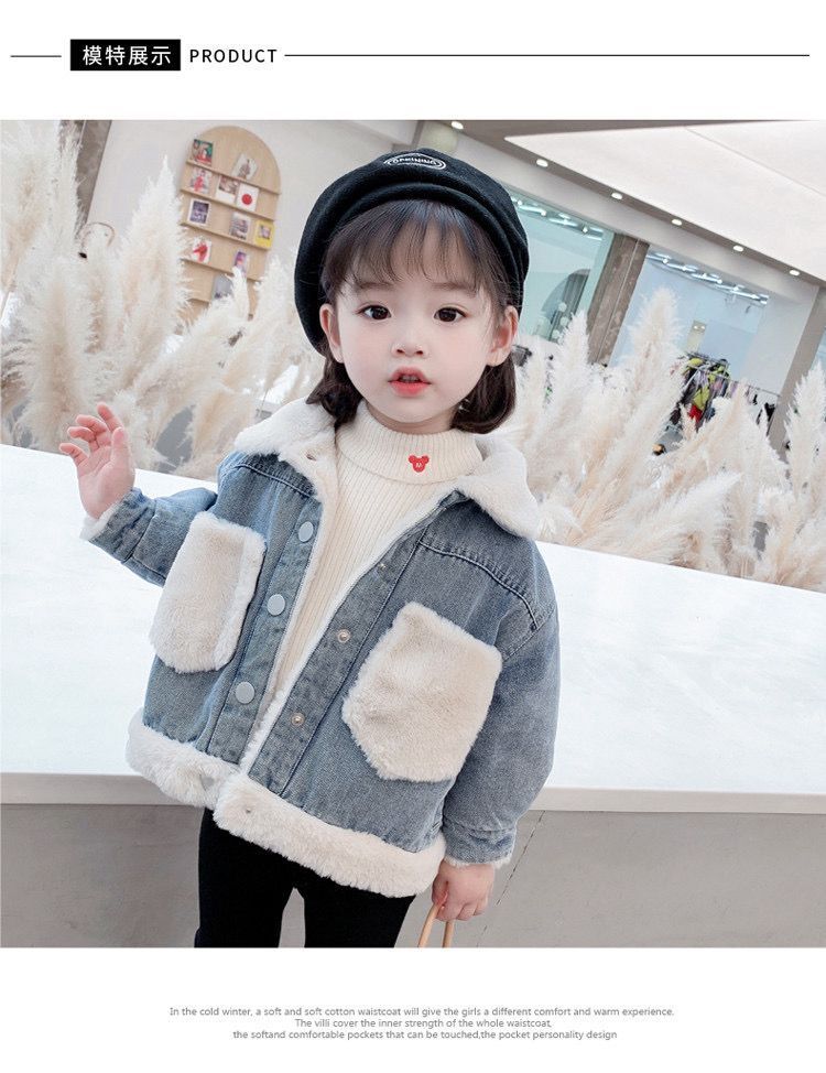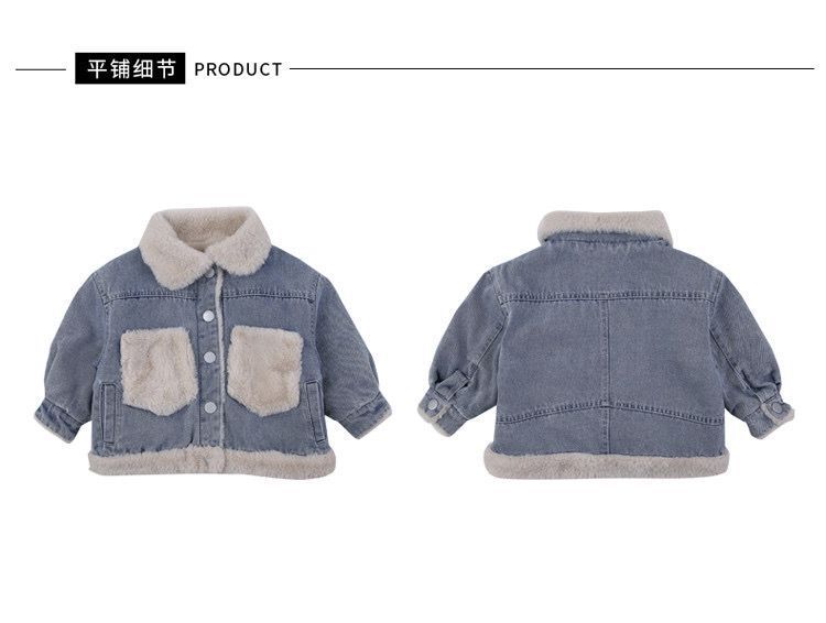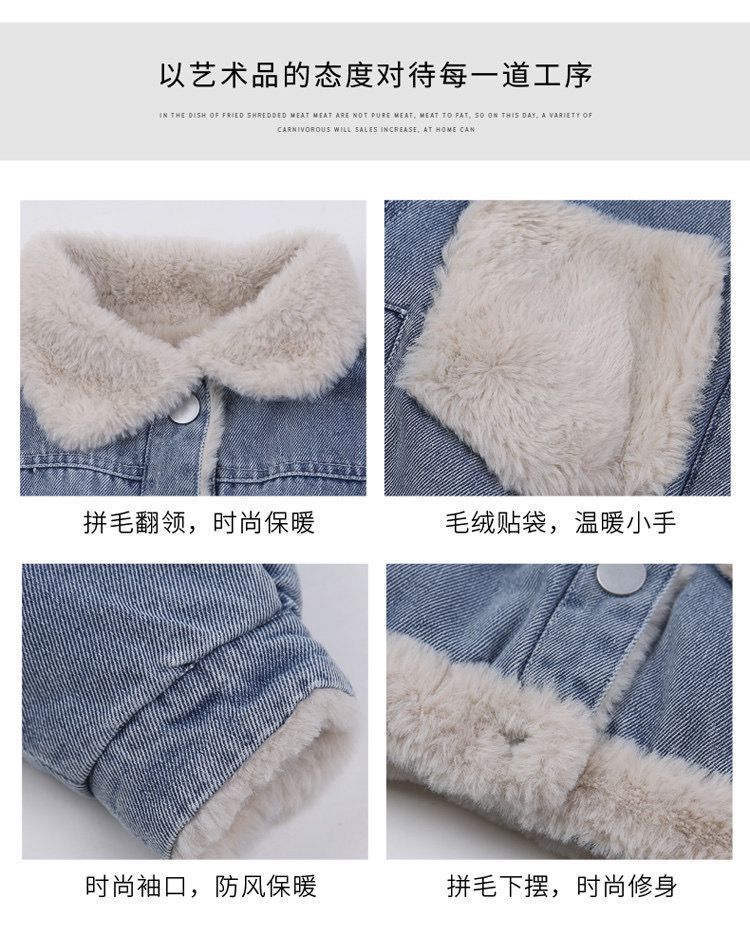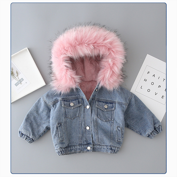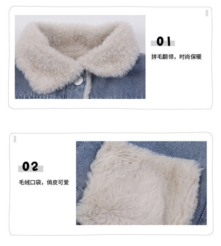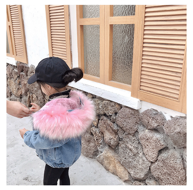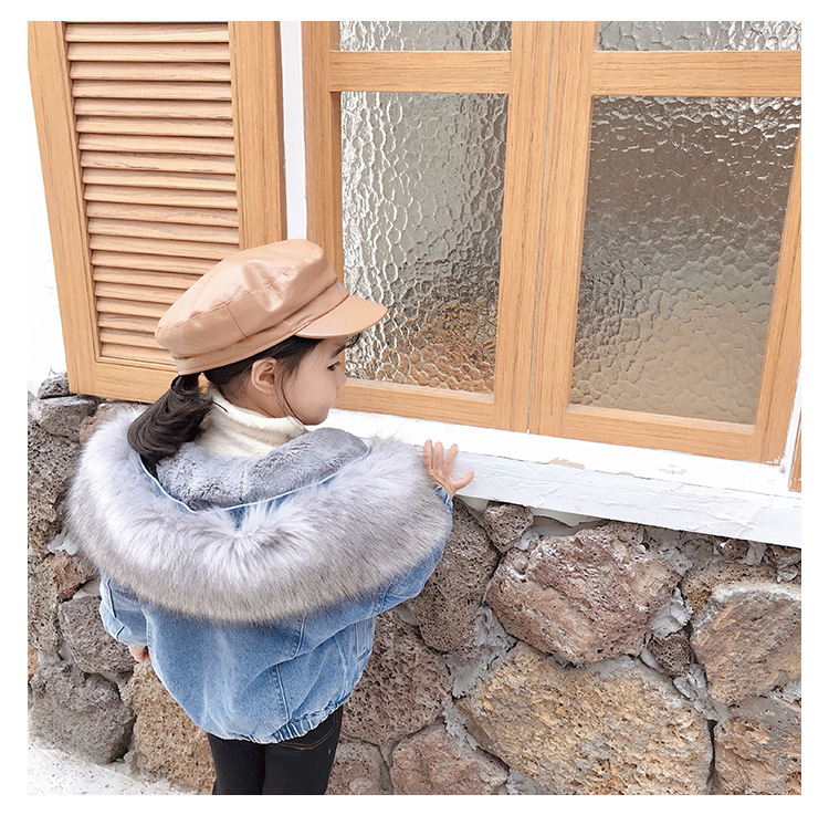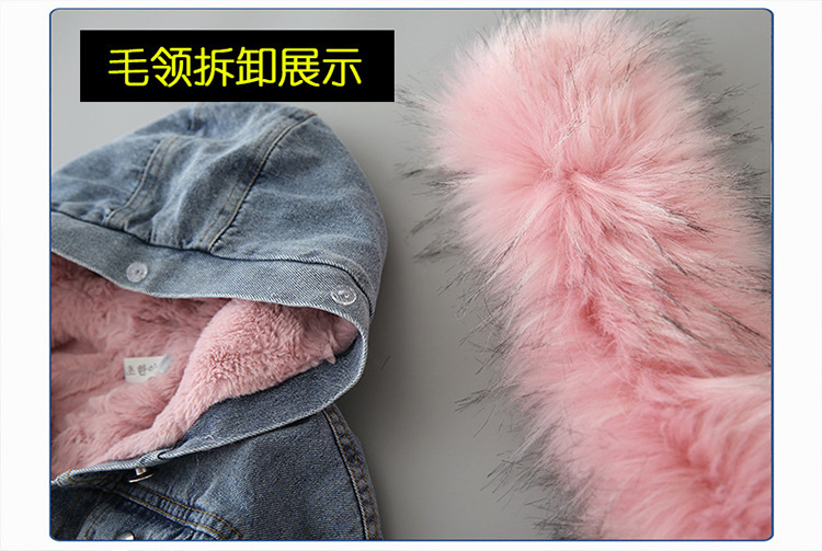 冬季新款女童外套韩版中小童儿童加厚加绒牛仔外套男宝大毛领棉服
