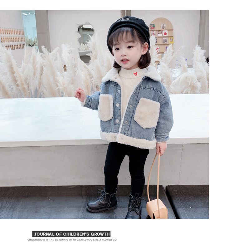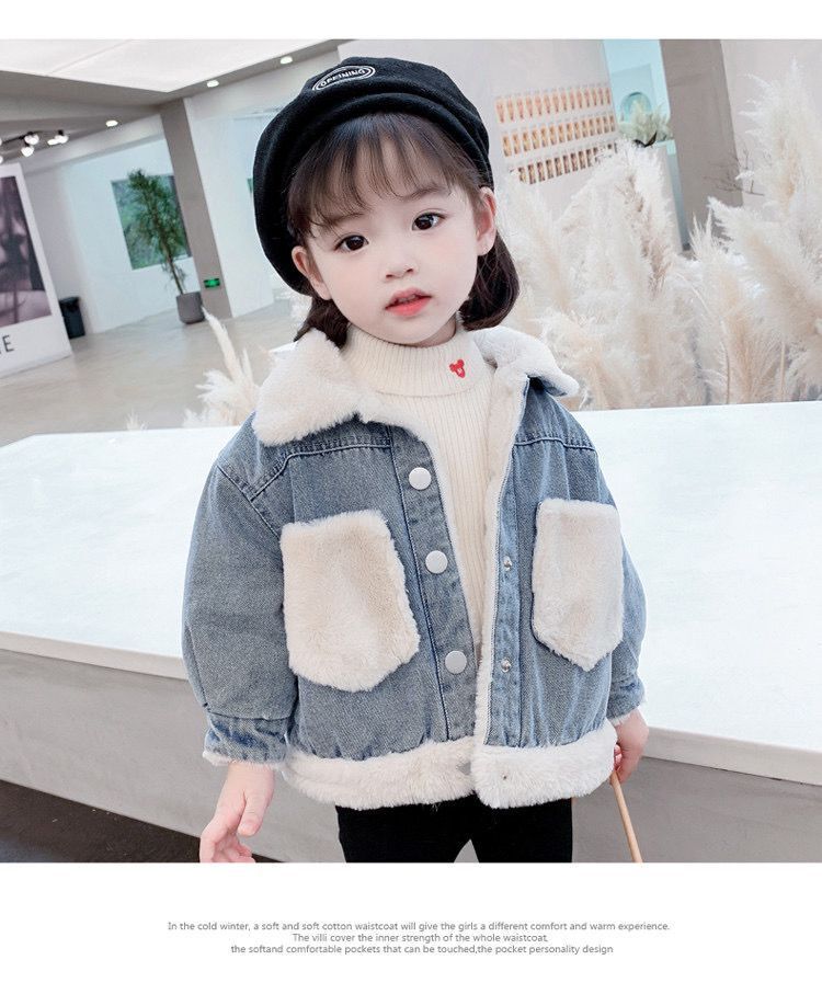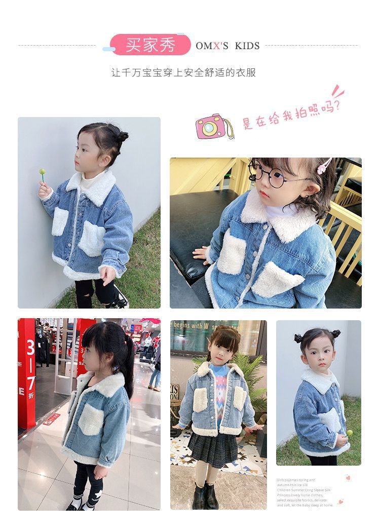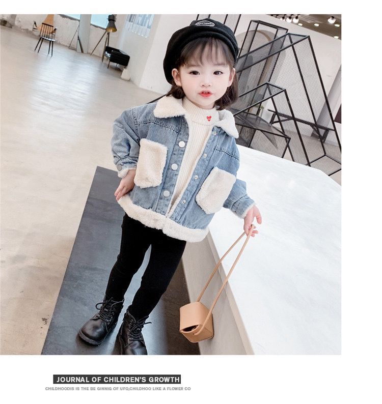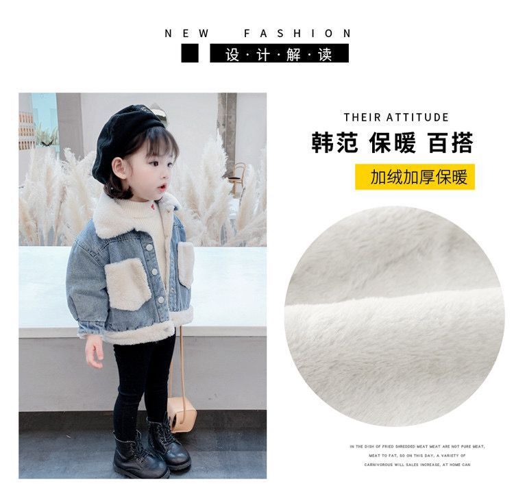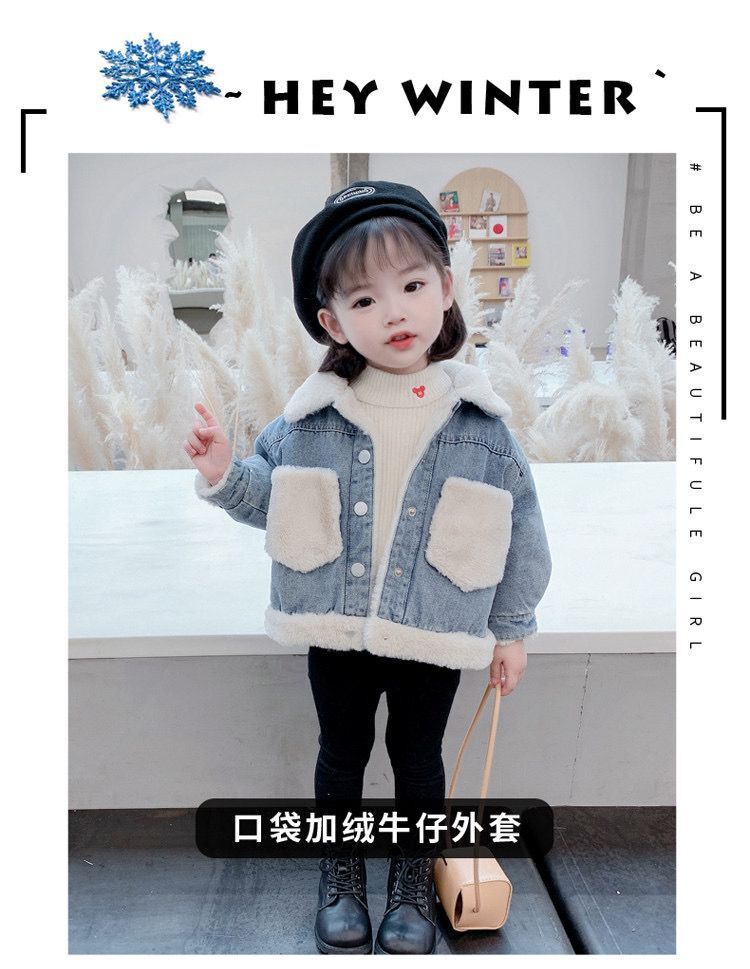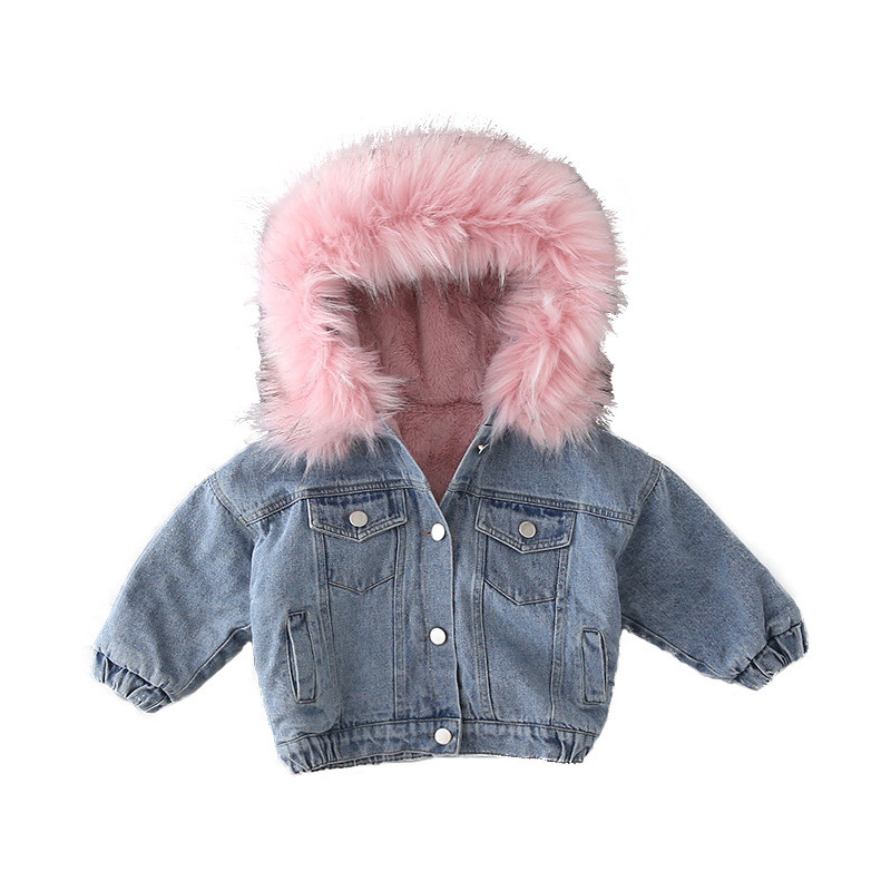 冬季新款女童外套韩版中小童儿童加厚加绒牛仔外套男宝大毛领棉服