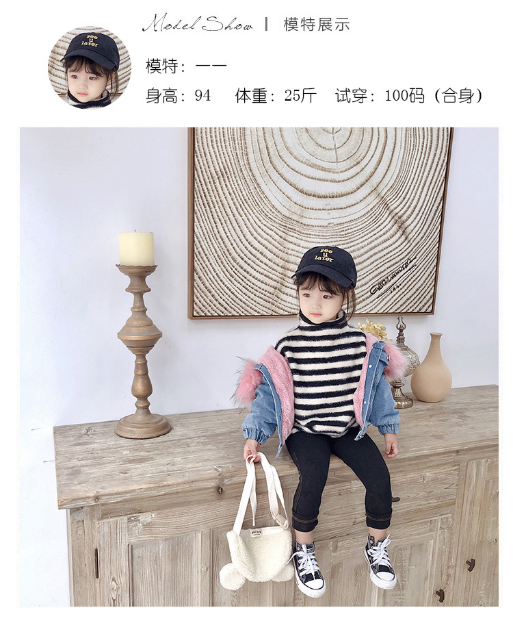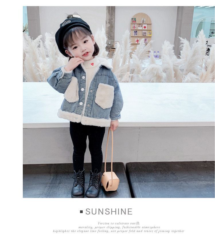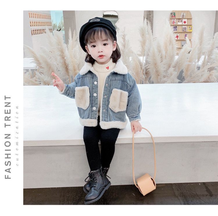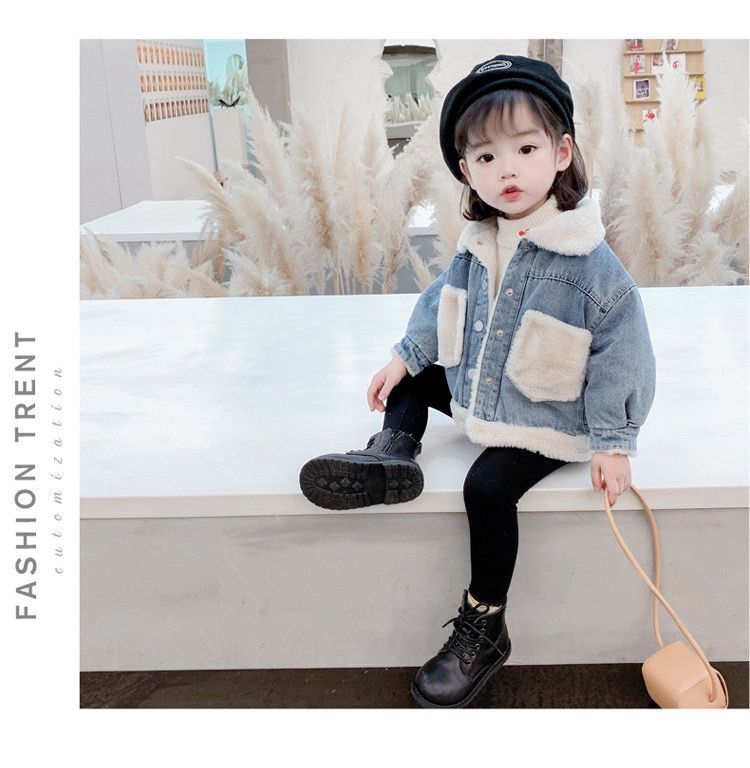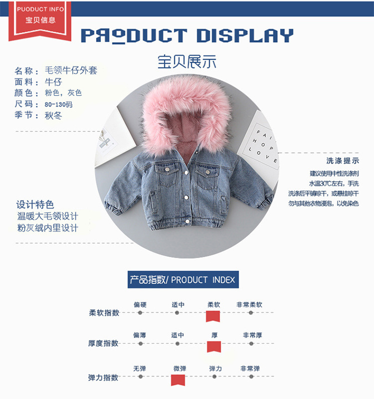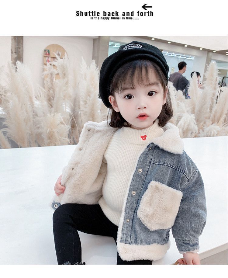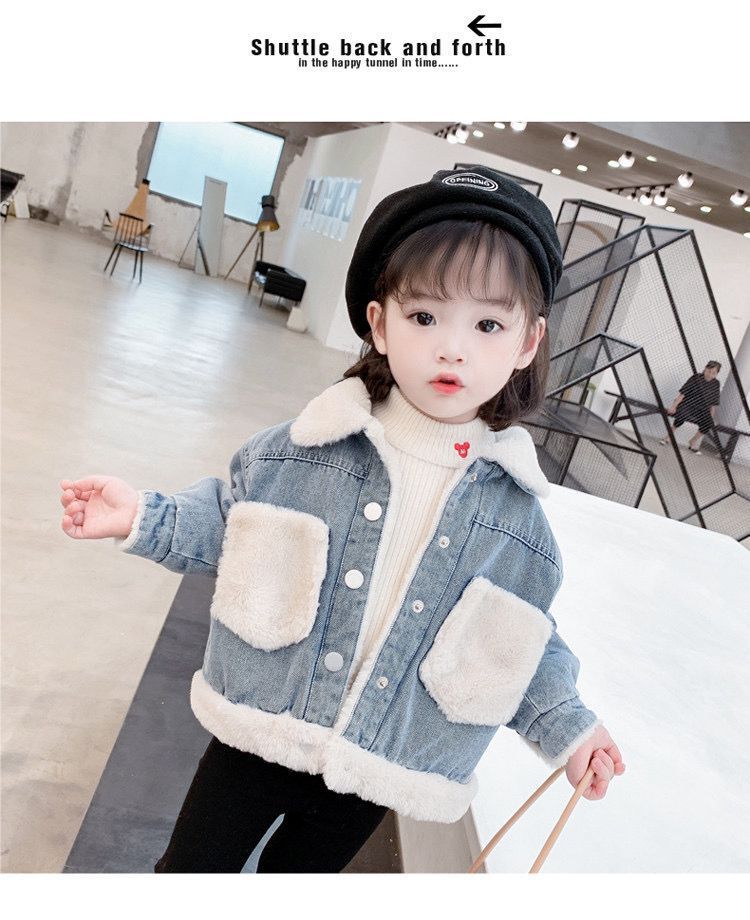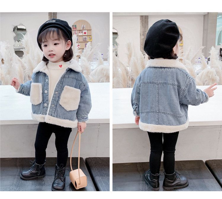 冬季新款女童外套韩版中小童儿童加厚加绒牛仔外套男宝大毛领棉服