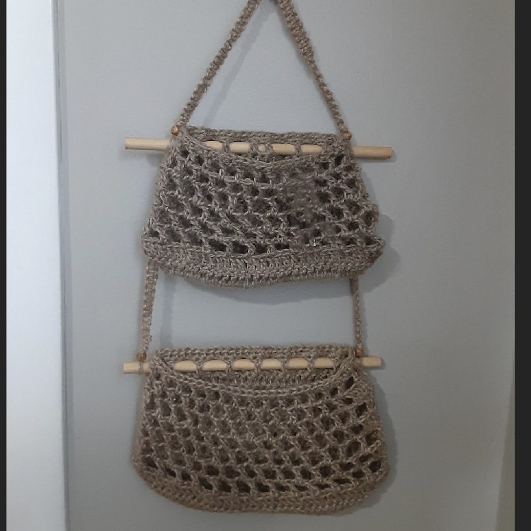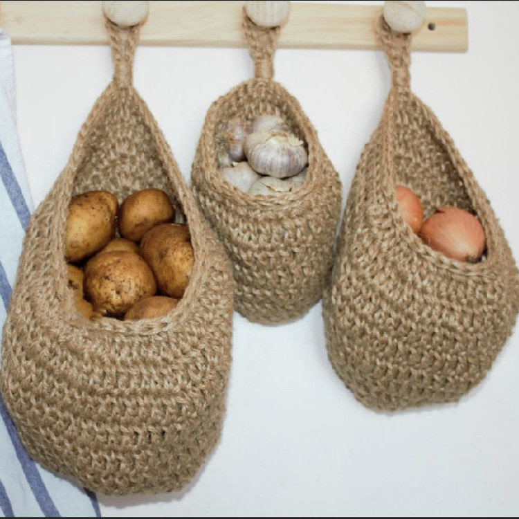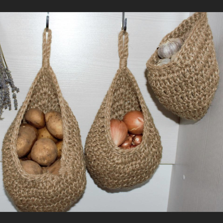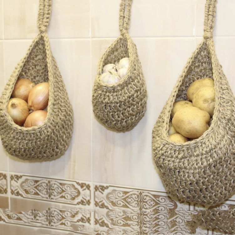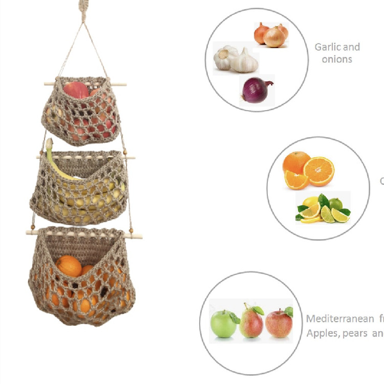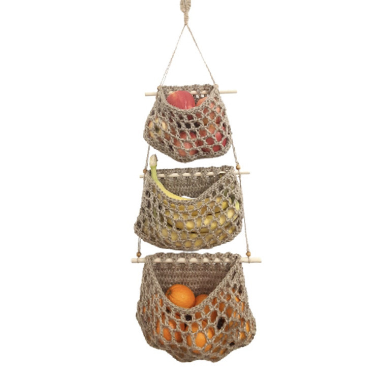 新款北欧ins 麻绳纯手工钩织收纳筐三层厨房客厅收纳墙壁置物篮