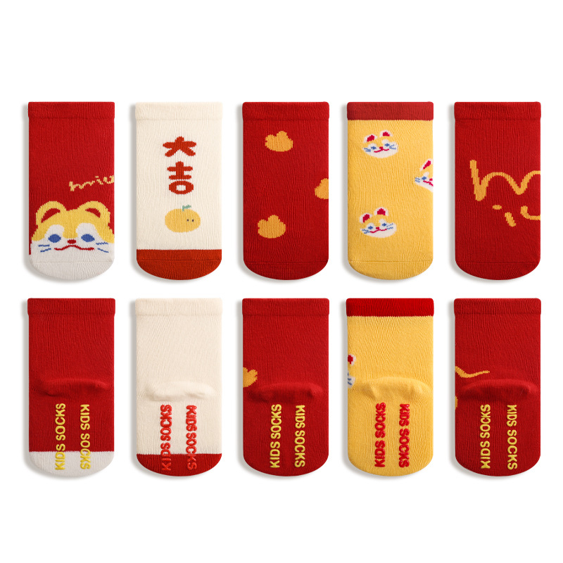 2023秋冬新品新生儿宝宝袜子无骨周岁满月新年男女童婴儿大红袜子