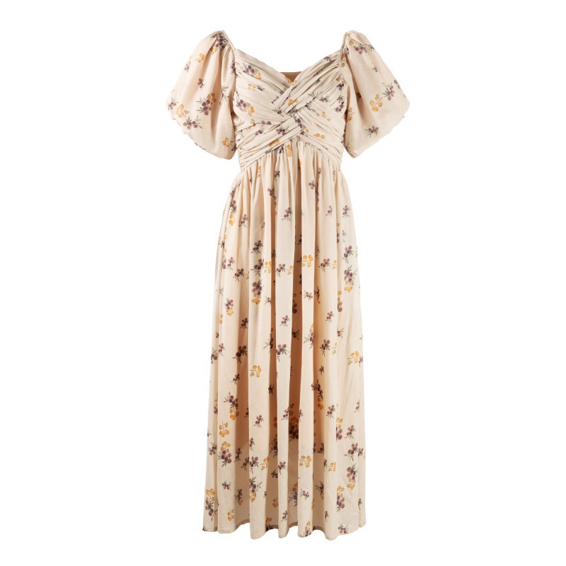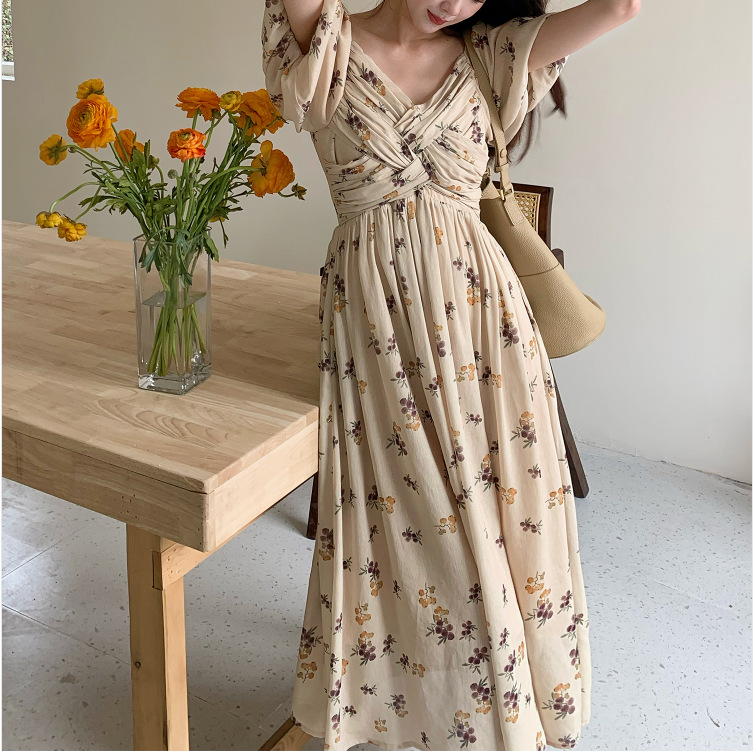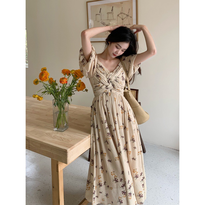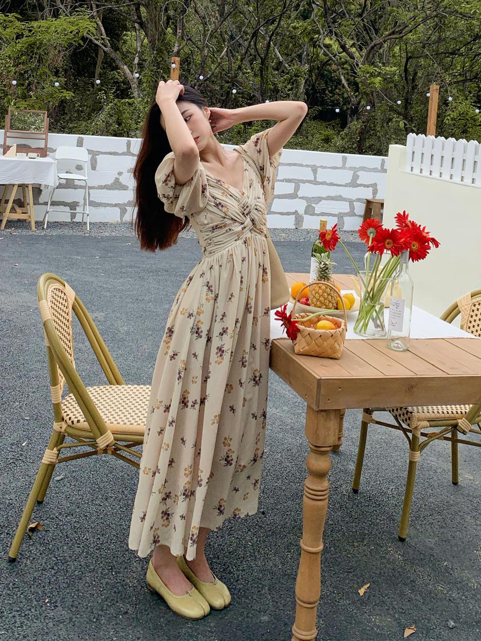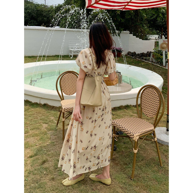 法式设计感复古泡泡袖连衣裙女夏2023新款气质韩版碎花长裙