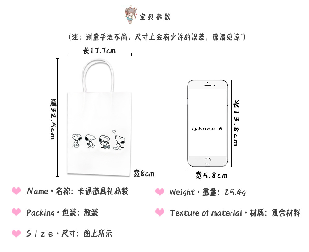 韩风ins网红小狗白色牛皮纸手提袋卡通可爱拍照道具礼品袋手提袋