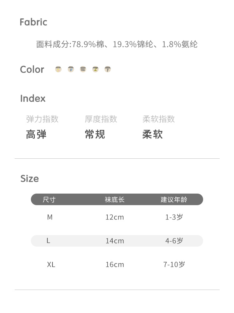 童袜尺码 M码1-3岁,L码4-6岁,XL码7-10岁