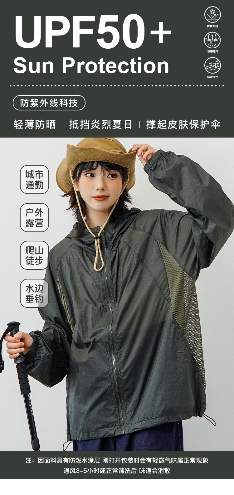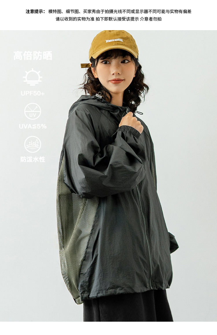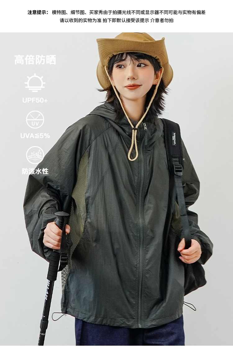 魚不渴自制戶外工裝防曬衣女小個子薄款透氣網眼設計抗UV外套