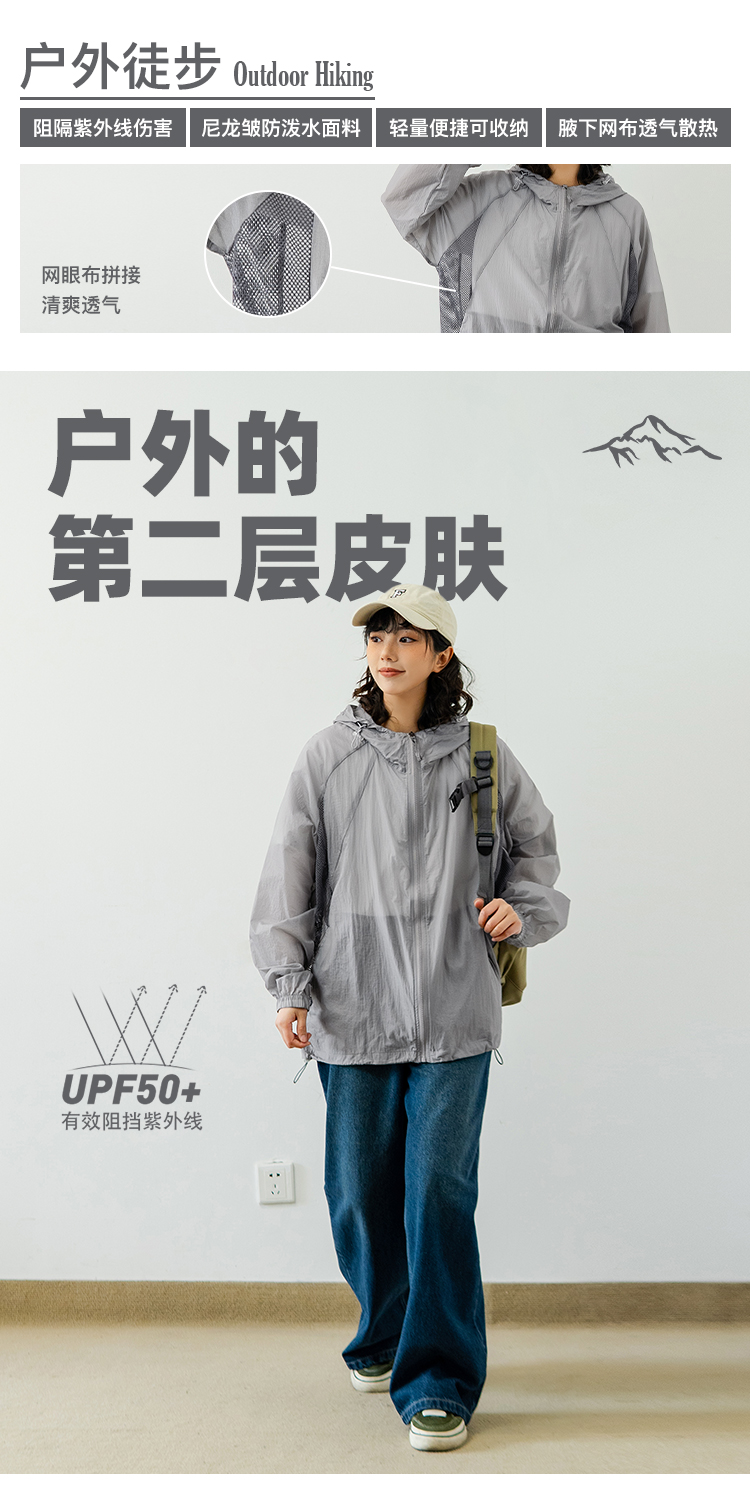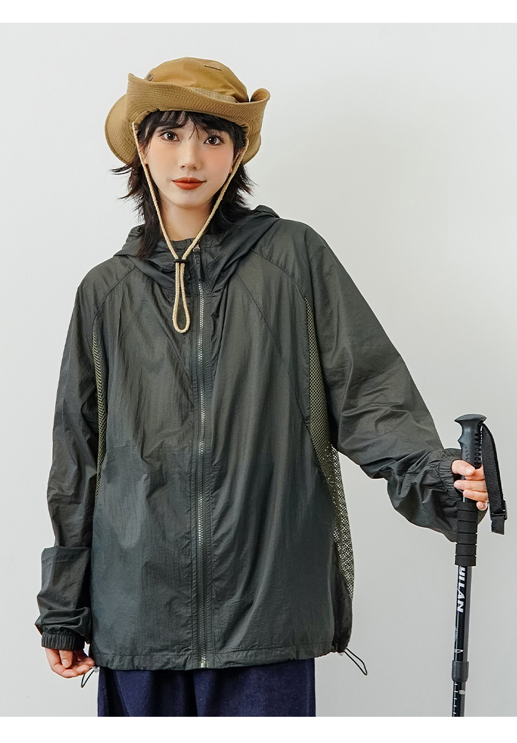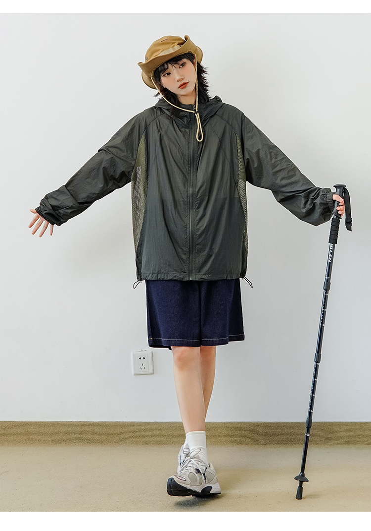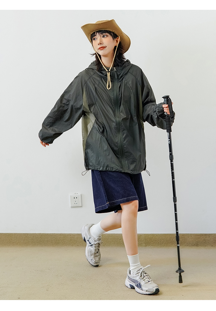 魚不渴自制戶外工裝防曬衣女小個子薄款透氣網眼設計抗UV外套