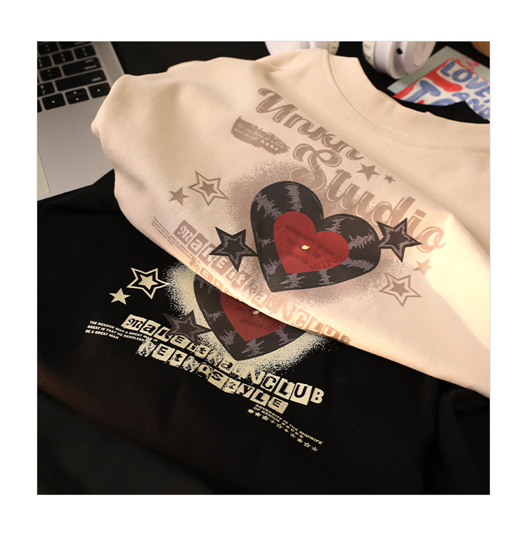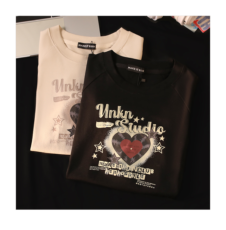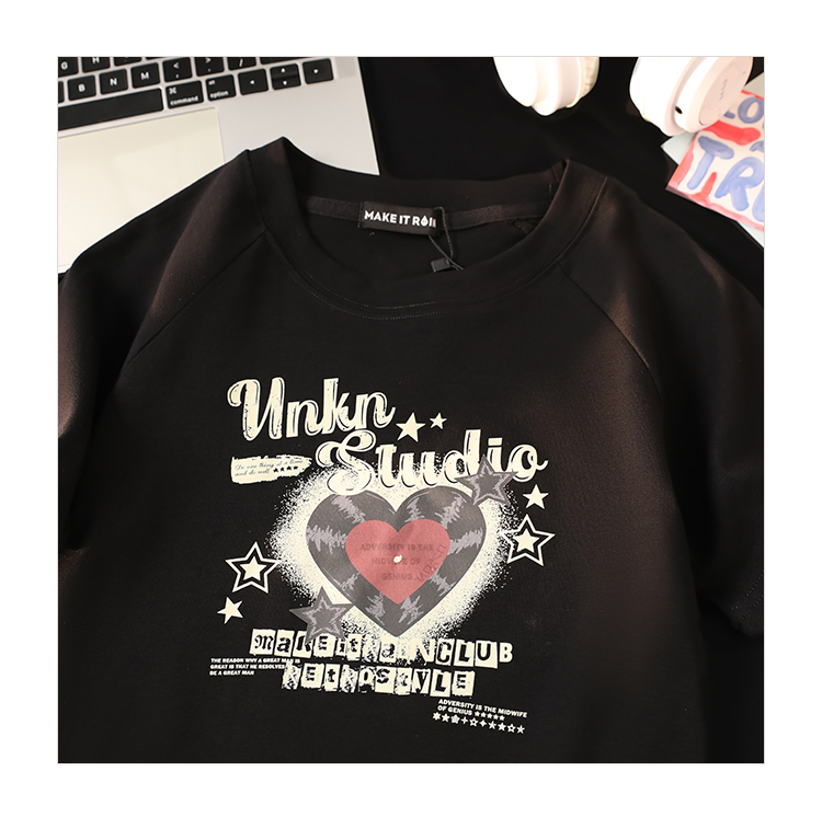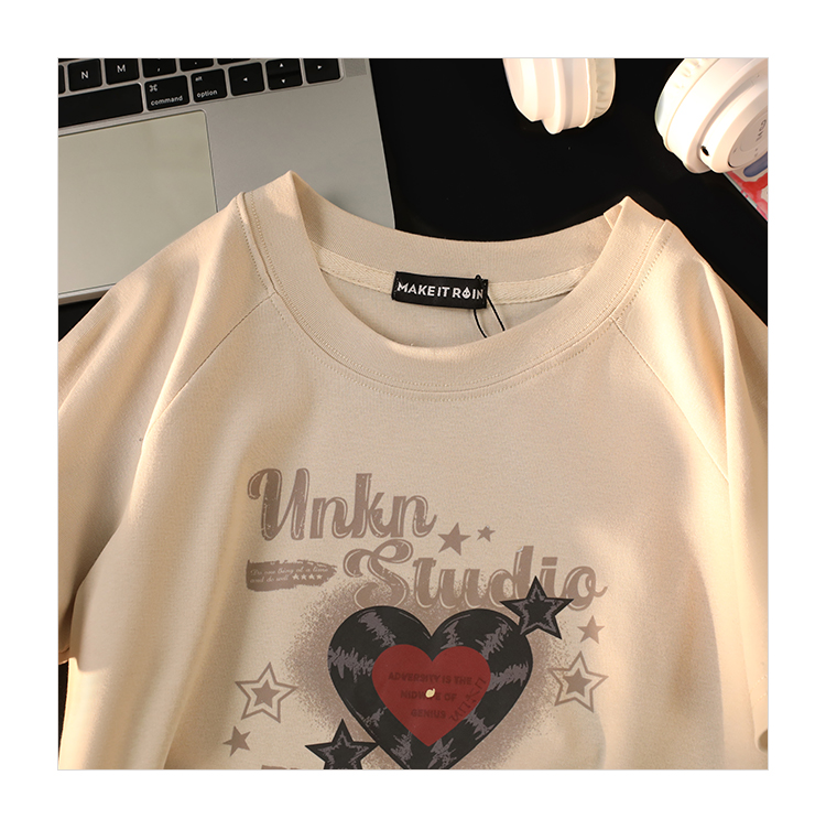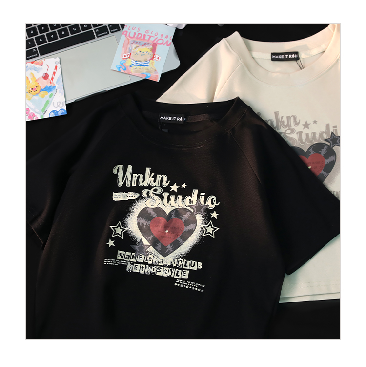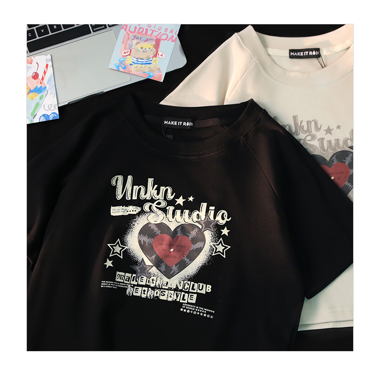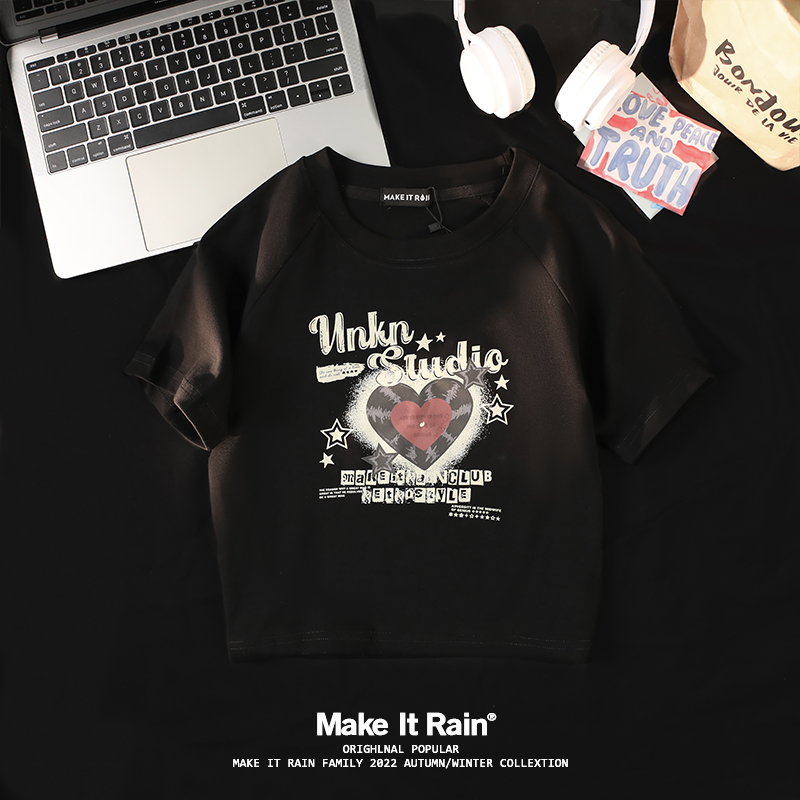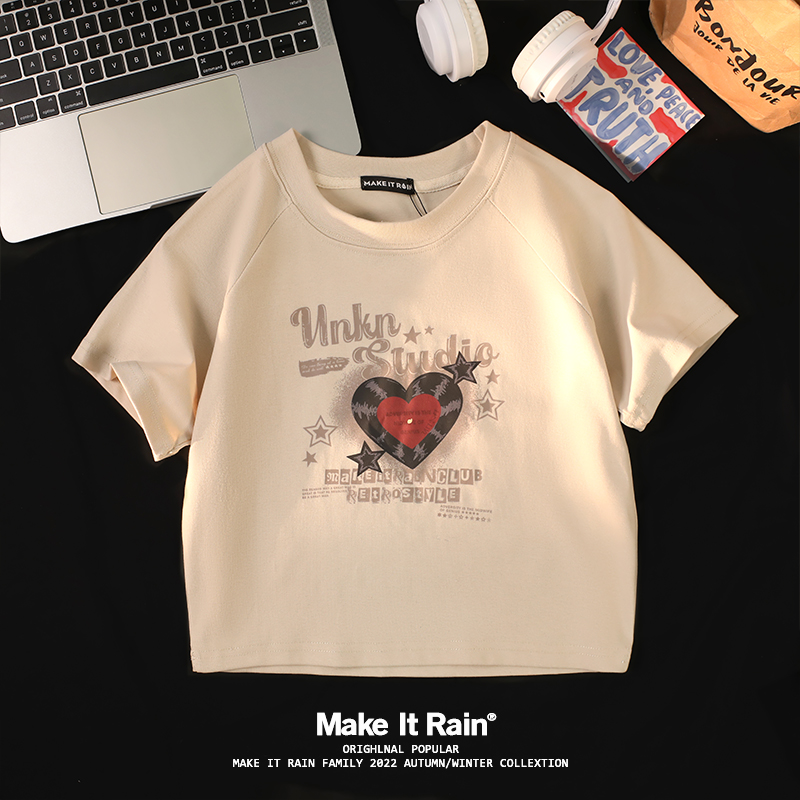 小個子辣妹短款上衣女夏新款設計感愛心印花修身顯瘦純棉短袖t恤
