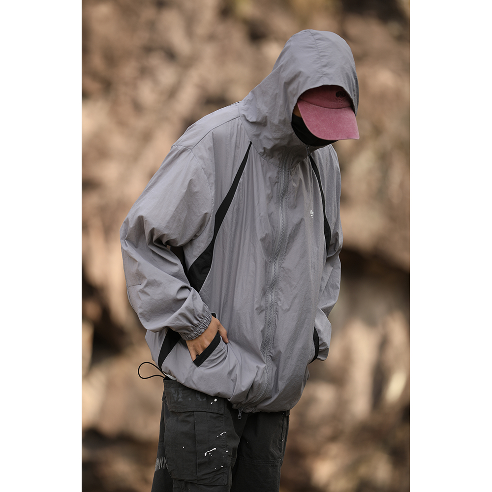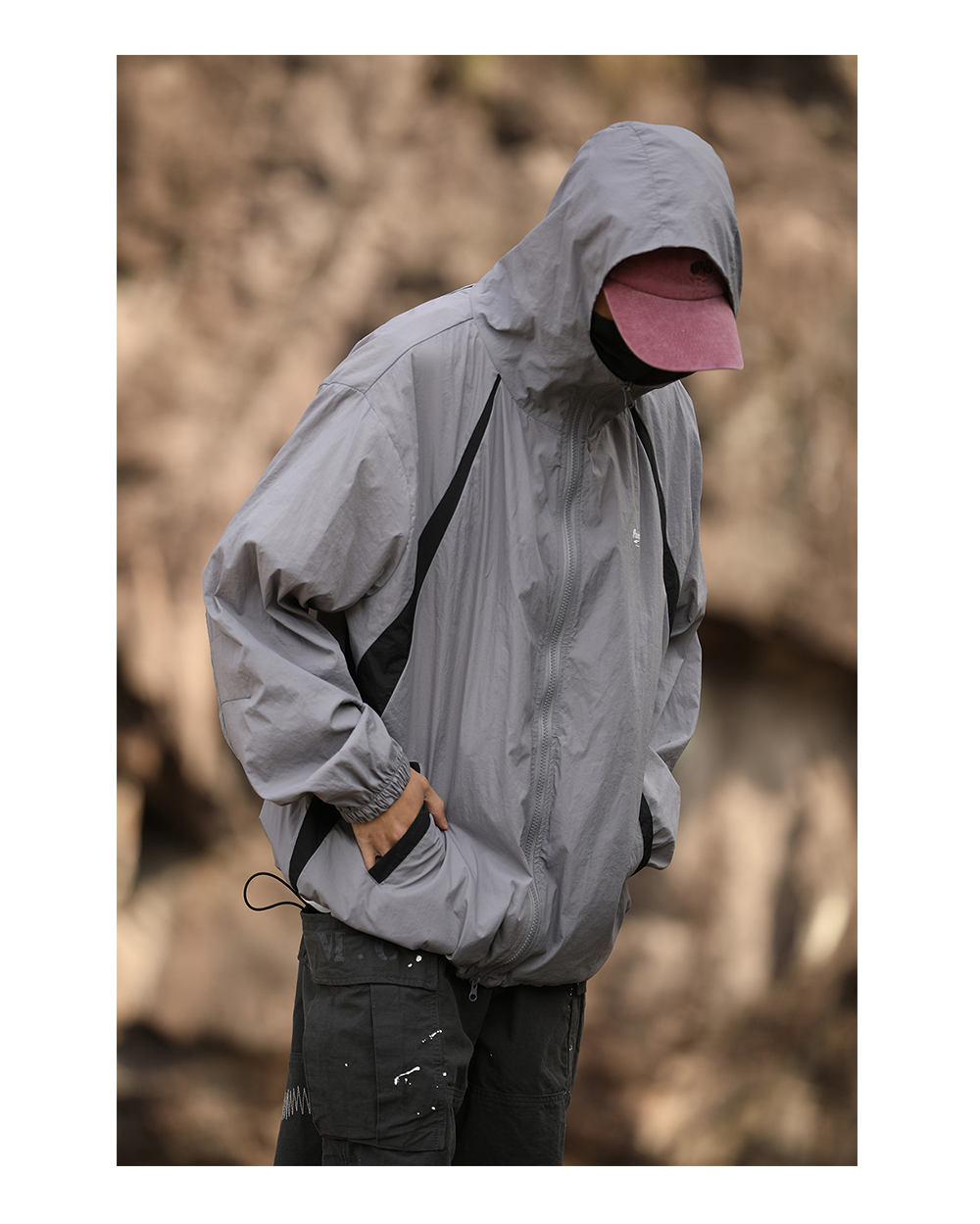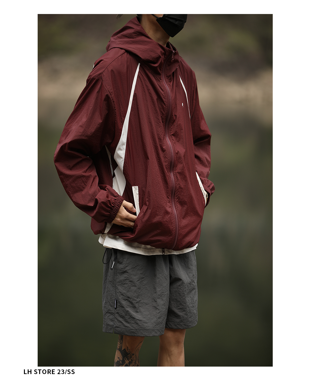 LH store夏季防曬衣服男女抗UV日系撞色拼接輕薄衝鋒夾克外套