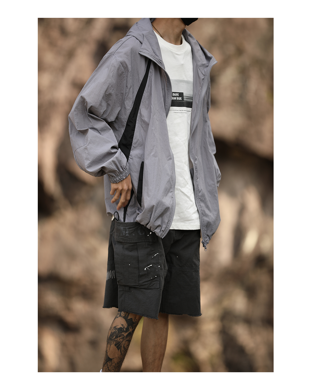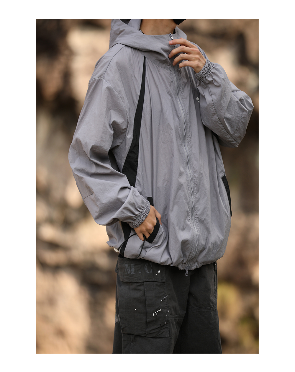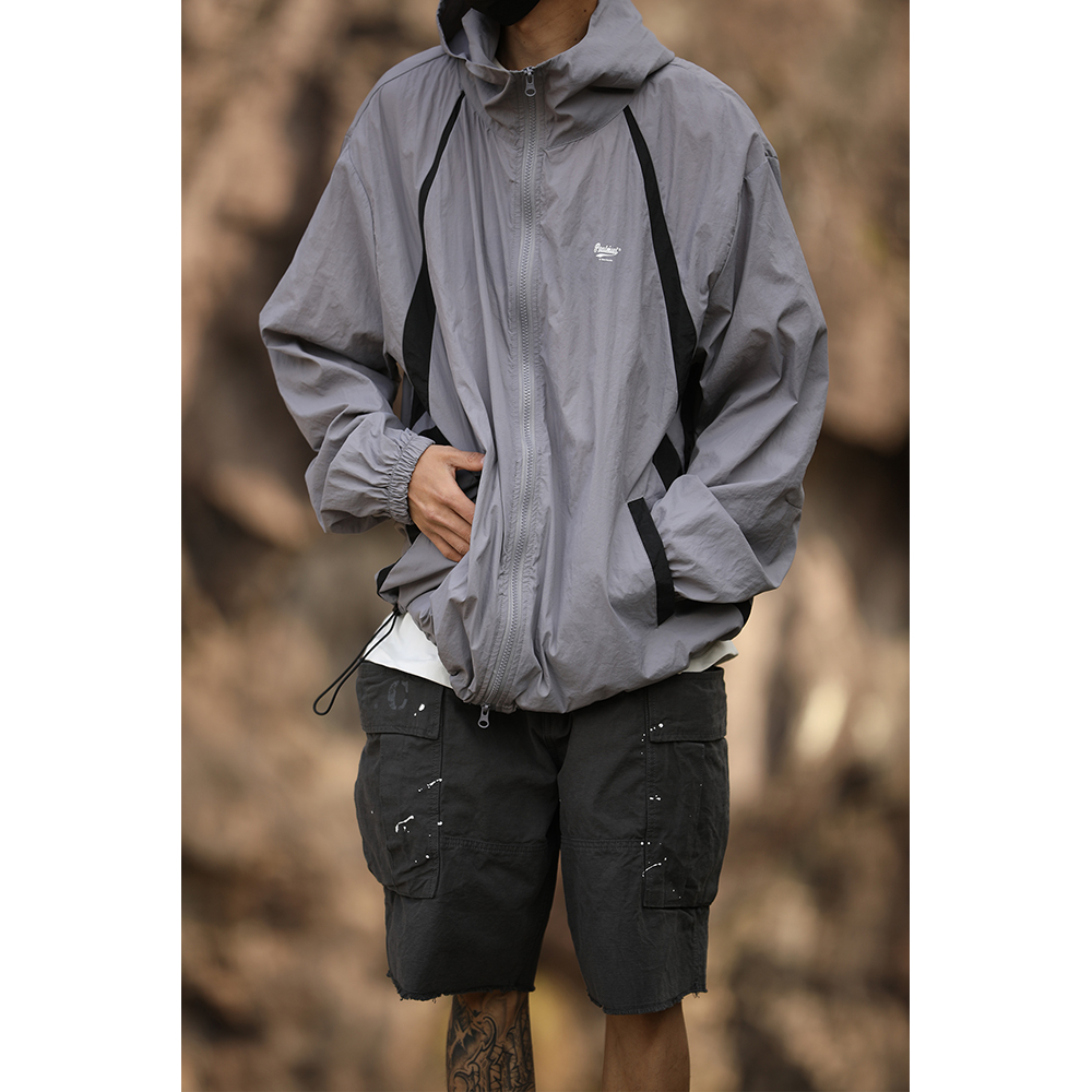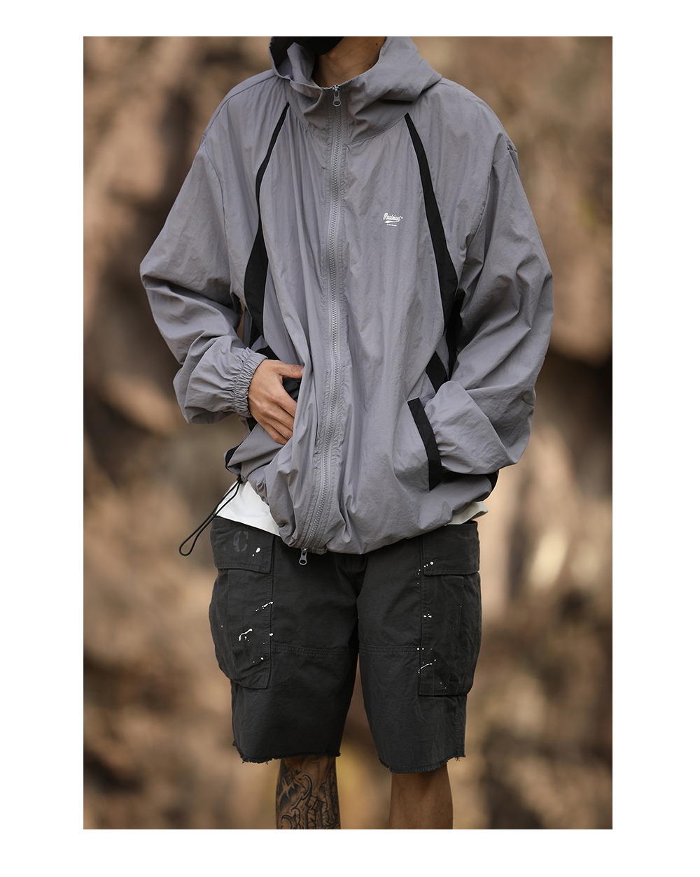 LH store夏季防曬衣服男女抗UV日系撞色拼接輕薄衝鋒夾克外套