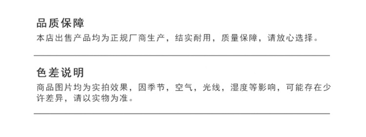 2,多色、多样式的产品默认为随机混发。公司会尽力满足客户在订单备注中指定的产品颜色和款式。单个别订单因仓库库存颜色或者式样不能满足客户要求,我们不接受因此引起的退货。