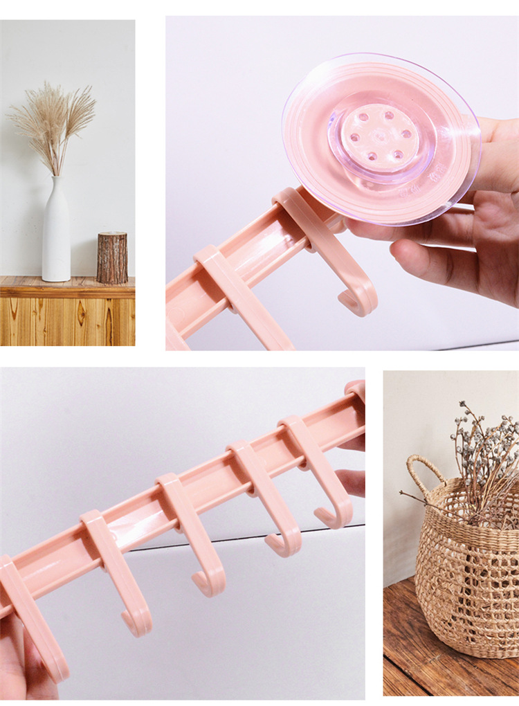 锁扣式吸盘6连钩 厨房卫生间浴室墙壁排钩免钉无痕多用六连挂钩