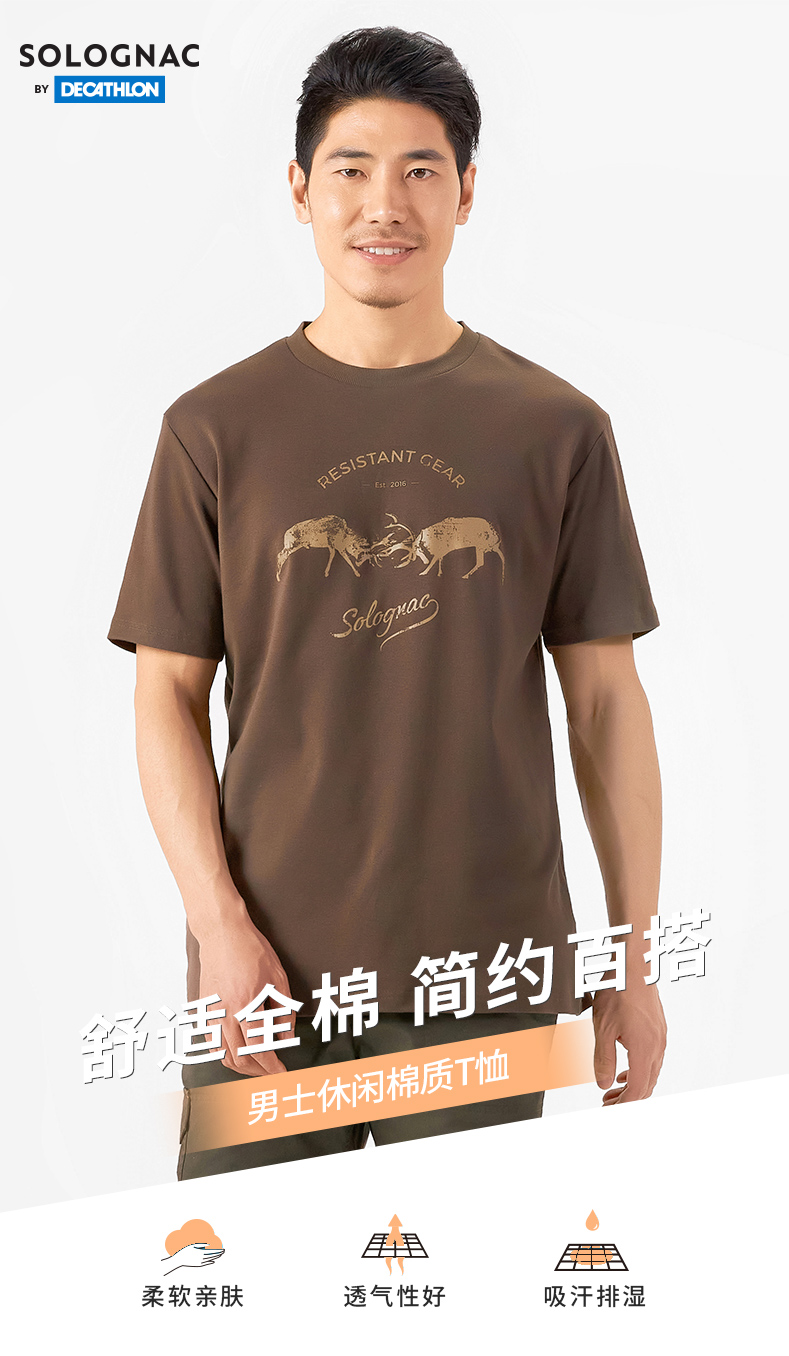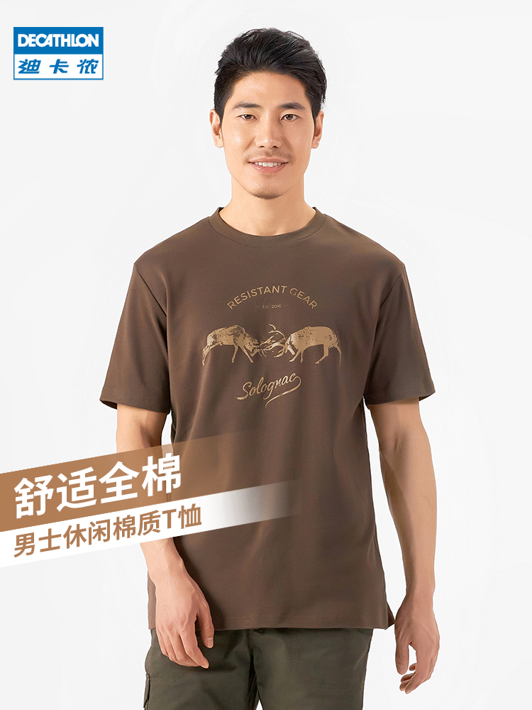迪卡儂旗艦店 短袖t恤男動物印花夏季男士半袖T恤純棉潮休閒OVH