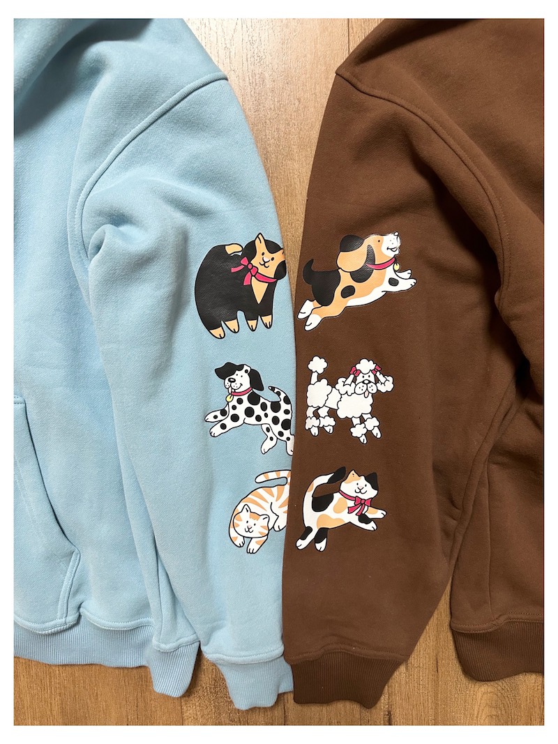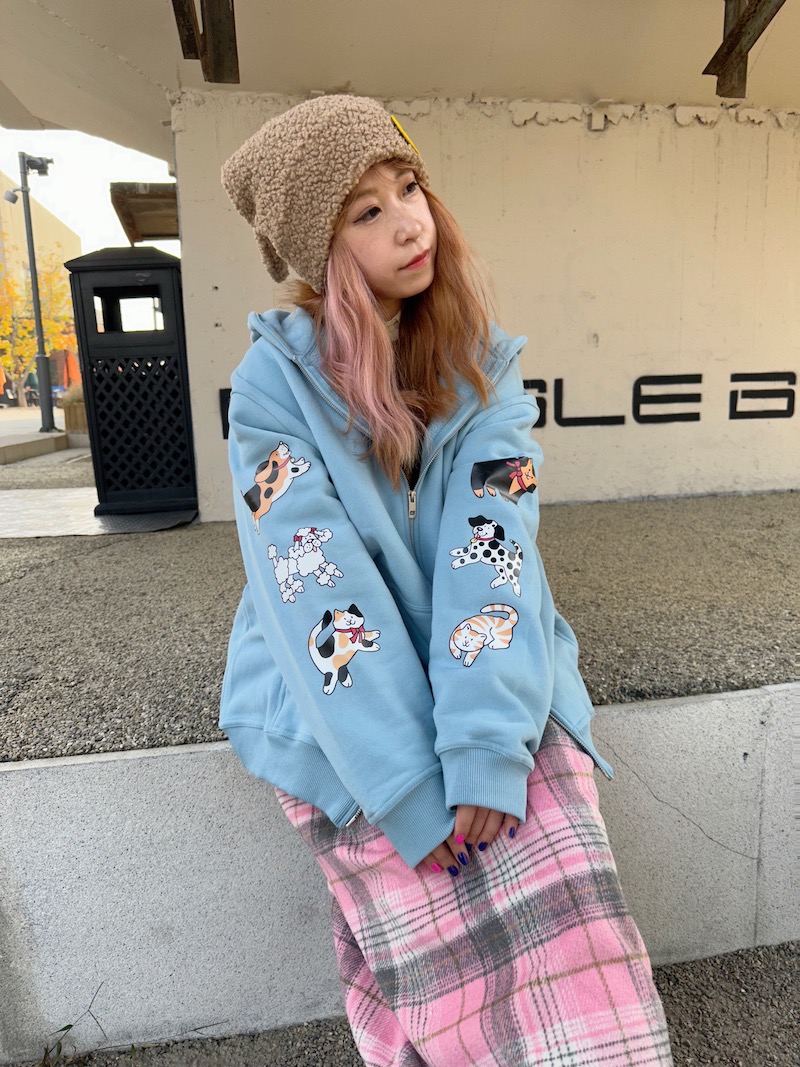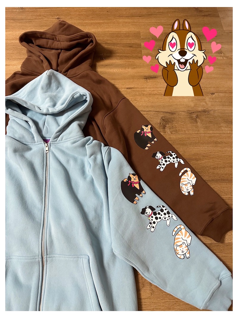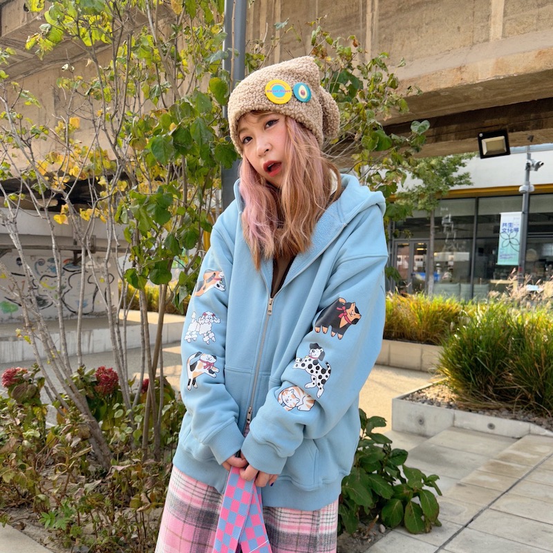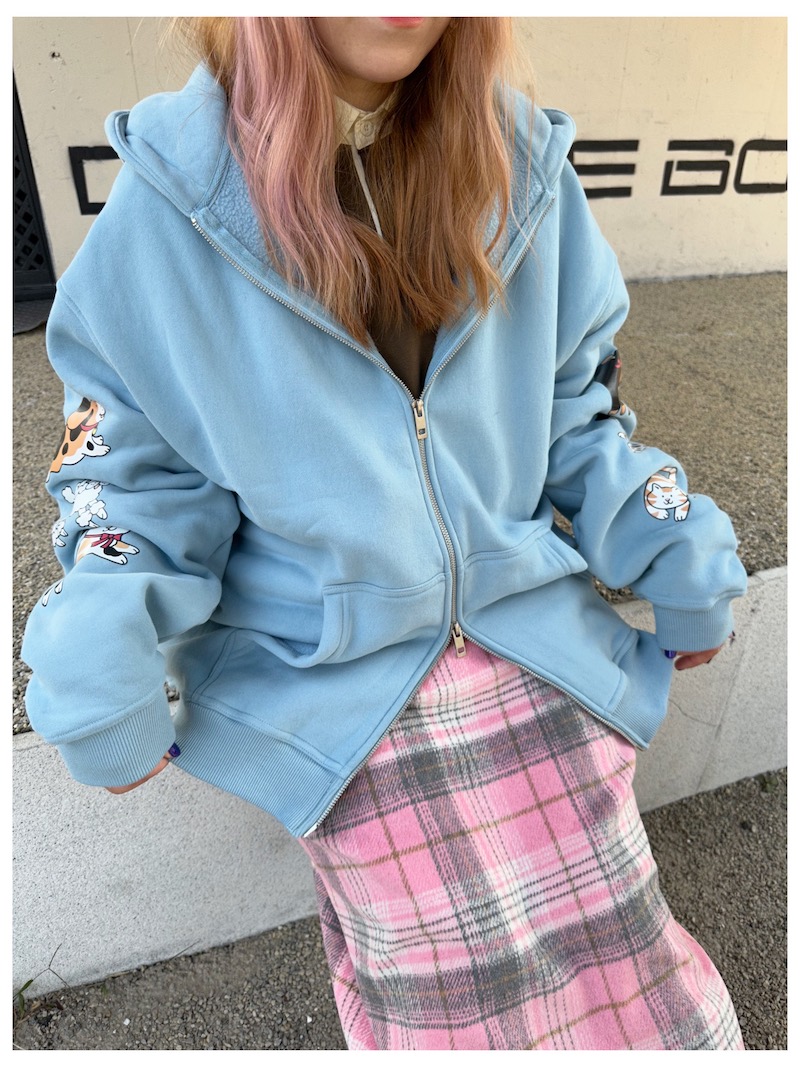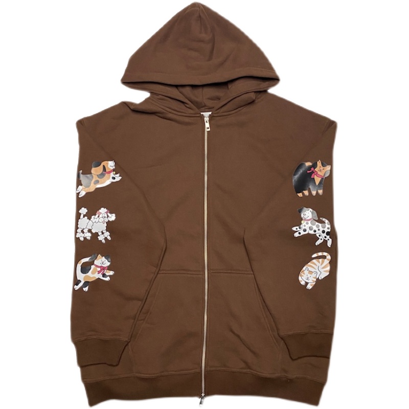 bunnybunnygun原創設計 秋冬美式復古可愛卡通袖子印花拉鍊衛衣