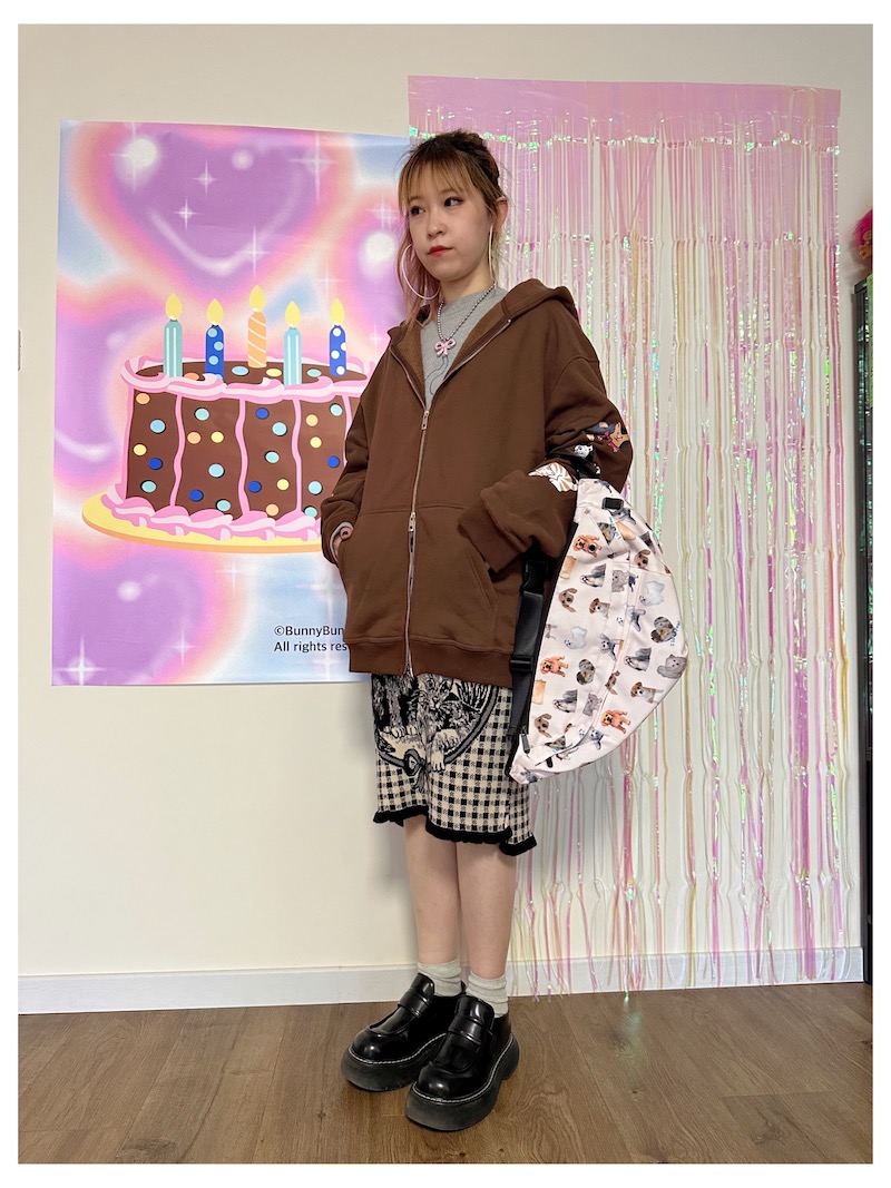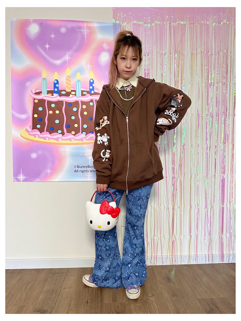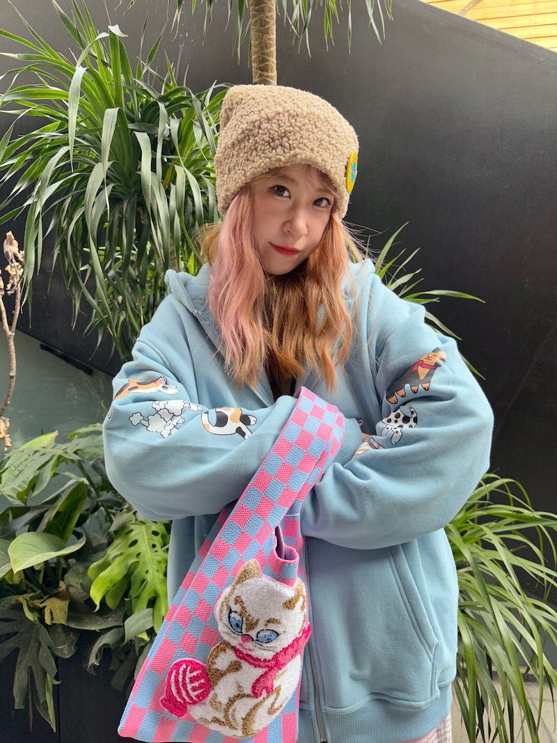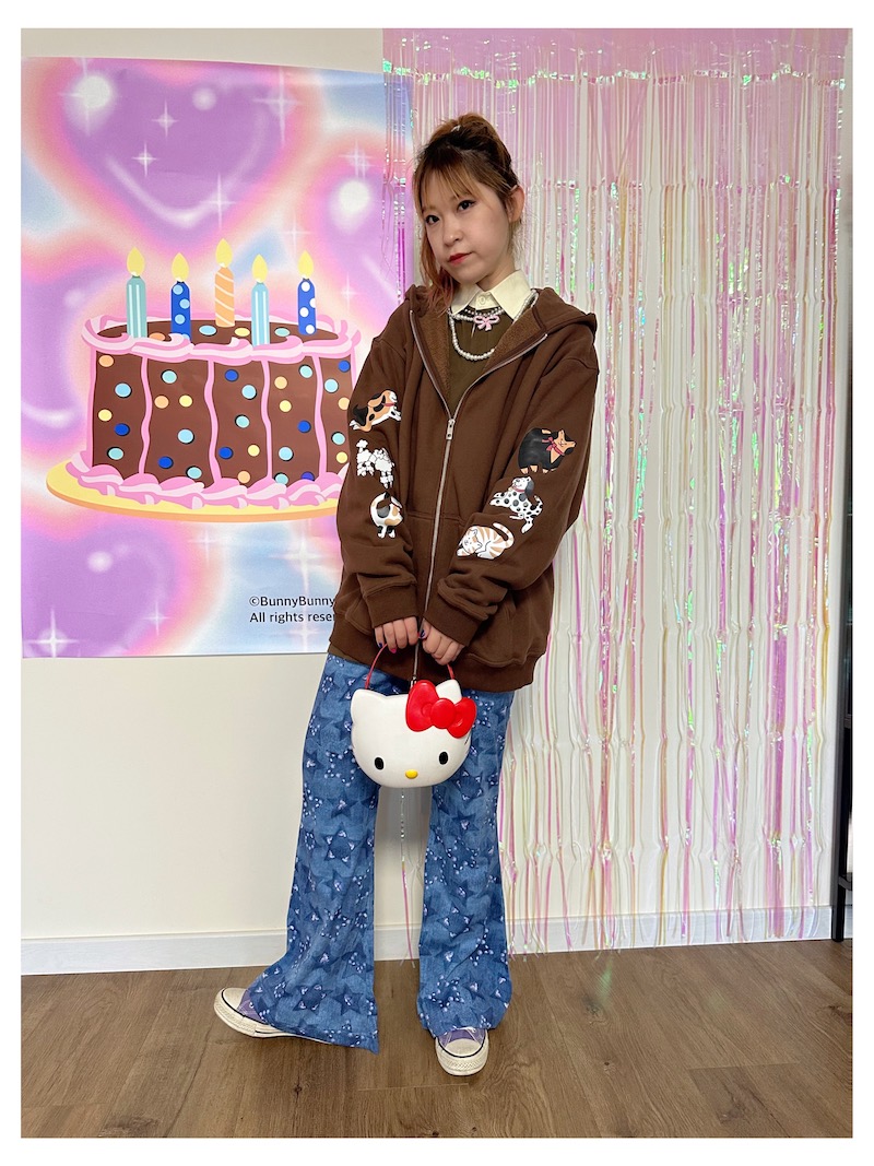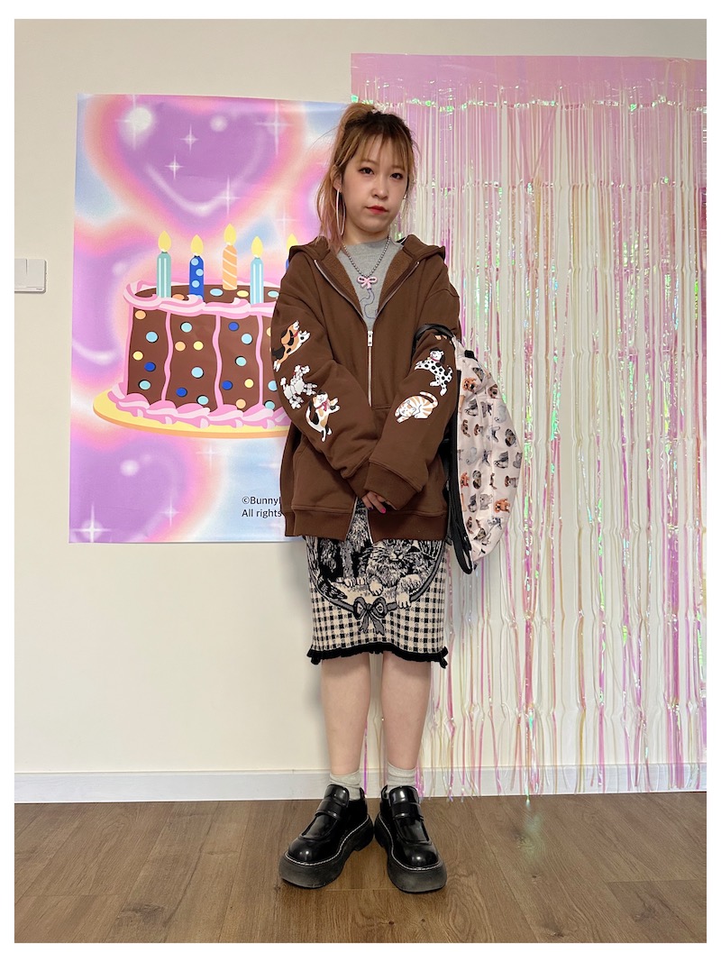 bunnybunnygun原創設計 秋冬美式復古可愛卡通袖子印花拉鍊衛衣